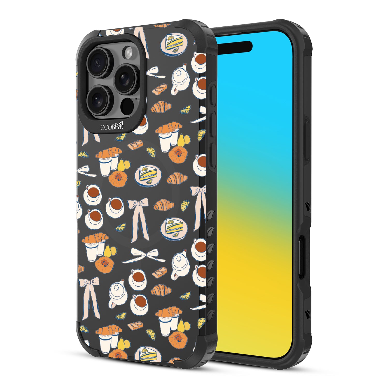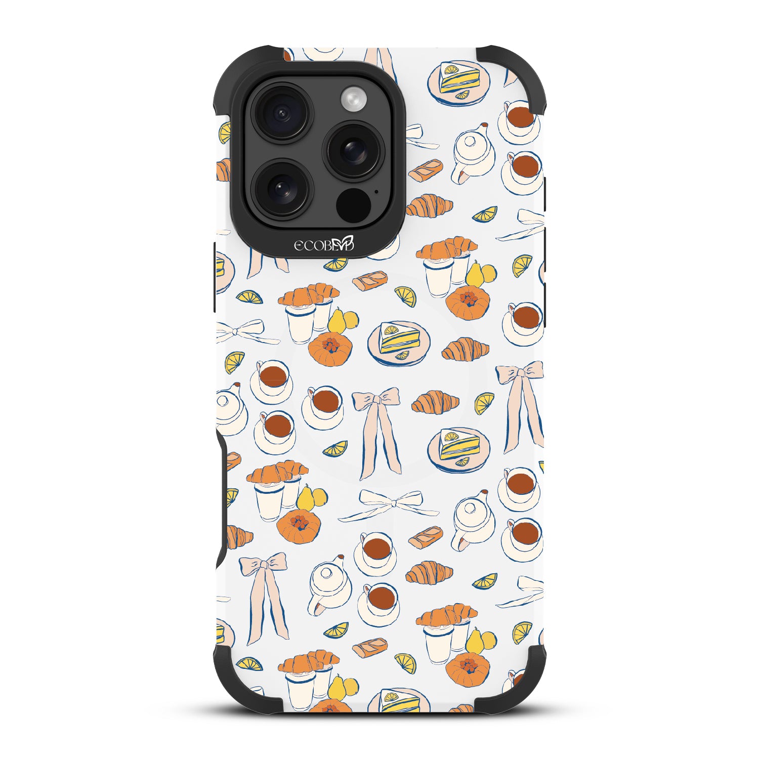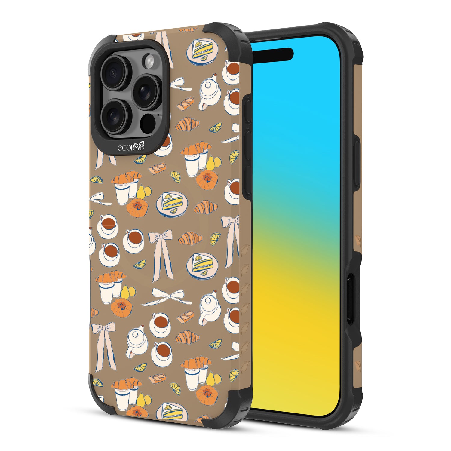 Tea time is the new happy hour. This design on our Reforge rugged iPhone 16 Pro Max case combines whimsical teacups, dainty bows, and sweet pastel pastries in style as delightful as a perfect afternoon break. A tribute to making time for yourself with a touch of elegance.