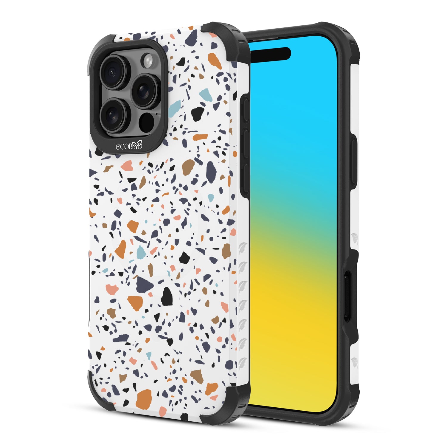 The Terrazzo design on our Reforge rugged iPhone 16 Pro Max phone case is like confetti for your phone, with its bold kaleidoscopic colors recalling a classic mid-century modern look that has swept fashion and architecture worldwide.