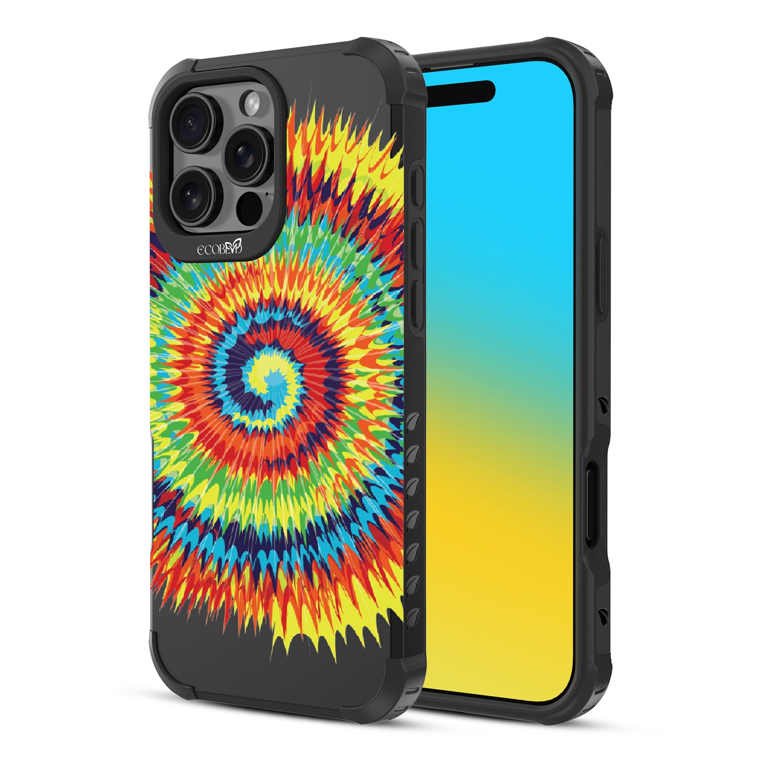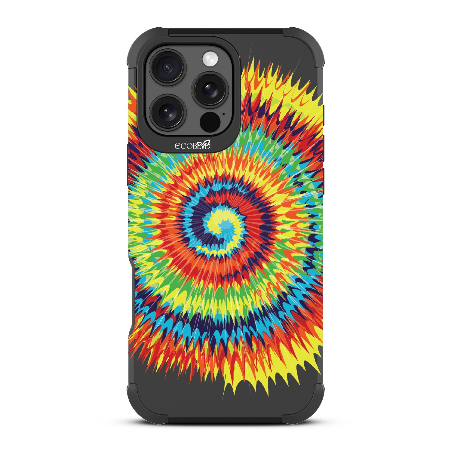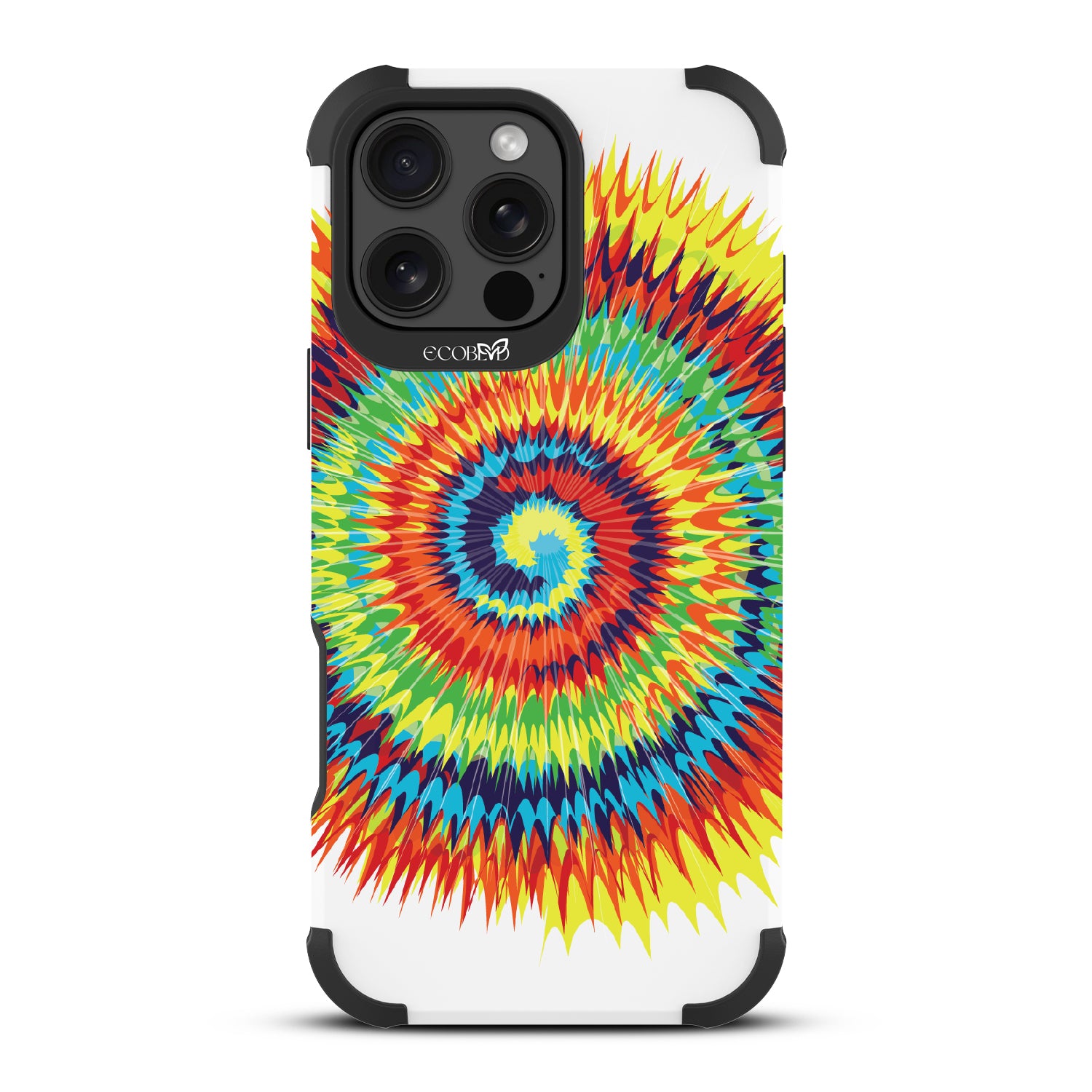 Bringing back the summer days of backyard BBQs, beach days, and fun in the sun, the Tie Dye design on our Reforge rugged iPhone 16 Pro Max phone case features a retro rainbow swirl pattern giving your iPhone 13 an eye-catching twist.