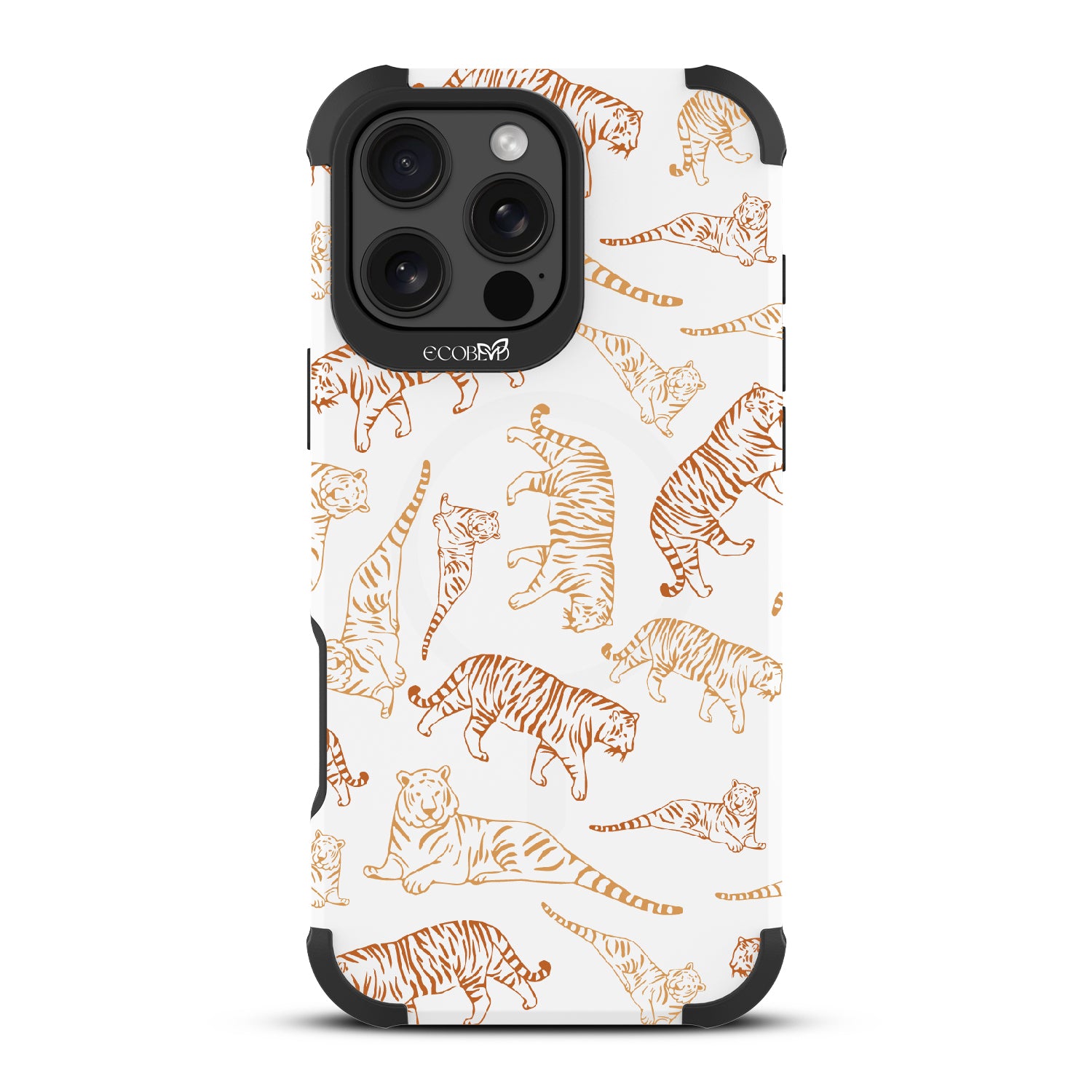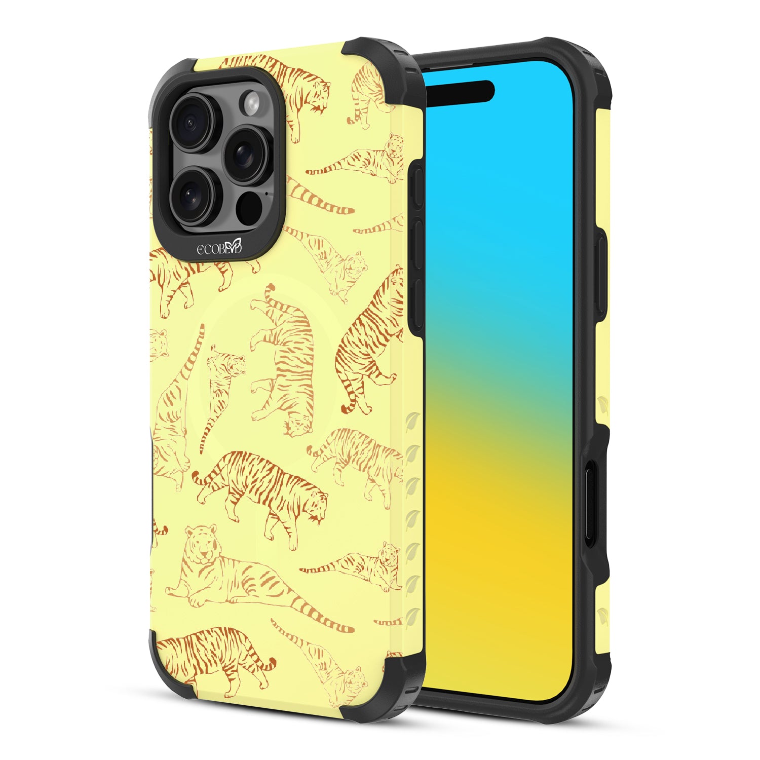 Embrace the untamed allure of the jungle with the Tiger Pride design on our Reforge rugged iPhone 16 Pro Max phone case. Let the fierce presence of tigers transport you to a world of unparalleled elegance and strength. Experience the perfect blend of impeccable style and protection while championing ocean conservation efforts. Unleash your party animal instincts and show off your Tiger Pride! With its eye-catching orange and yellow tiger silhouettes, this case adds a touch of playful ferocity to your device, ensuring it becomes the center of attention and the symbol of your wild, fun-loving personality.