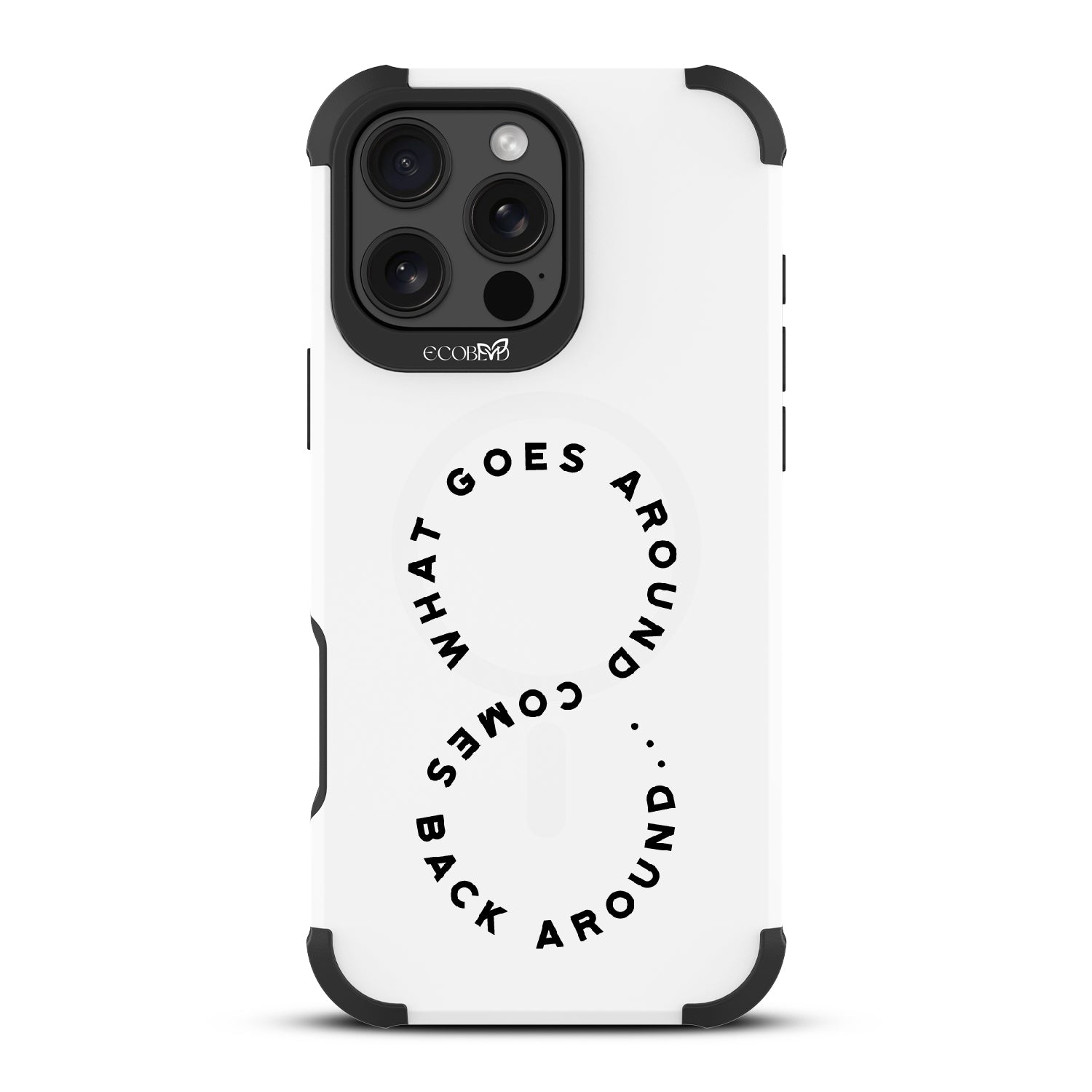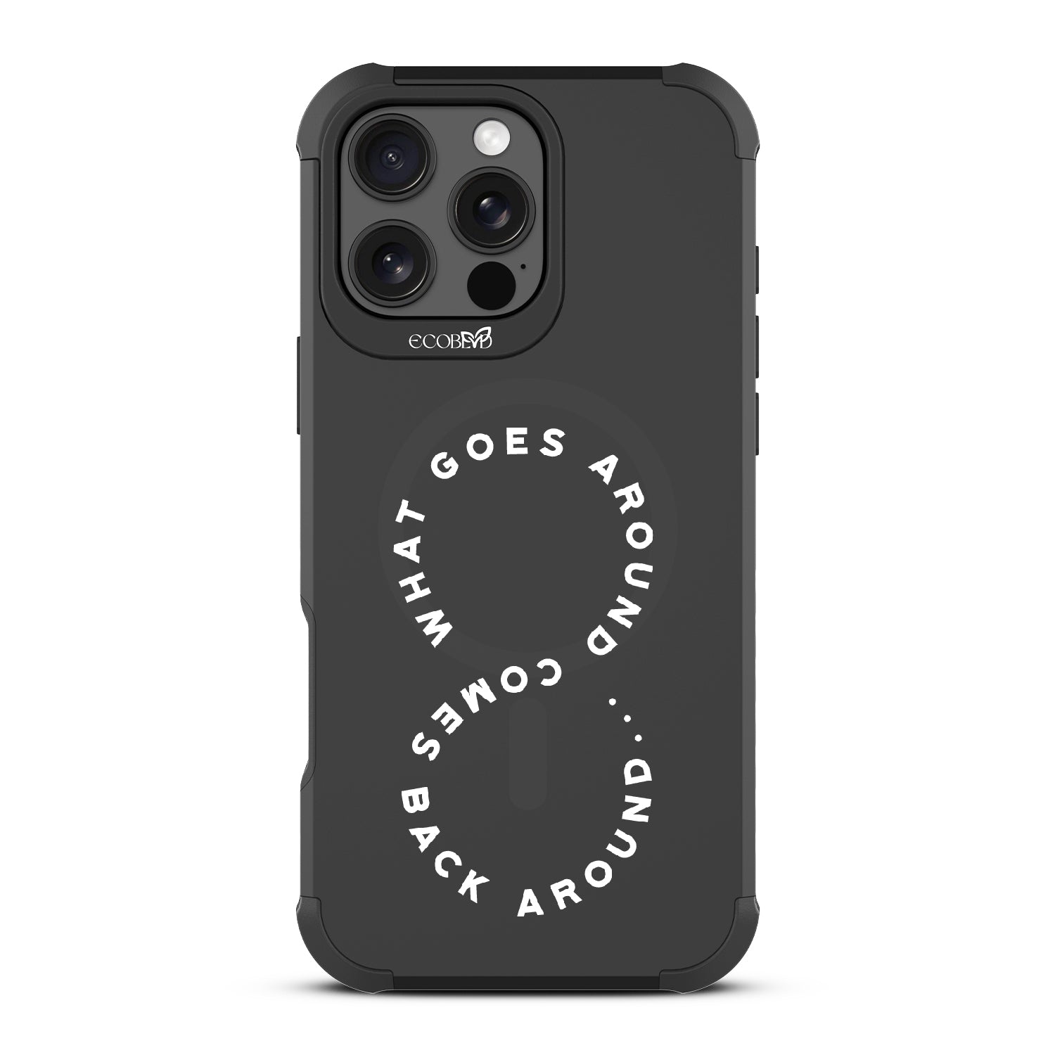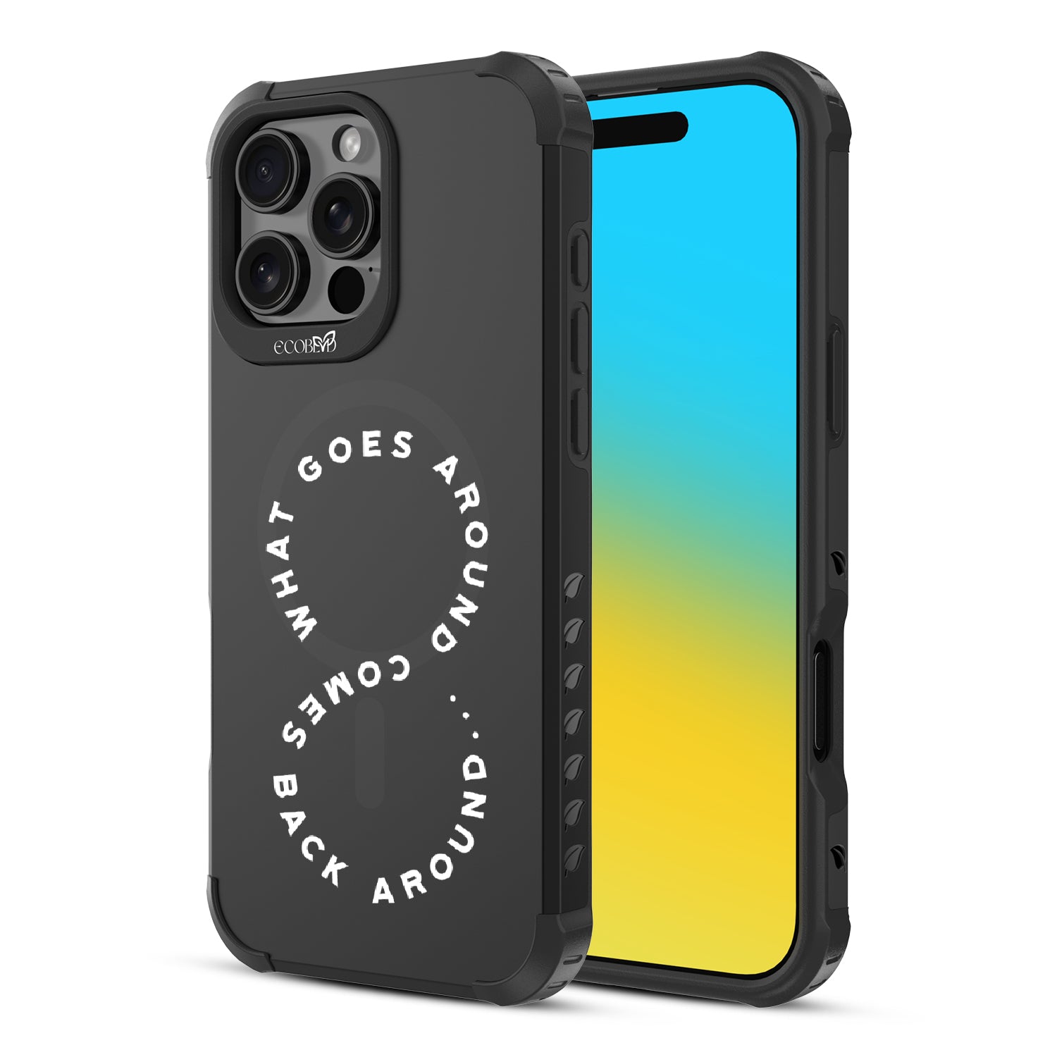 Everything inevitably comes full circle with the What Goes Around Comes Around design on our Reforge rugged iPhone 16 Pro Max phone case as its infinity symbol loops back to our karma. A reminder that every action has its place and that all we do creates ripples that echo our energy out into the world and back to us.