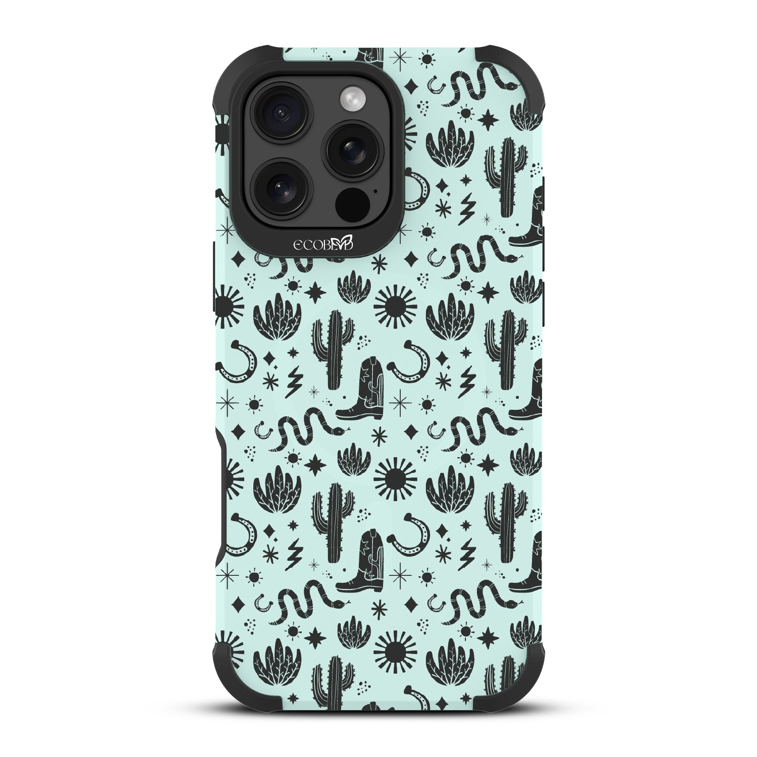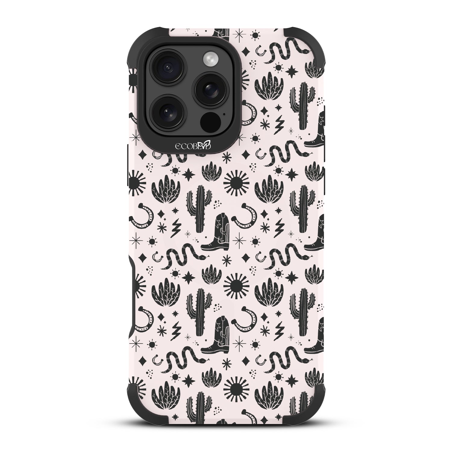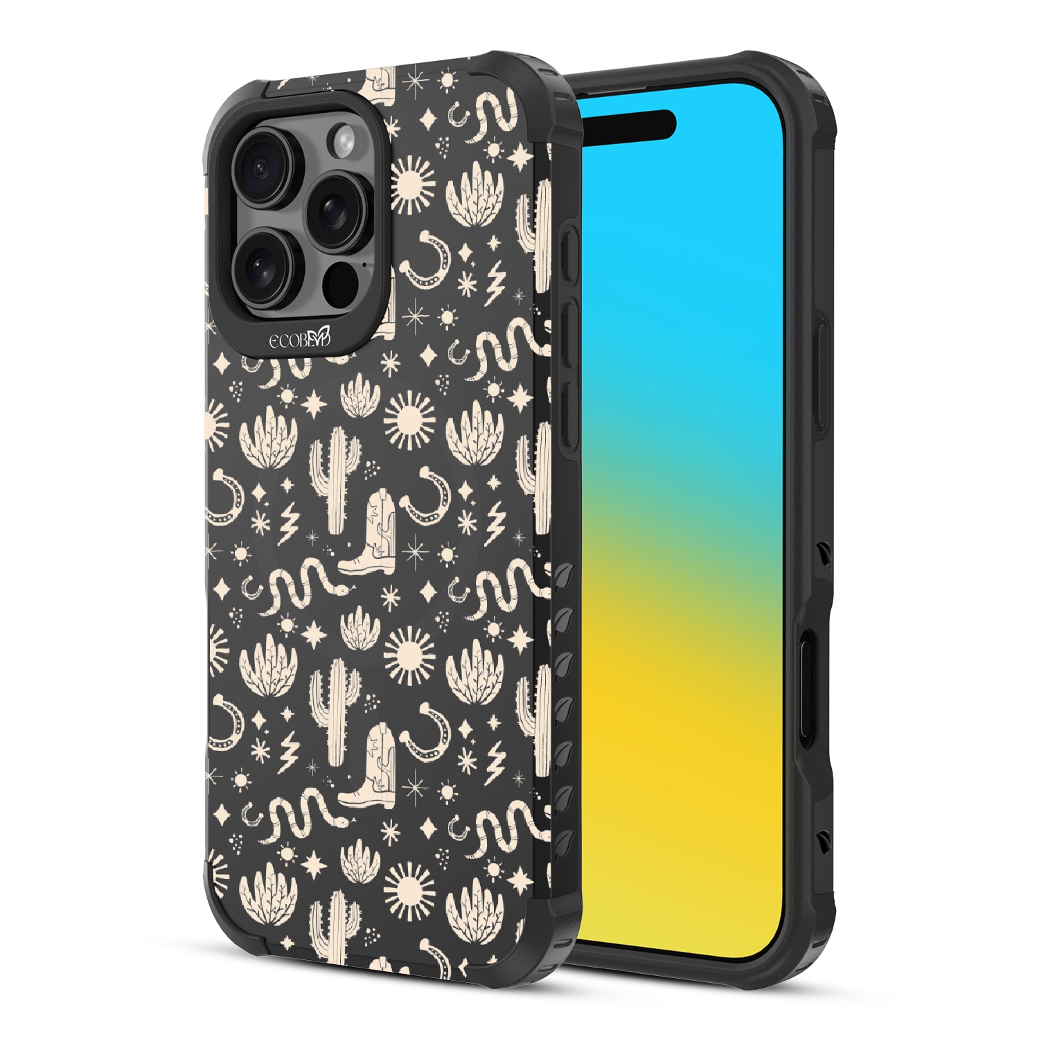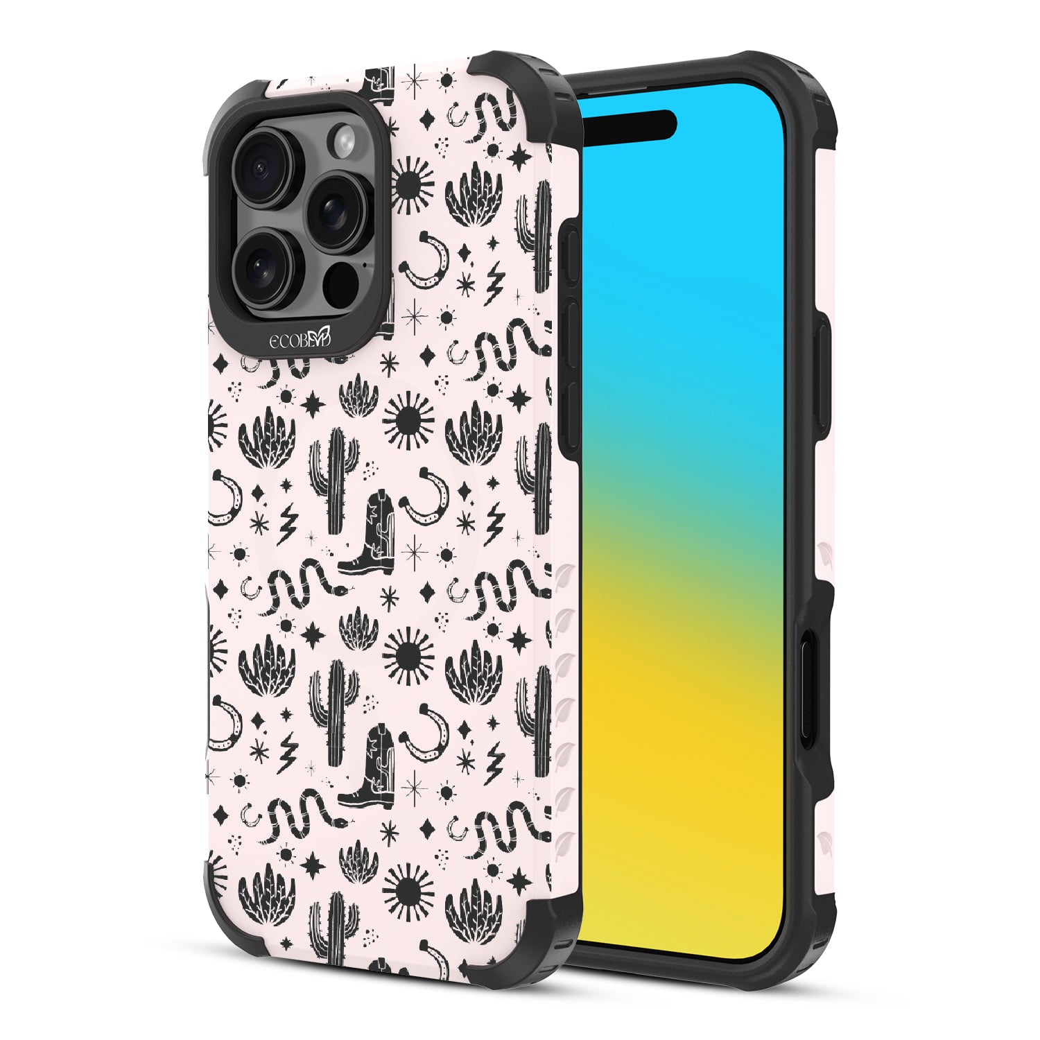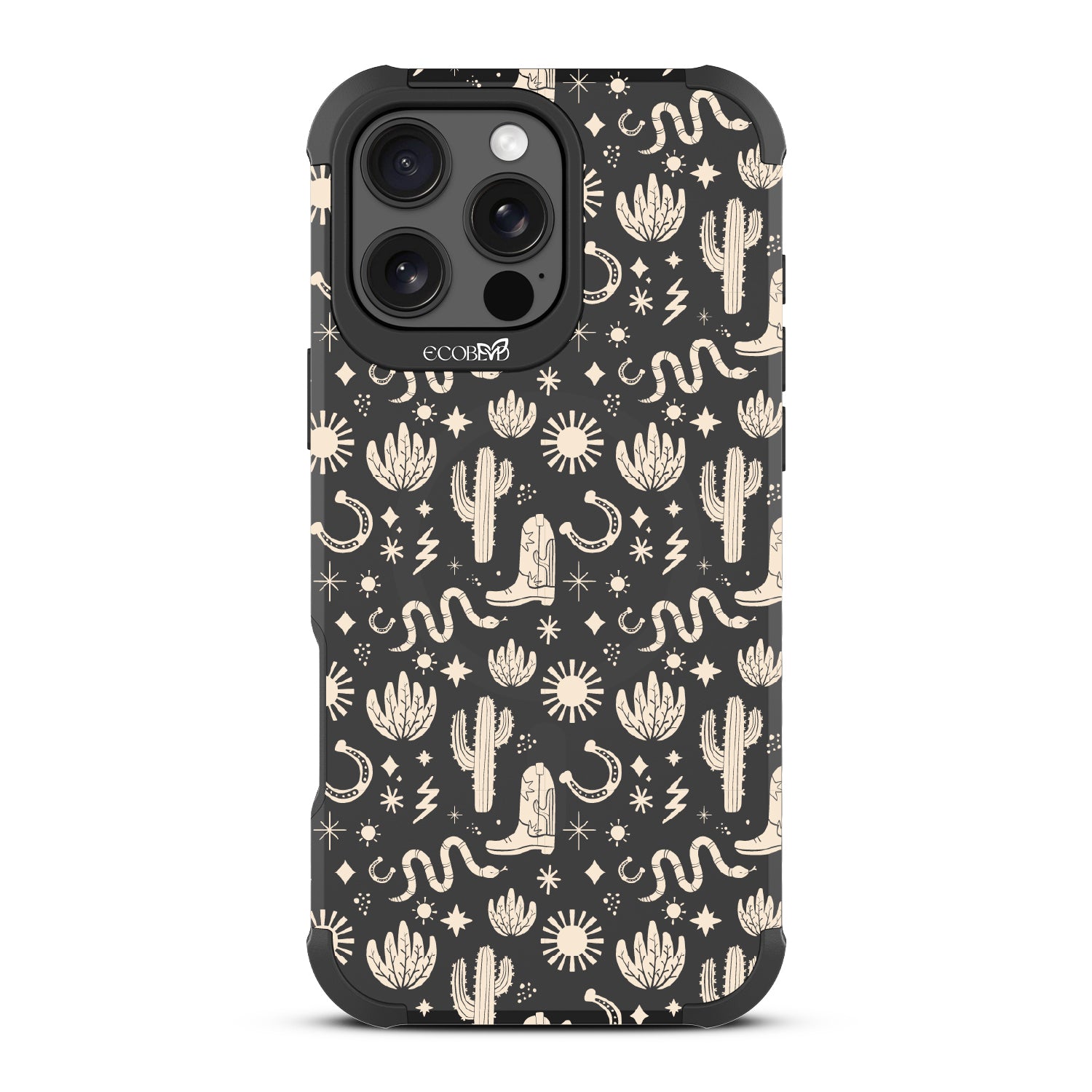 Saddle up your phone with the Mojave Collection's exclusive Wild West design on our Reforge rugged iPhone 16 Pro Max phone case, where cacti, cowboy boots, horseshoes, suns, and lightning bolts join forces for a rodeo of rugged charm. Wrangle your protection with Western flair and take on the untamed spirit on every call and adventure. Yee-haw to desert dreams and the Wild West case, where rugged allure meets playful charm for your phone's wild frontiers!