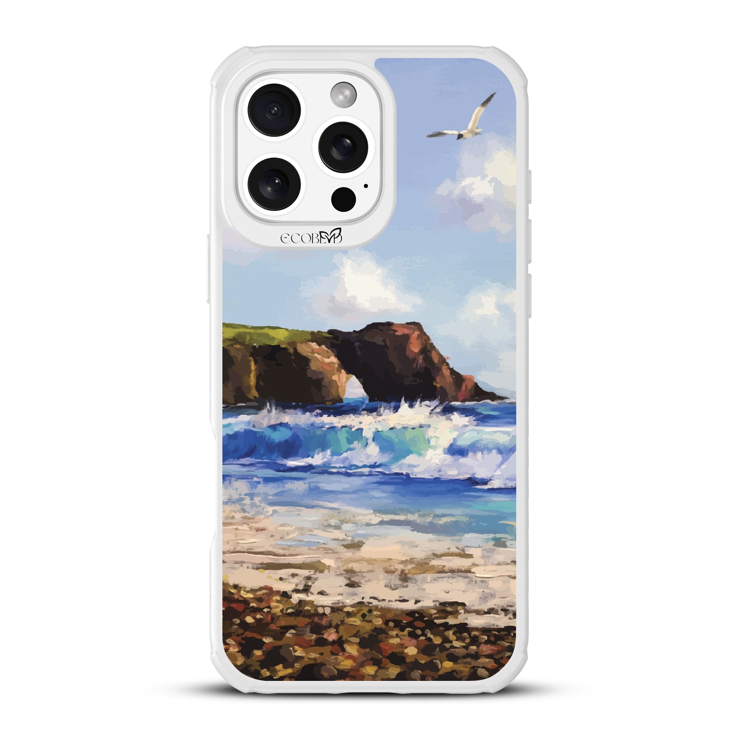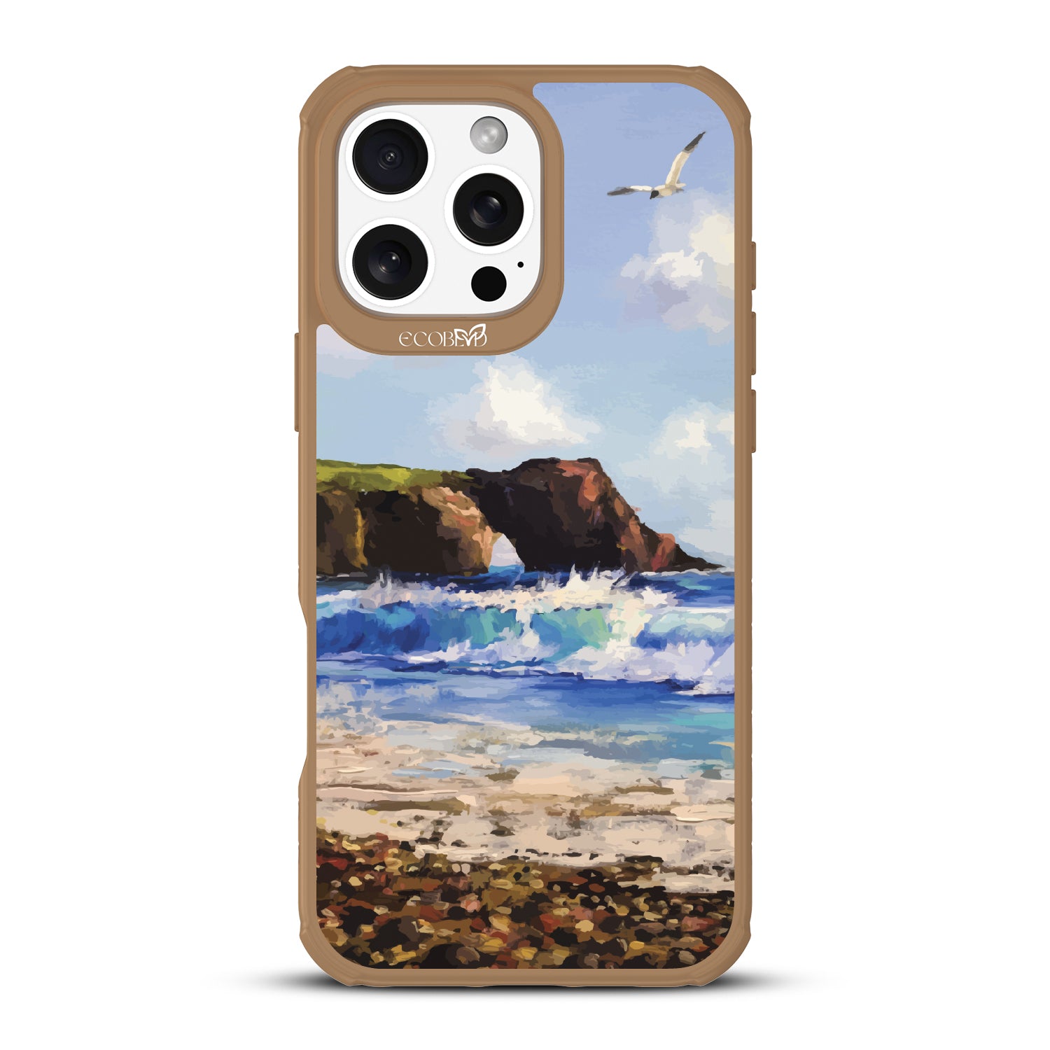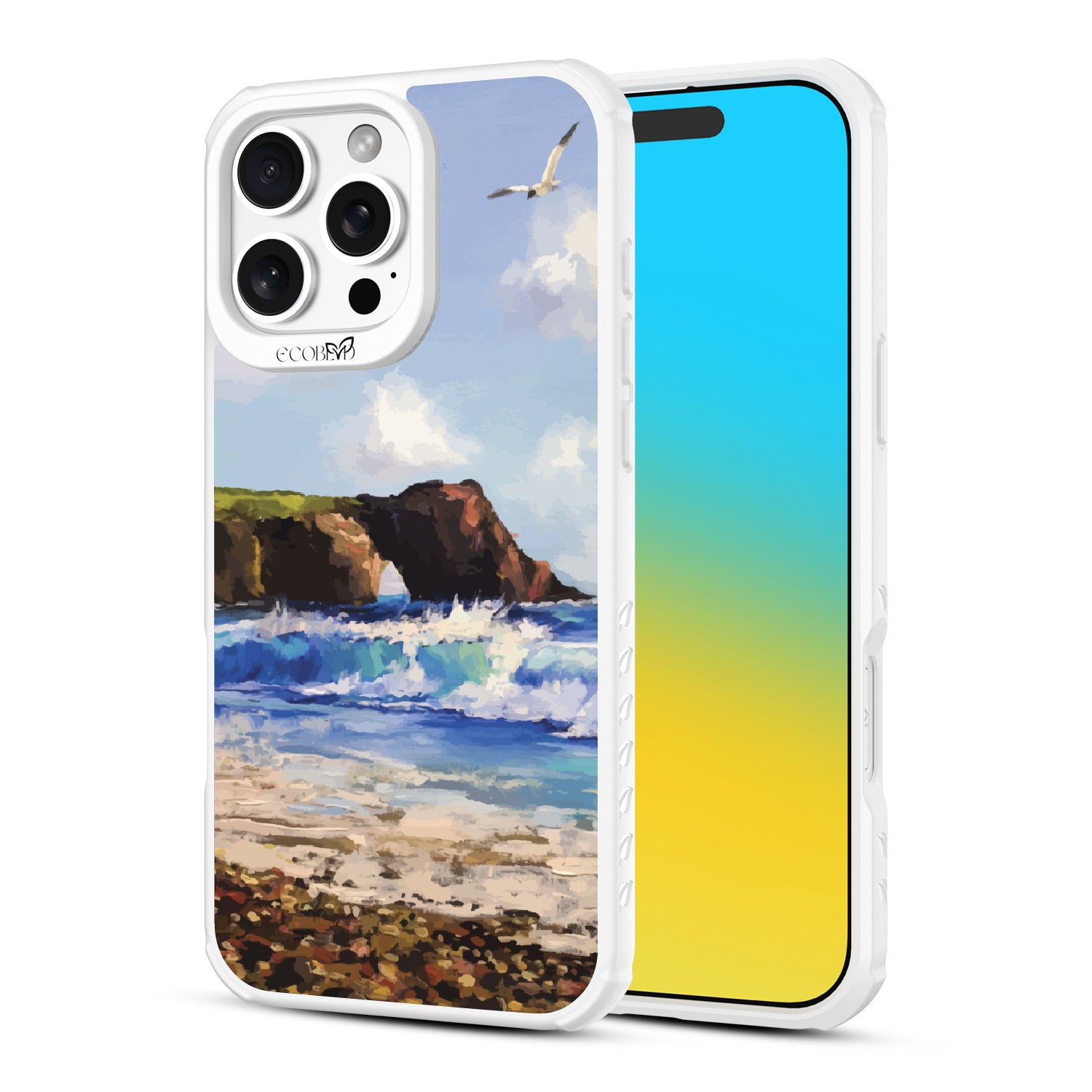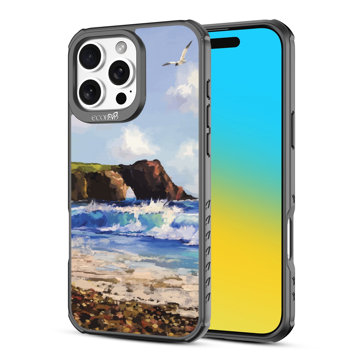 The calm before…. The Cliffhanger design on our Revive clear iPhone 16 Pro Max case holds a moment of painted suspense—brushed cliffs, churning tides, and a palette that builds to the brink. A story captured at its turning point.