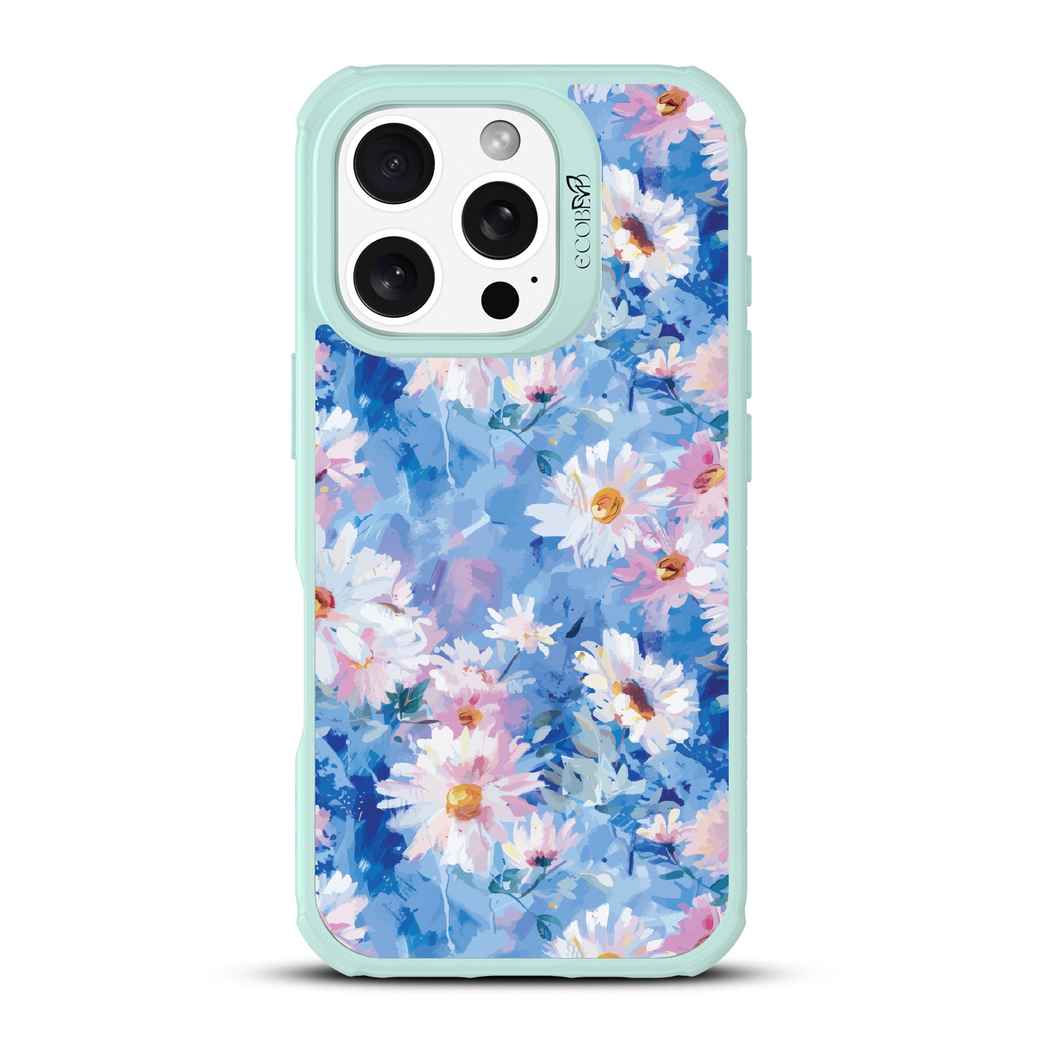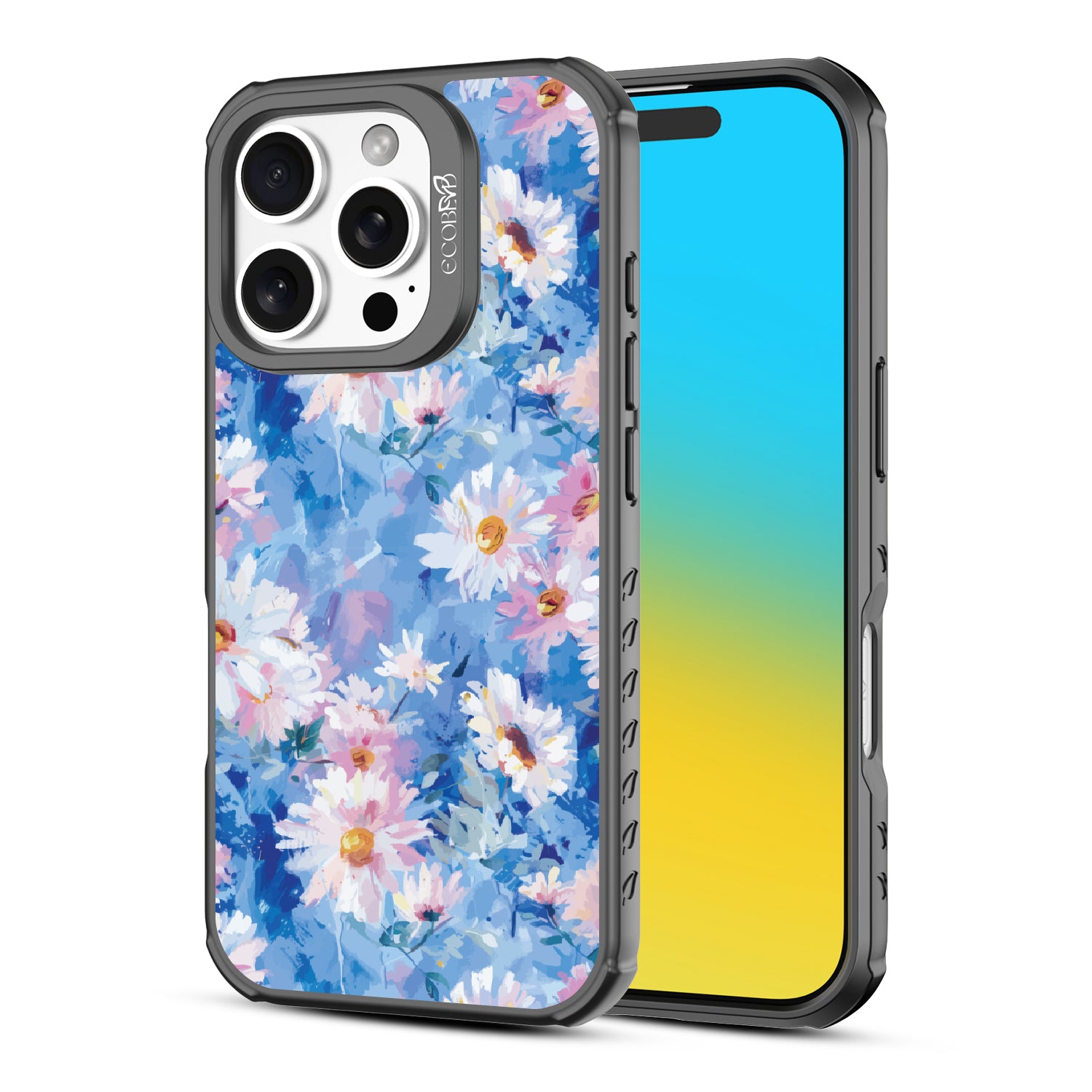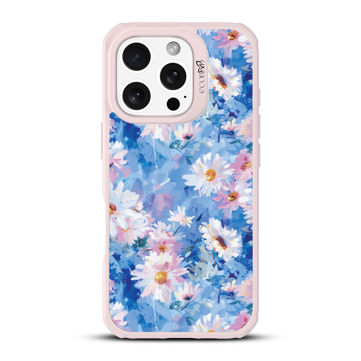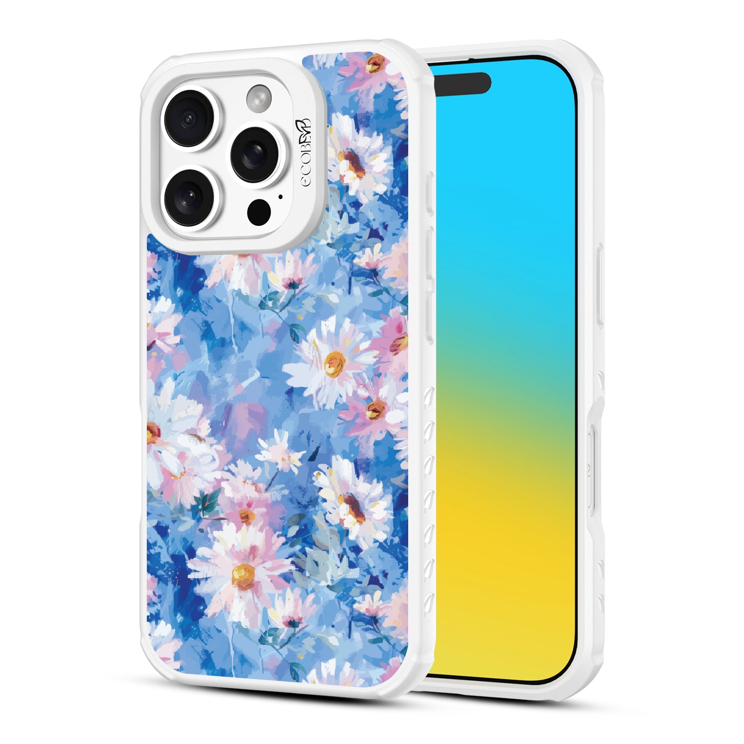It’s a breeze really. The Blown Away design on our Revive clear iPhone 16 Pro case sends soft daisy petals swirling across layered blue strokes, like a gust caught mid-canvas. Each pastel bloom feels weightless but intentional—an airy moment you can hold onto.