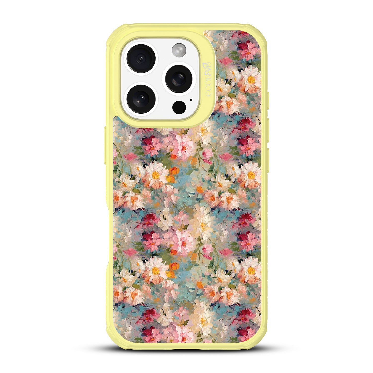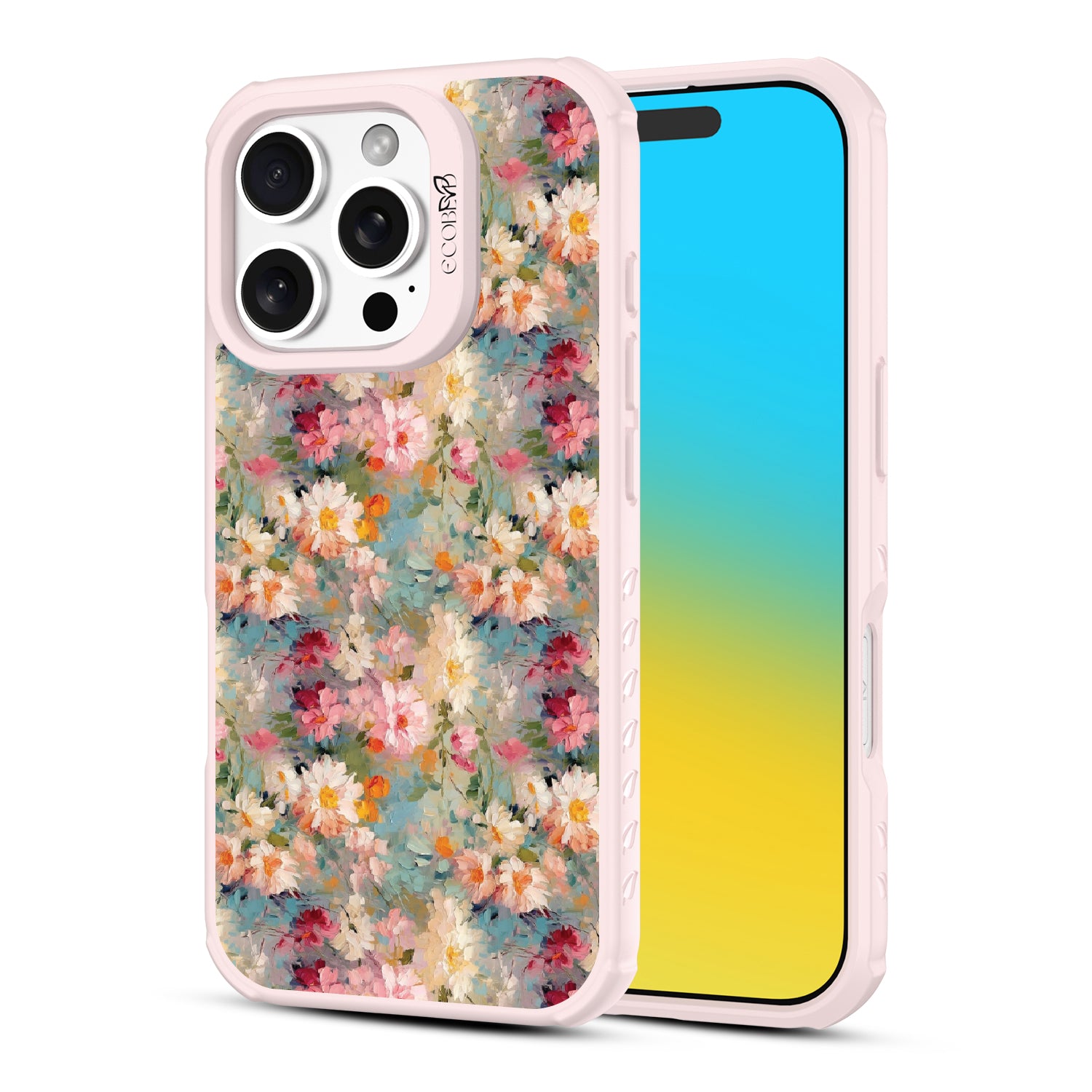Always in season. The Perennial design on our Revive clear iPhone 16 Pro case scatters expressive blossoms across a haze of sage and sky, blending each stroke into a soft visual rhythm. Each layered stroke feels timeless—proof that true style always circles back to the classics.