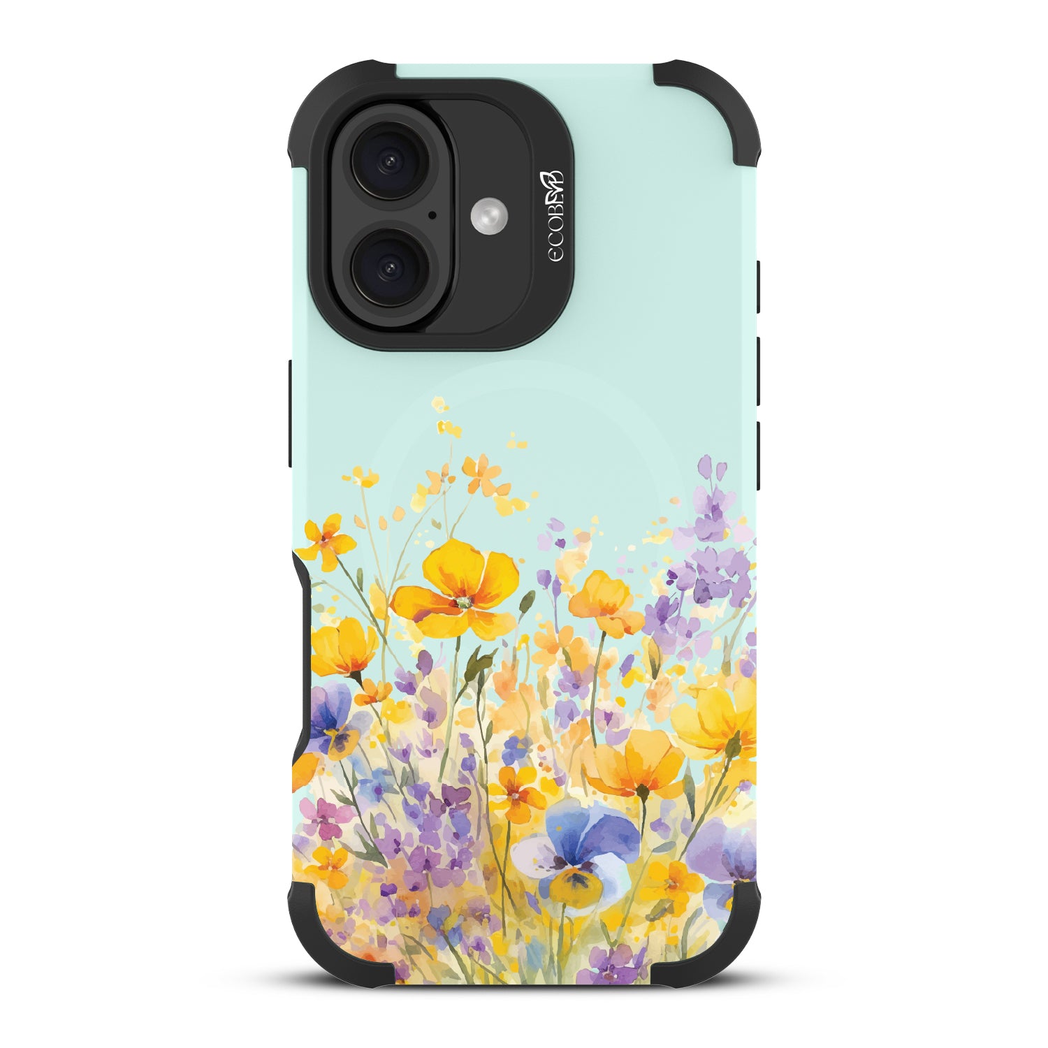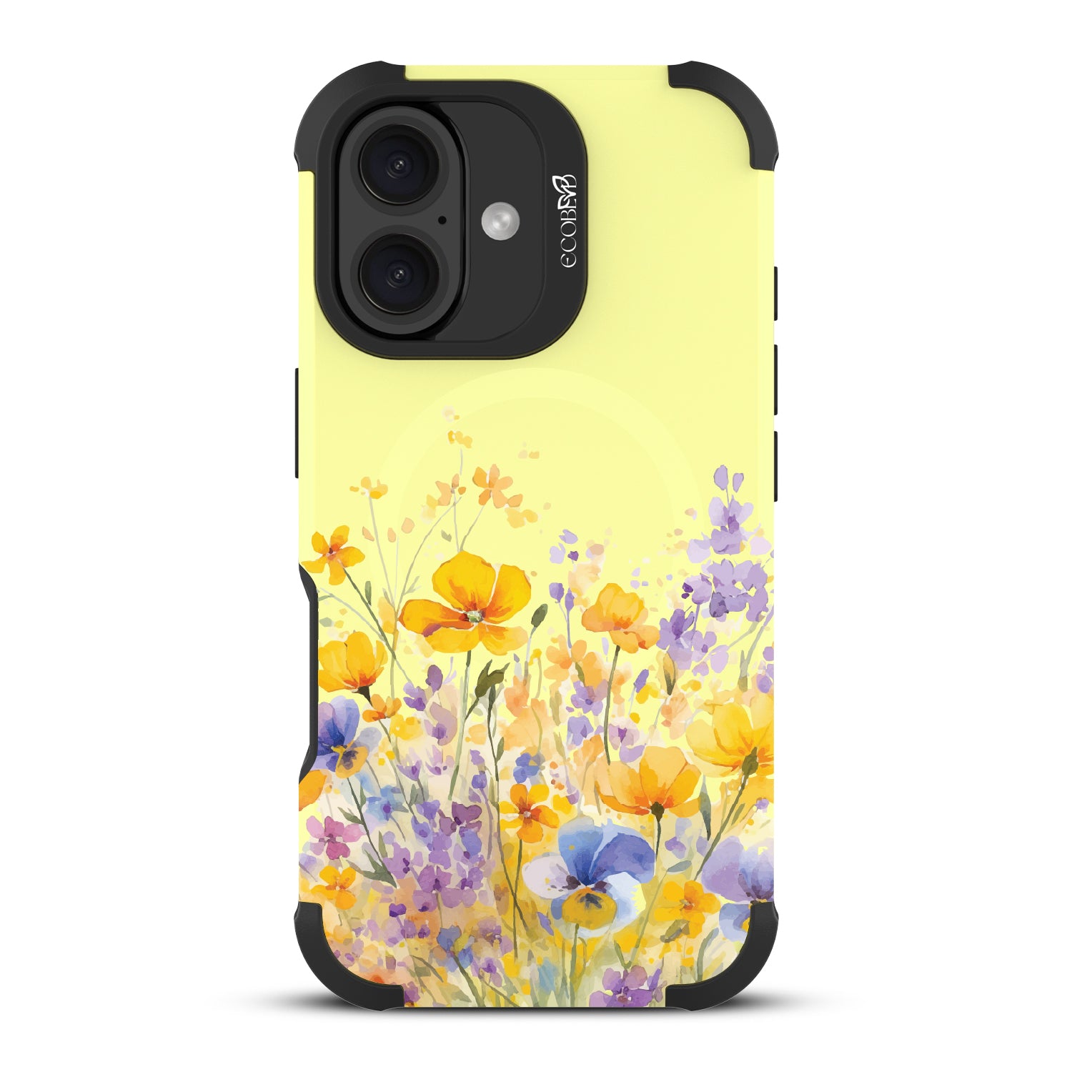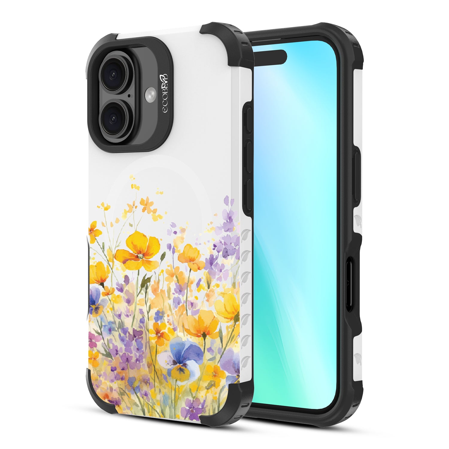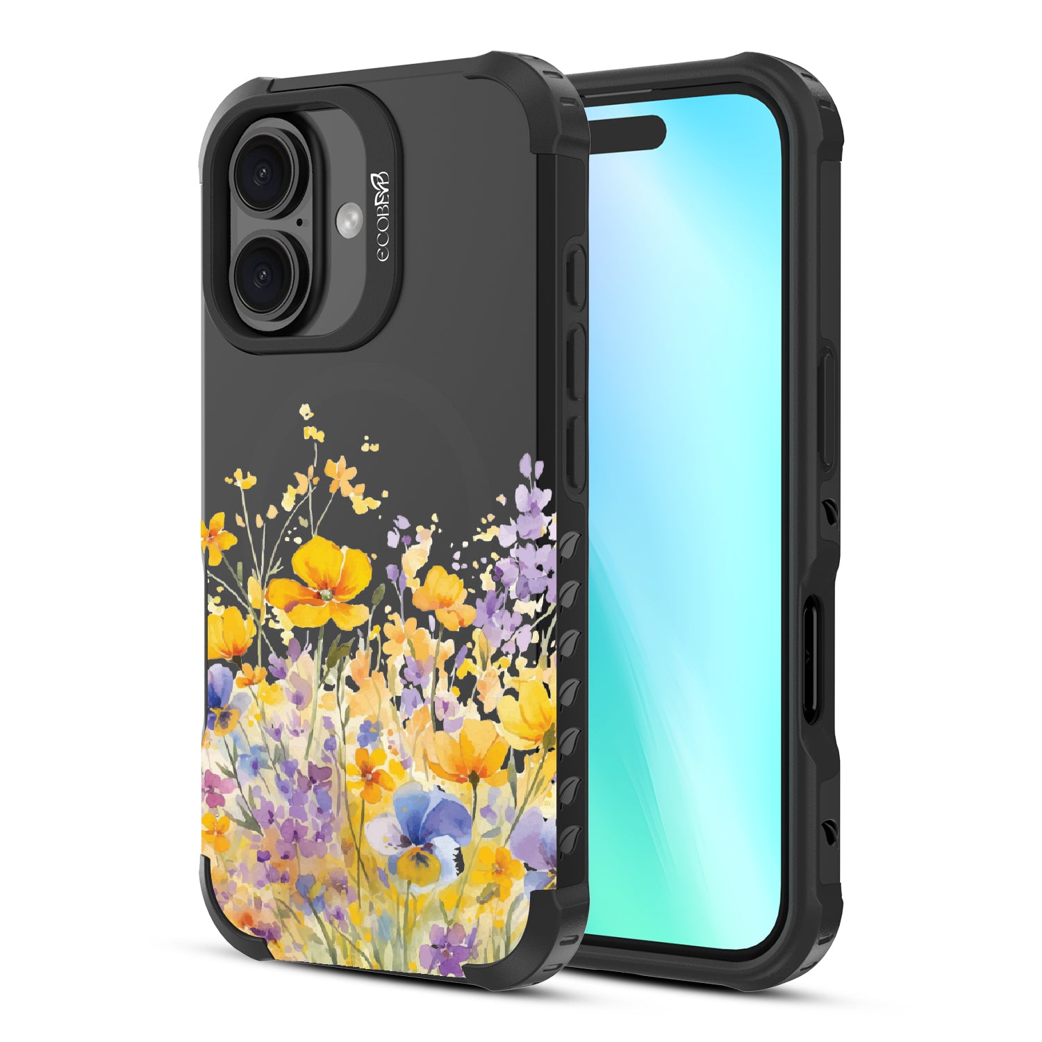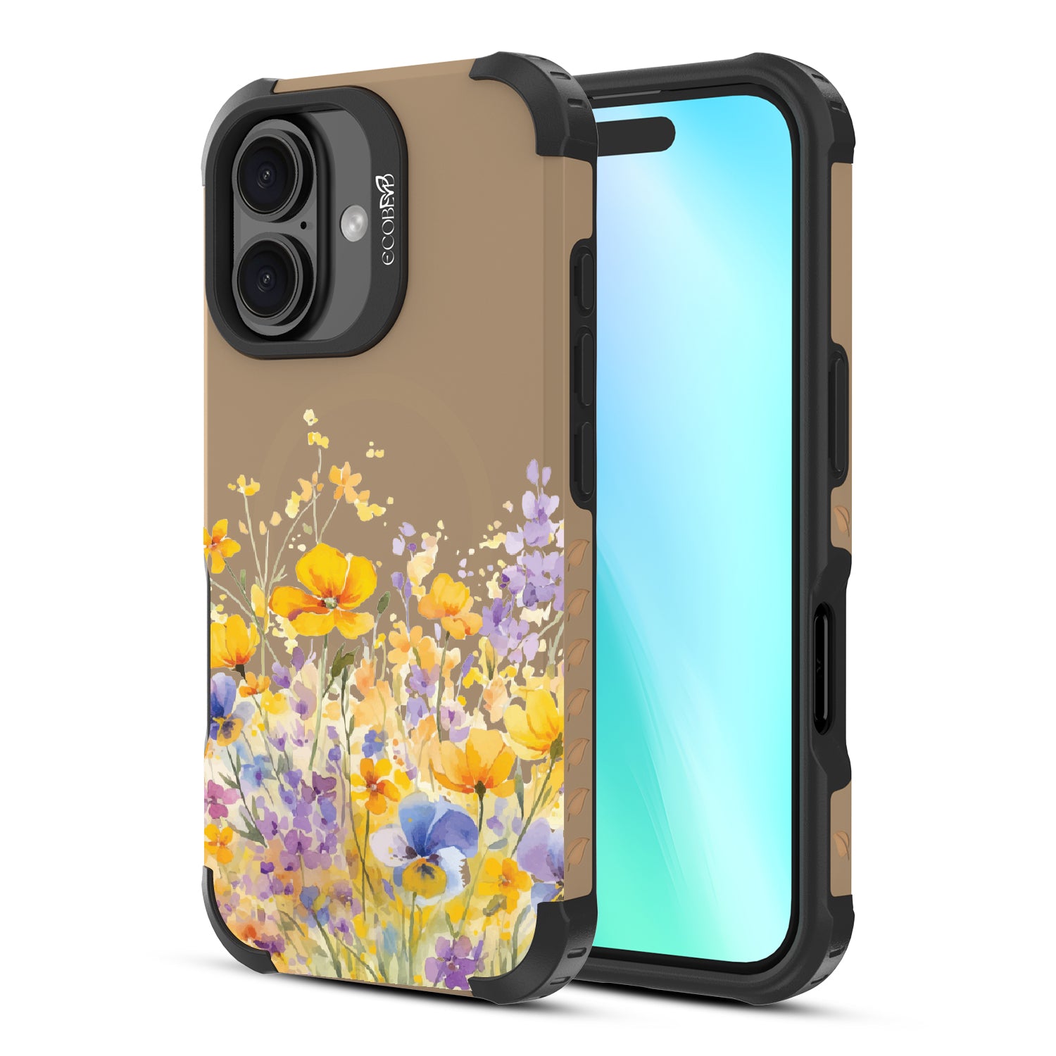 A moment in the light never looked so wild. The Meadowlight design on our Reforge rugged iPhone 16 case lets soft florals run free in a watercolor wash of gold and lavender. A design that glows like a field at its most unfiltered.
