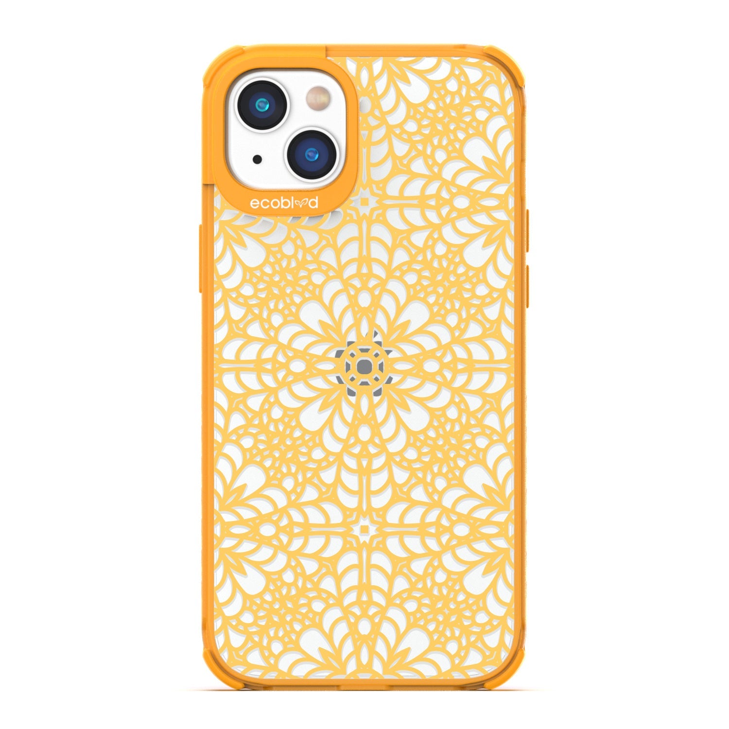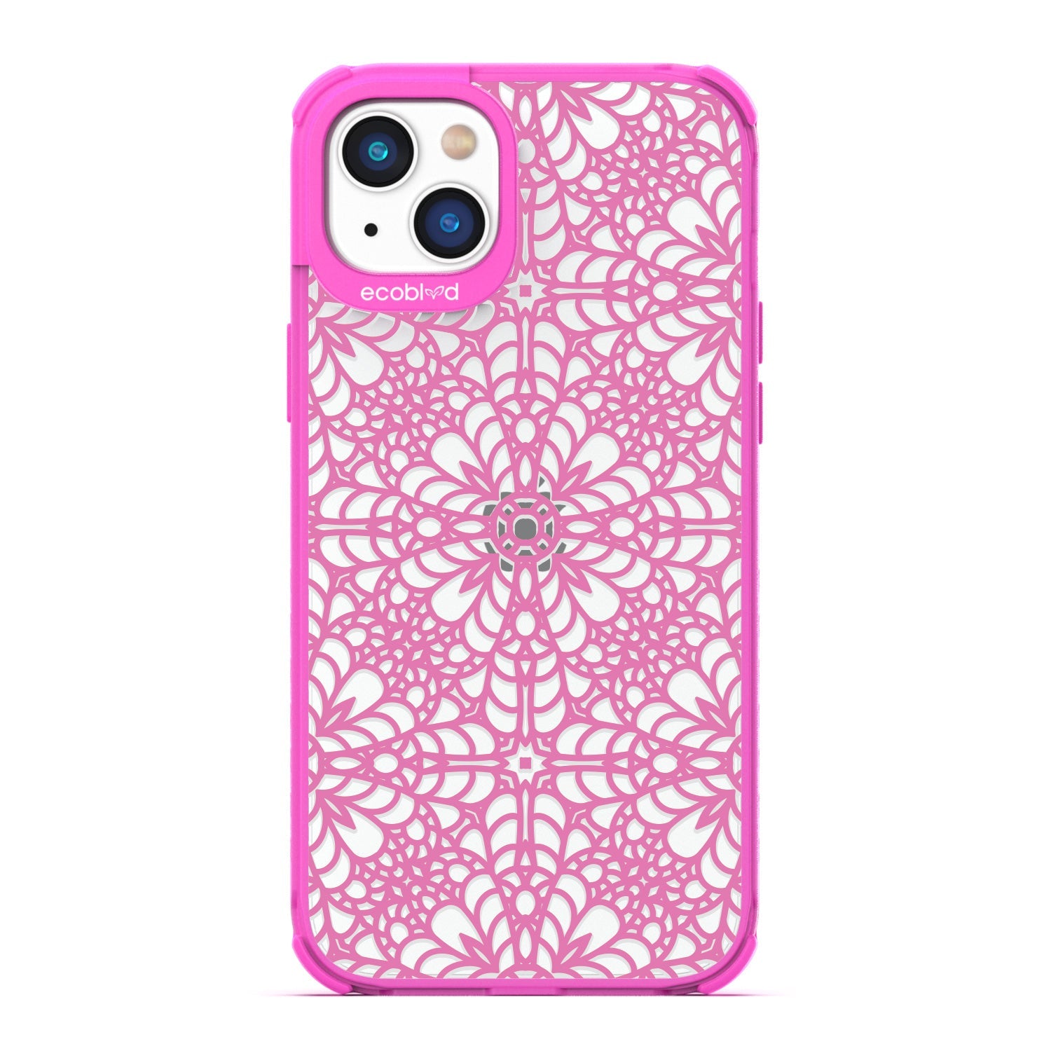 Immerse yourself in the elegance of the A Lil' Dainty clear iPhone 16e, iPhone 14, and iPhone 13 case. Designed to honor the splendor of coastal waters, this phone case exudes sophistication with its delicate lace and tapestry-like patterns, available in five enchanting colors: Midnight Black, Cascade Blue, Foliage Green, Illuminating Yellow, and Wildflower Pink.
