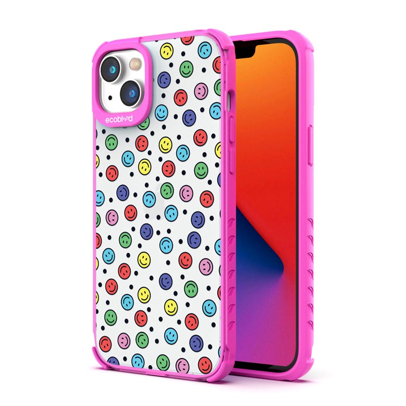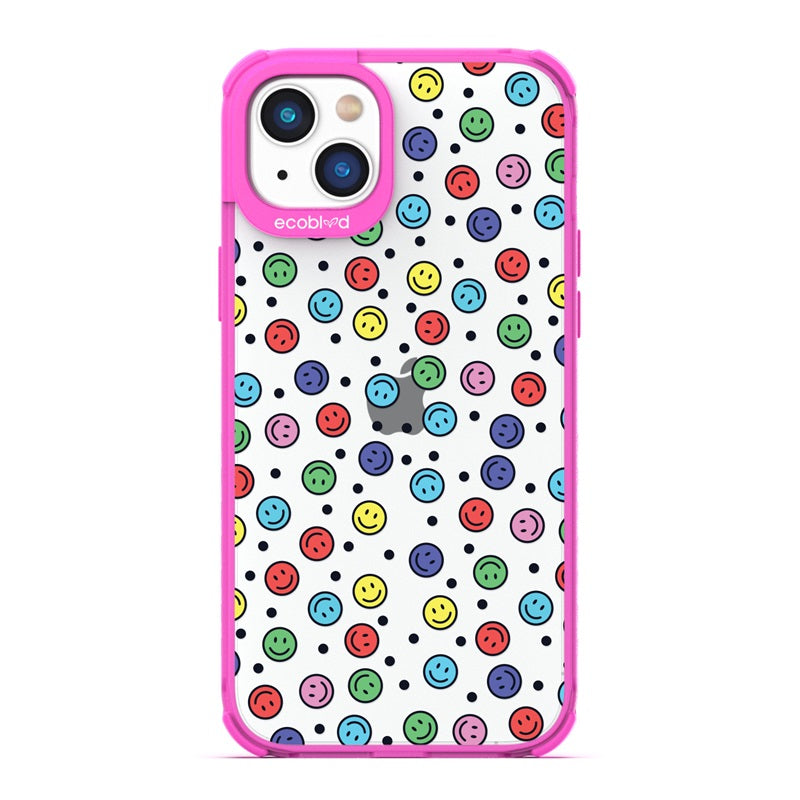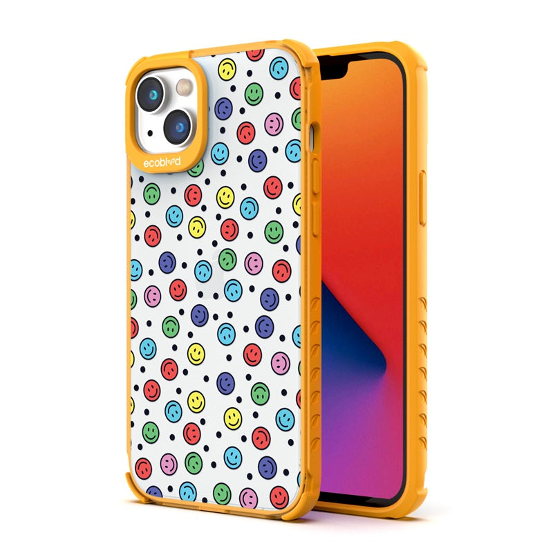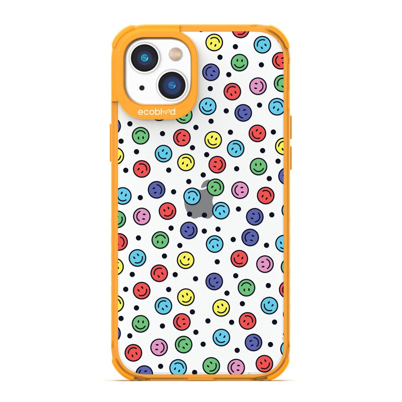 Let the All Smiles design on our Laguna clear iPhone 16e, iPhone 14, and iPhone 13 case set your mood for the day as its multi-colored smiley faces surround your phone in happiness across five colors: Midnight Black, Cascade Blue, Foliage Green, Illuminating Yellow, and Wildflower Pink.