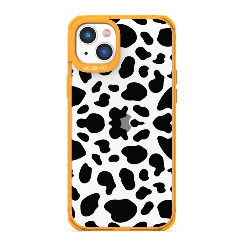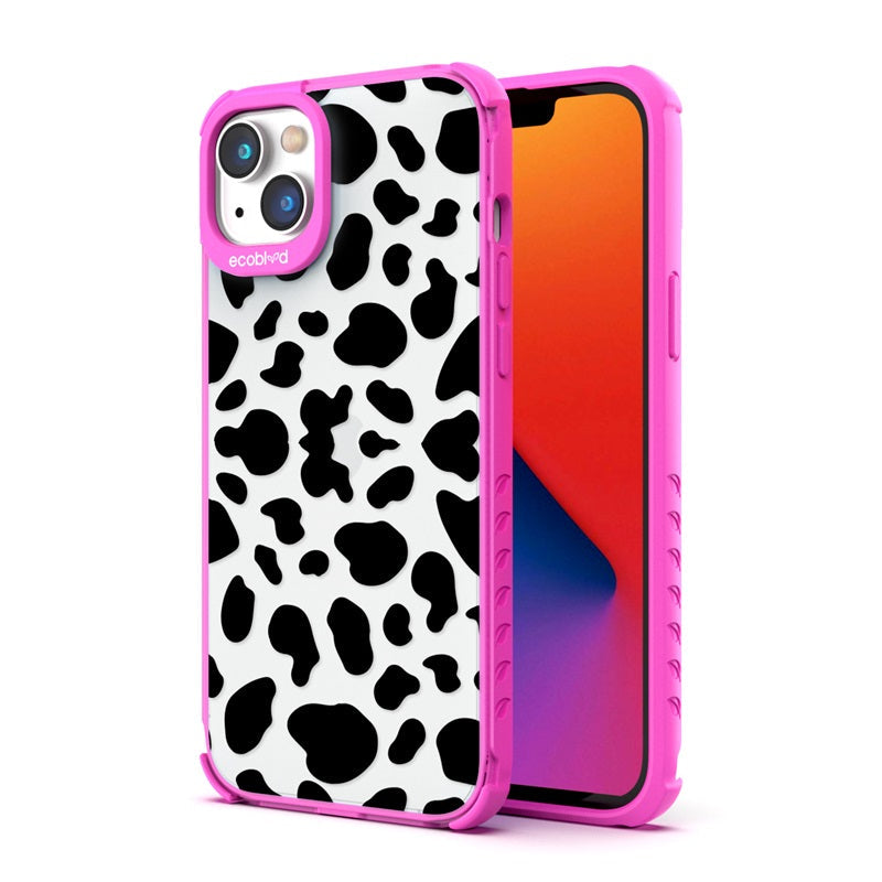 Make your iPhone 14 easy to spot with this "moooognificient" Cow Print design on our Laguna clear iPhone 16e, iPhone 14, and iPhone 13 case. Available in five vibrant colors: Midnight Black, Cascade Blue, Foliage Green, Illuminating Yellow, and Wildflower Pink.