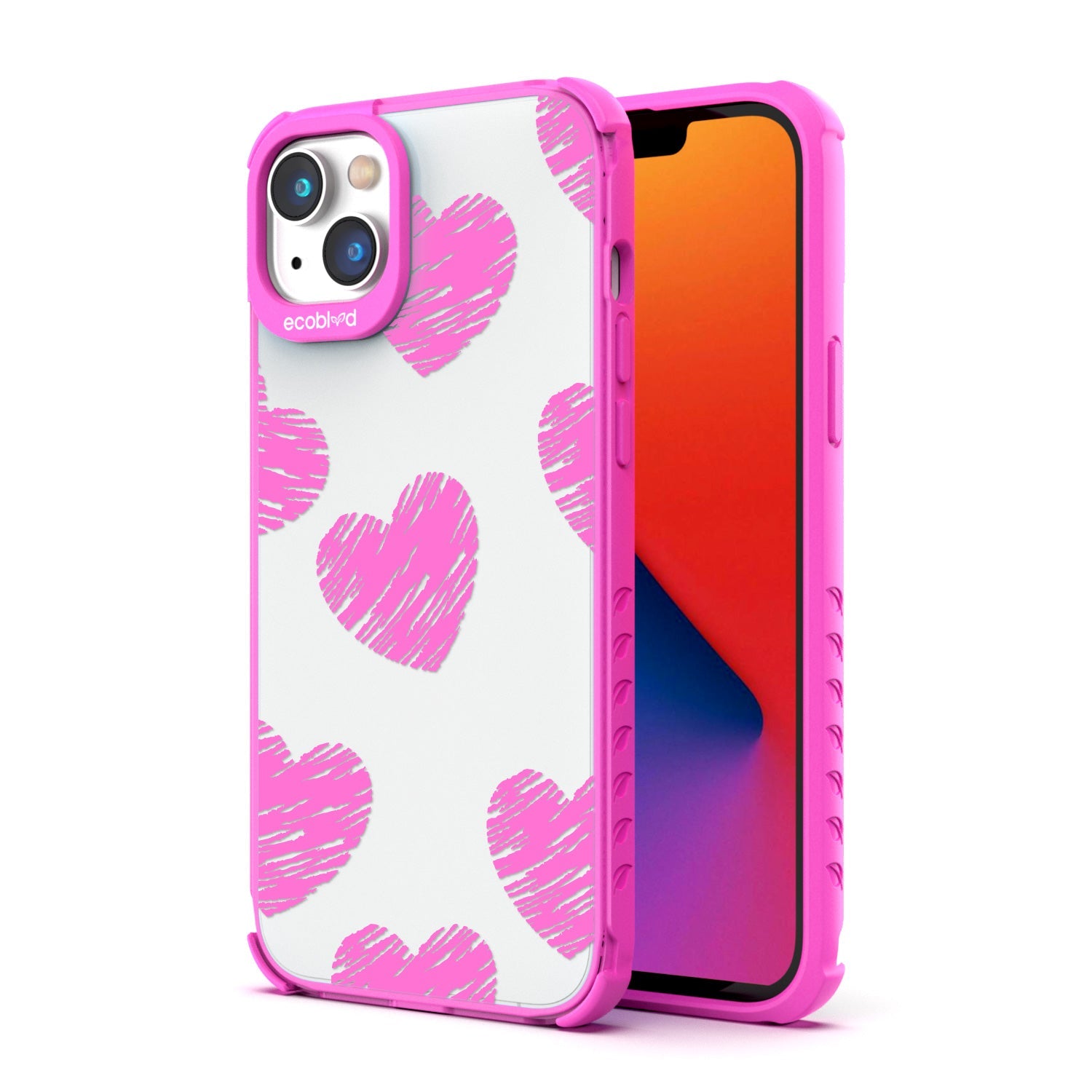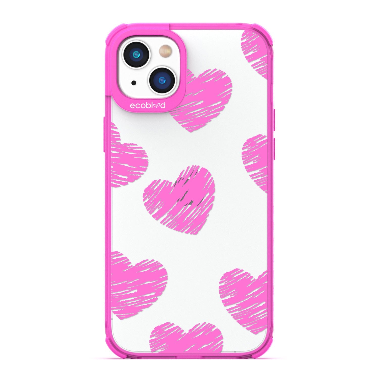 Perfectly capturing the magnetic pull of passion, the Drawn To You design on our Laguna clear iPhone 16e, iPhone 14, and iPhone 13 case is an artful arrangement of scribbled hearts and the perfect representation of the power of love, turning any phone into an object of desire in five vibrant colorways: Midnight Black, Cascade Blue, Foliage Green, Illuminating Yellow, and Wildflower Pink.