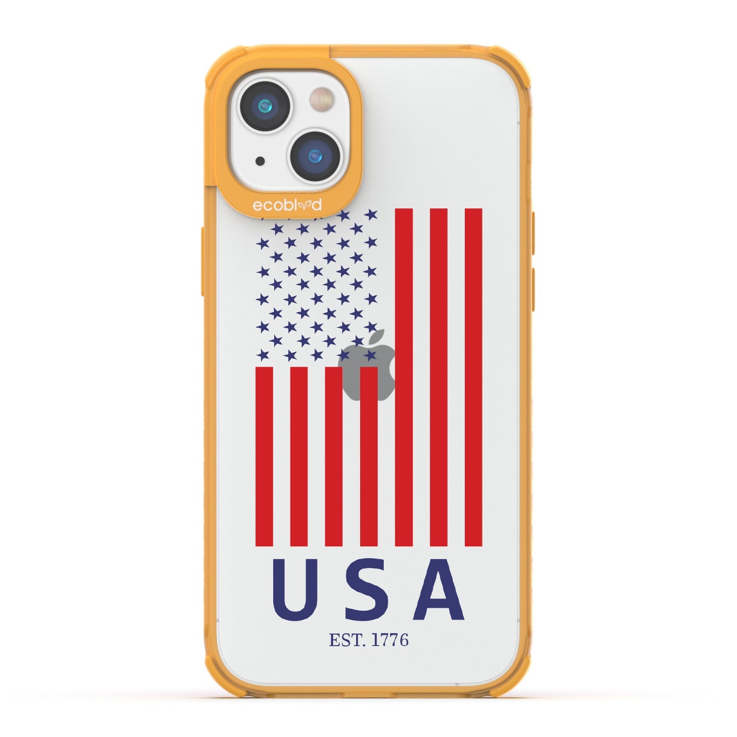 Let freedom ring loud all year long with the EST 1776 design on our Laguna clear iPhone 16e, iPhone 14, and iPhone 13 phone case. This design showcases the iconic stars and stripes, along with "USA" and "EST. 1776," making it the perfect accessory for all patriotic festivities and beyond.