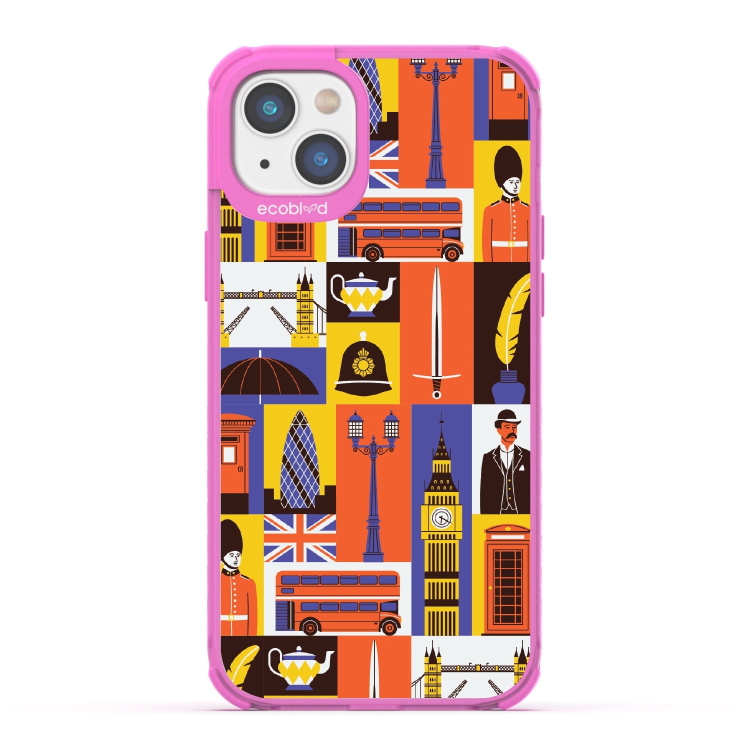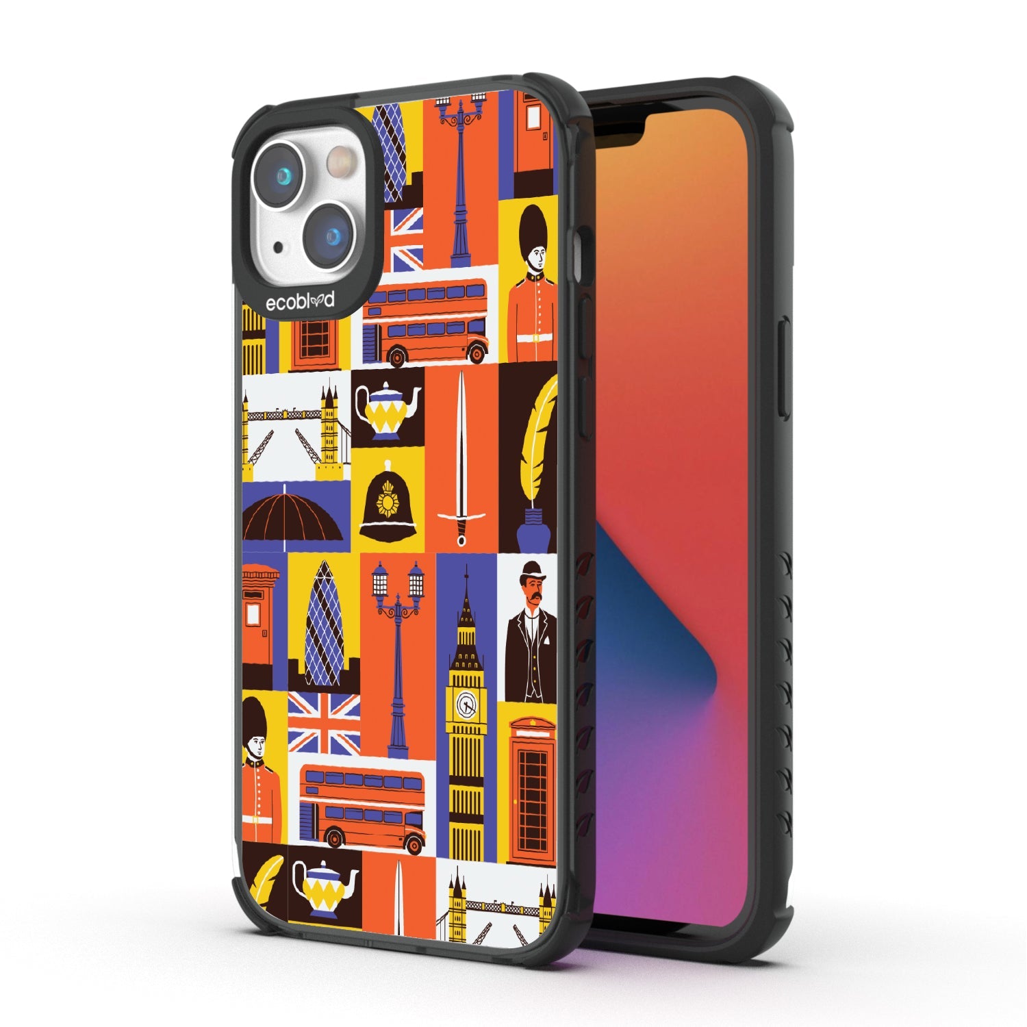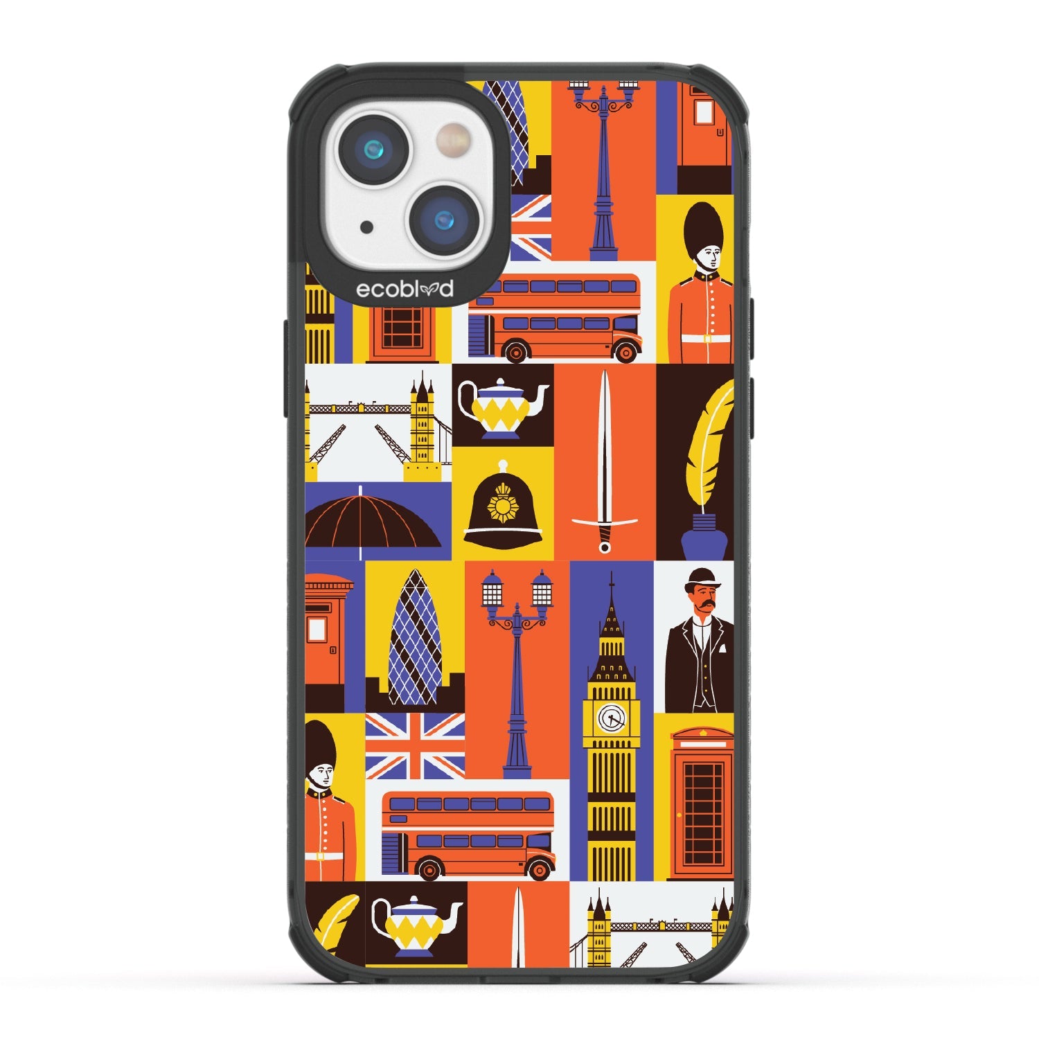 Climb onto the top deck of your own tour bus with the London Town design on our Laguna clear iPhone 16e, iPhone 14, and iPhone 13 phone case, where every box offers a new sight to be seen. From the grand silhouette of Big Ben to the solemn beauty of the Royal Guards, and the quaint charm of the traditional red telephone box, this design is your all-access pass to the city’s most storied landmarks.