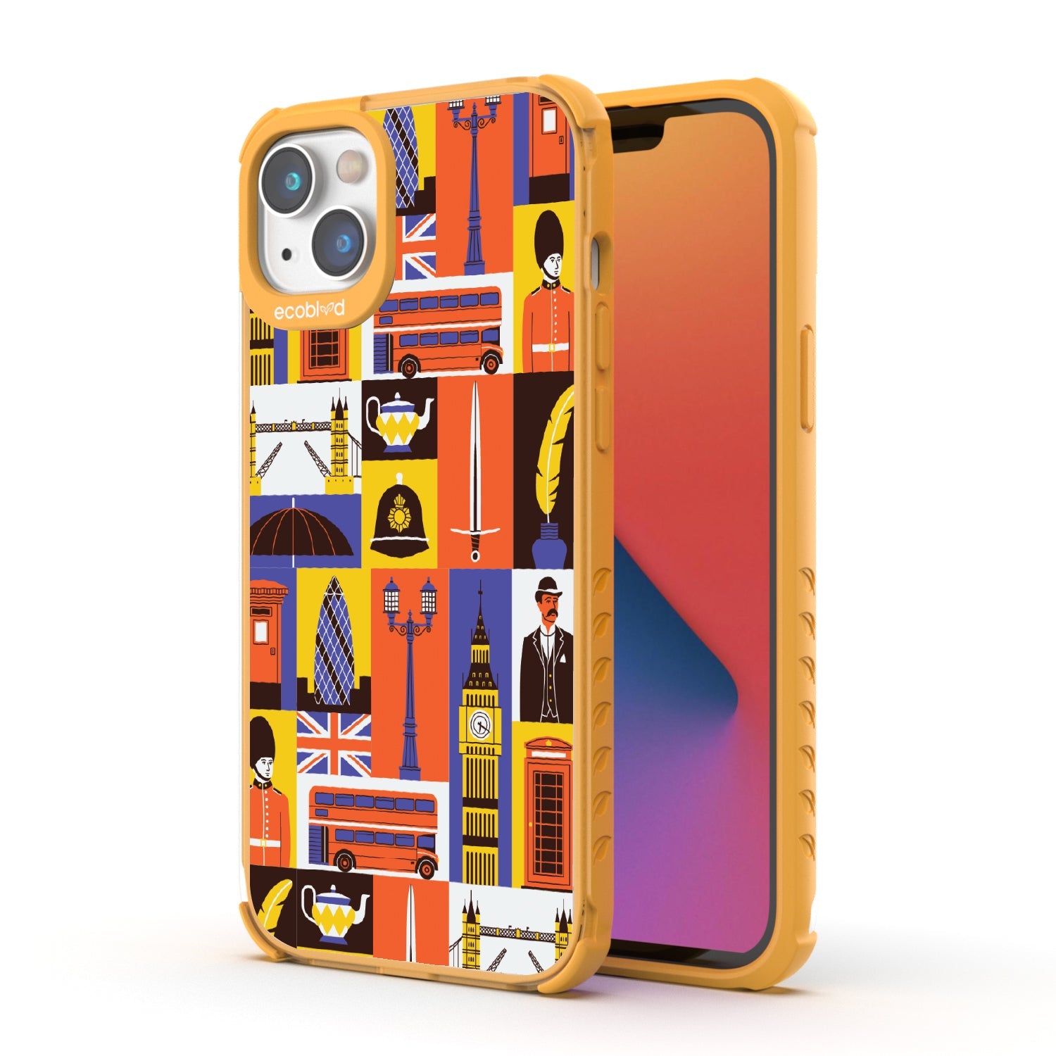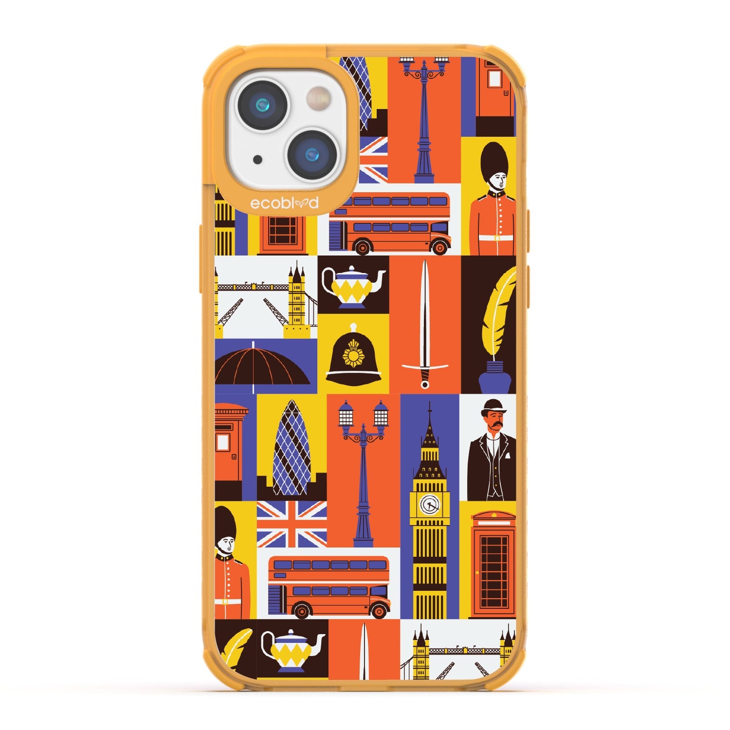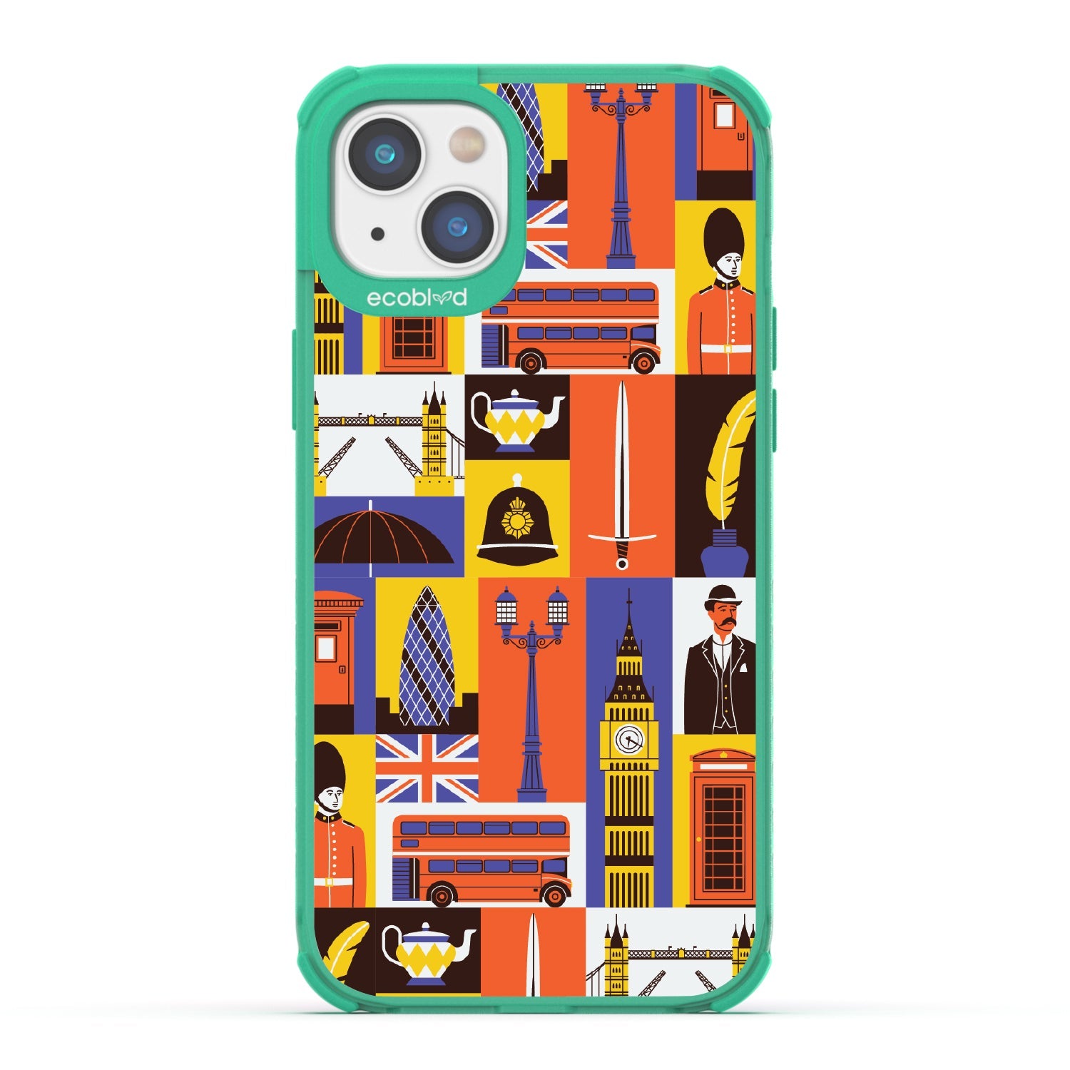 Climb onto the top deck of your own tour bus with the London Town design on our Laguna clear iPhone 16e, iPhone 14, and iPhone 13 phone case, where every box offers a new sight to be seen. From the grand silhouette of Big Ben to the solemn beauty of the Royal Guards, and the quaint charm of the traditional red telephone box, this design is your all-access pass to the city’s most storied landmarks.