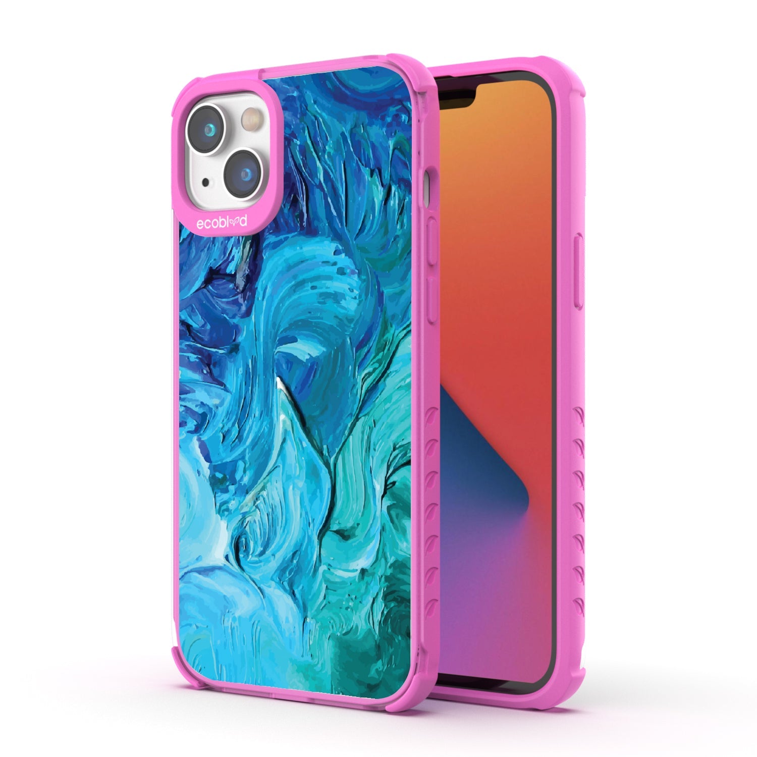 Let the current take control. The Oceanswept design on our Laguna clear iPhone 16e, iPhone 14, and iPhone 13 case swirls in fluid blues and greens, mimicking the way the tide carves patterns into the shore. A look shaped by movement, depth, and the artistry of the sea.