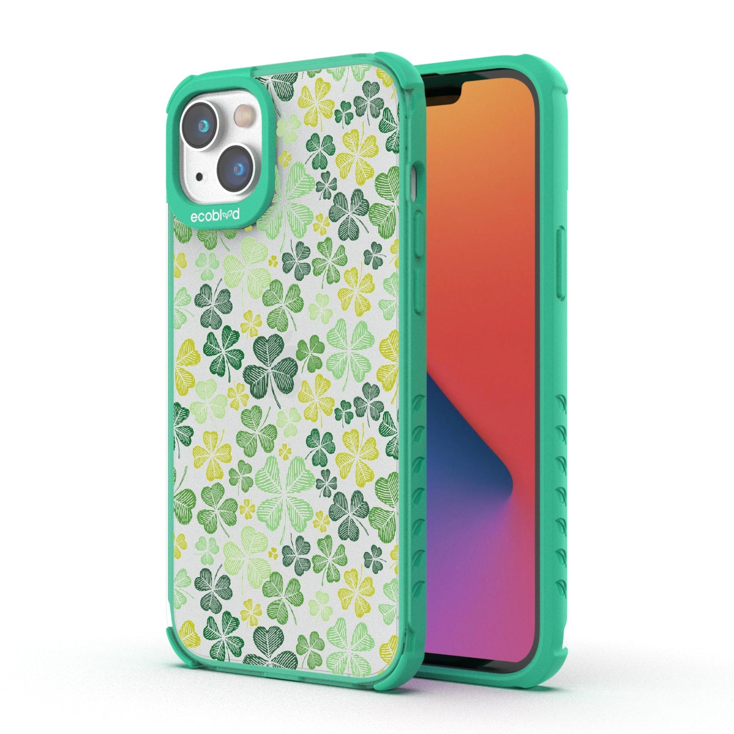 Turn your luck around with the vibrant Shamrock design on our Laguna clear iPhone 16e, iPhone 14, and iPhone 13 case, where every leaf whispers tales of fortune and fate. Adorned with a sea of green four-leaf clovers, this design is a true emblem of luck, designed to bring a touch of charm.