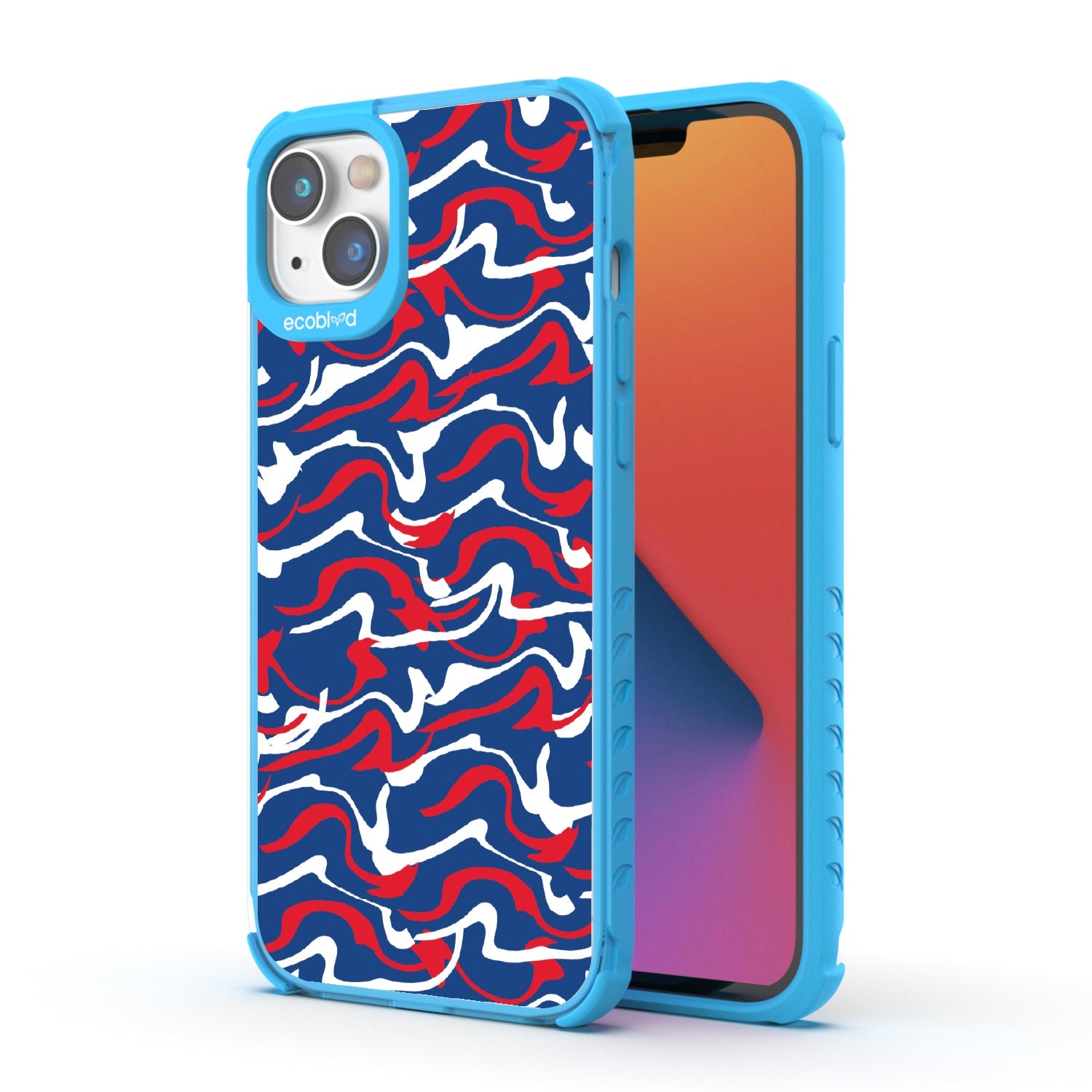 Yankee Doodle went to town, writing on our Laguna clear iPhone 16e, iPhone 14, and iPhone 13 phone case and iPhone 13 case, scribbling swirls of red, white, and blue, and out came something dandy!
