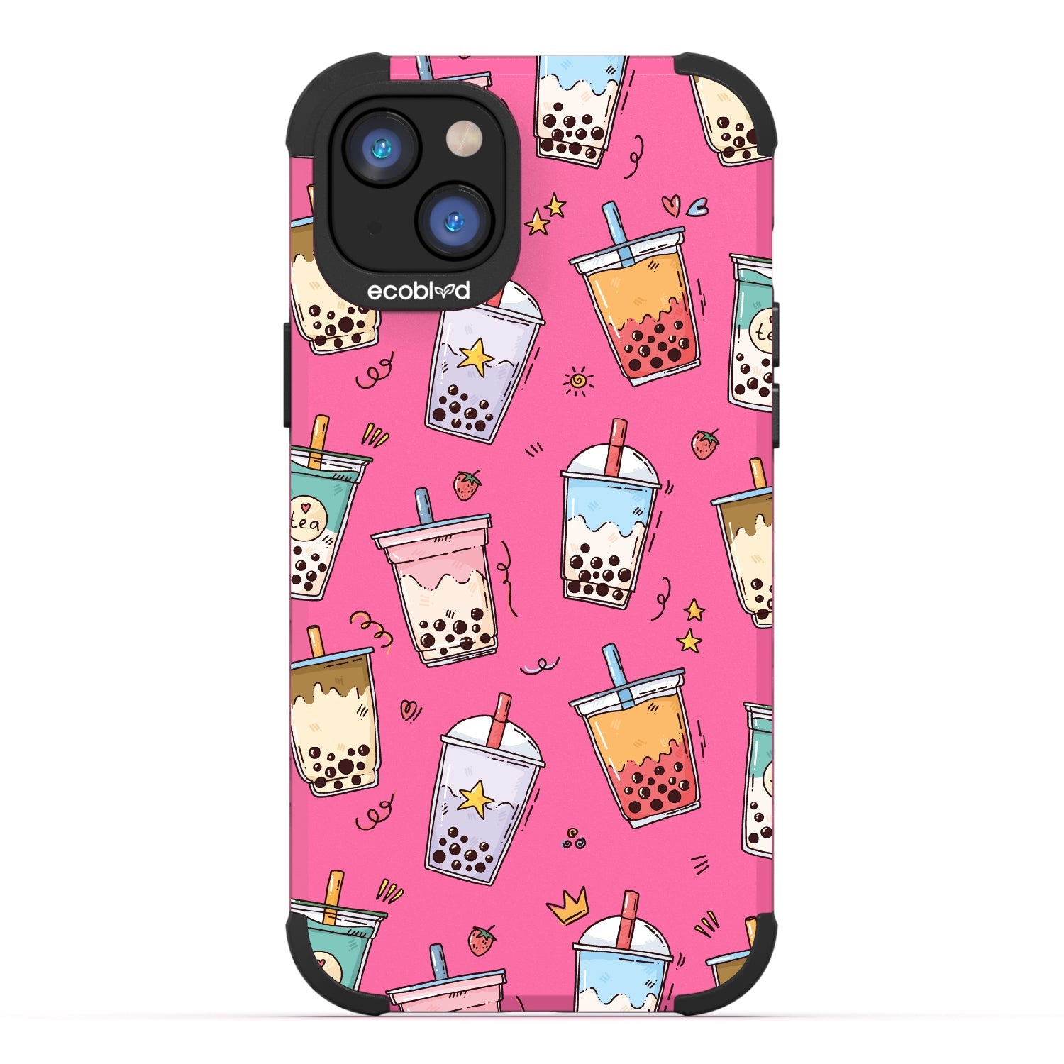 Your best-teas are always by your side. Colorful bubble tea cups in taro, matcha, and strawberry hues make this design on our Mojave rugged and compostable iPhone 16e, iPhone 14, and iPhone 13 case a playful celebration of flavor and friendship. A sweet reminder that good drinks (and good friends) make life better.