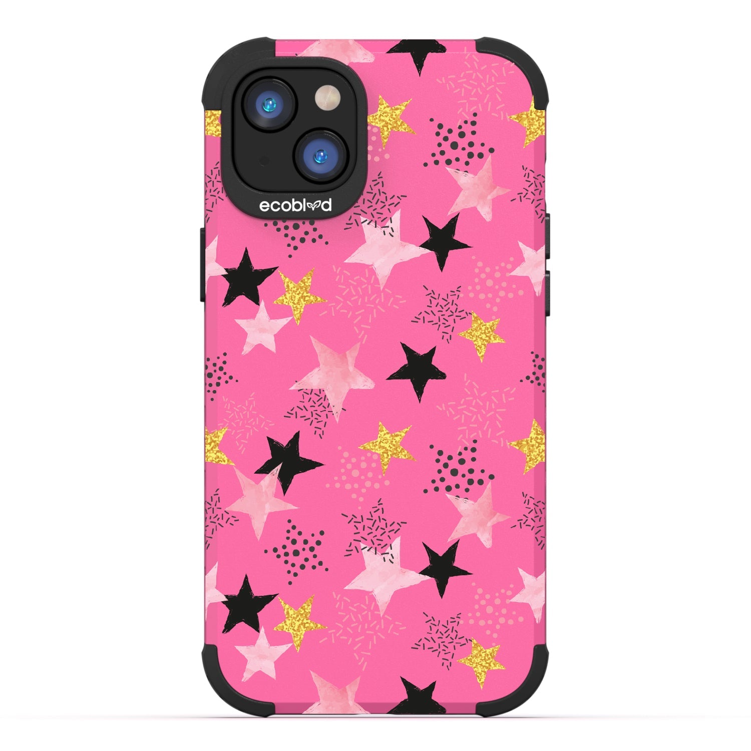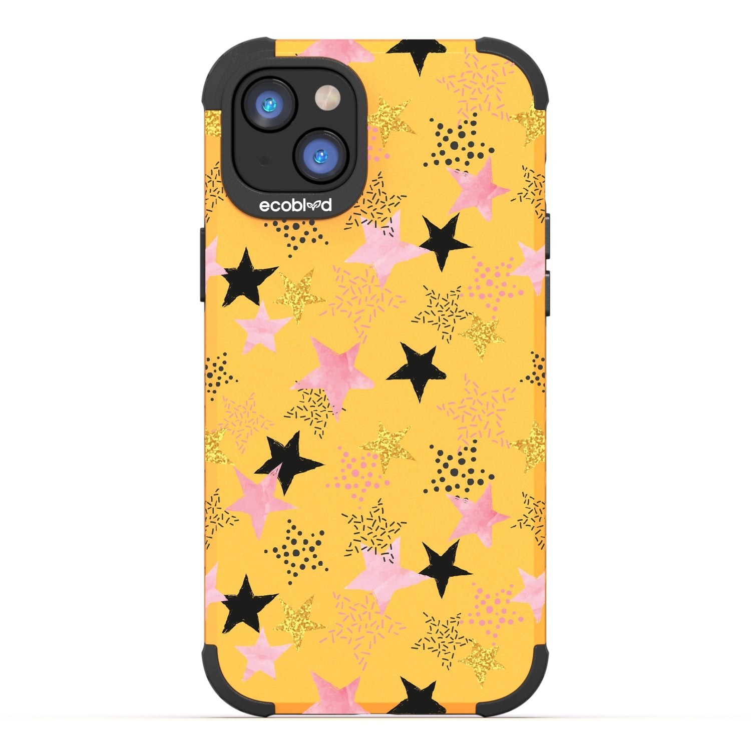 Show off your bubbly personality as you ring in the new year, new memories, or a new look with the Champagne Supernova design on our Mojave rugged and compostable iPhone 16e, iPhone 14, and iPhone 13 case shining like a star on your phone. Available in three stunning colors: Midnight Black, Wildflower Pink, and Illuminating Yellow.
