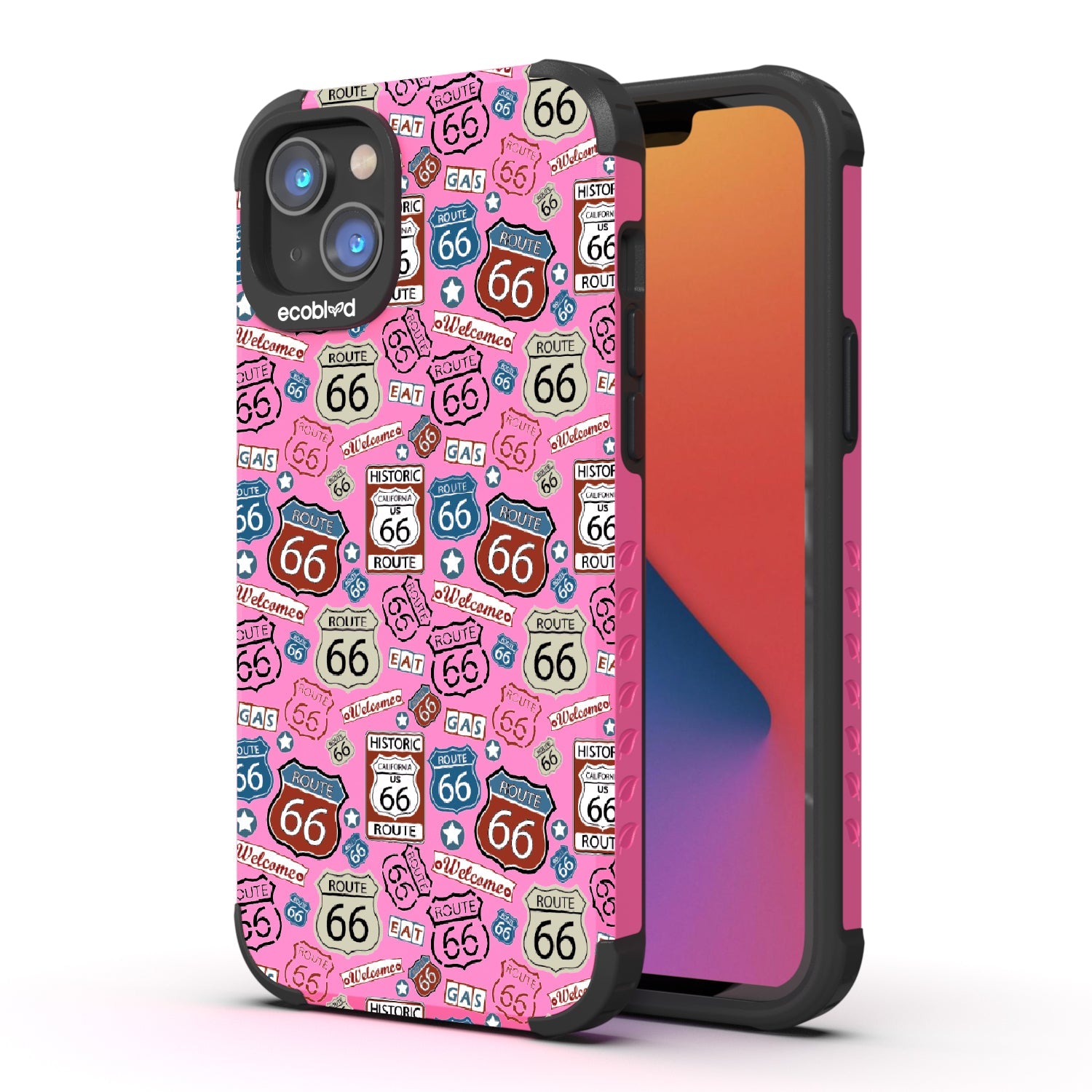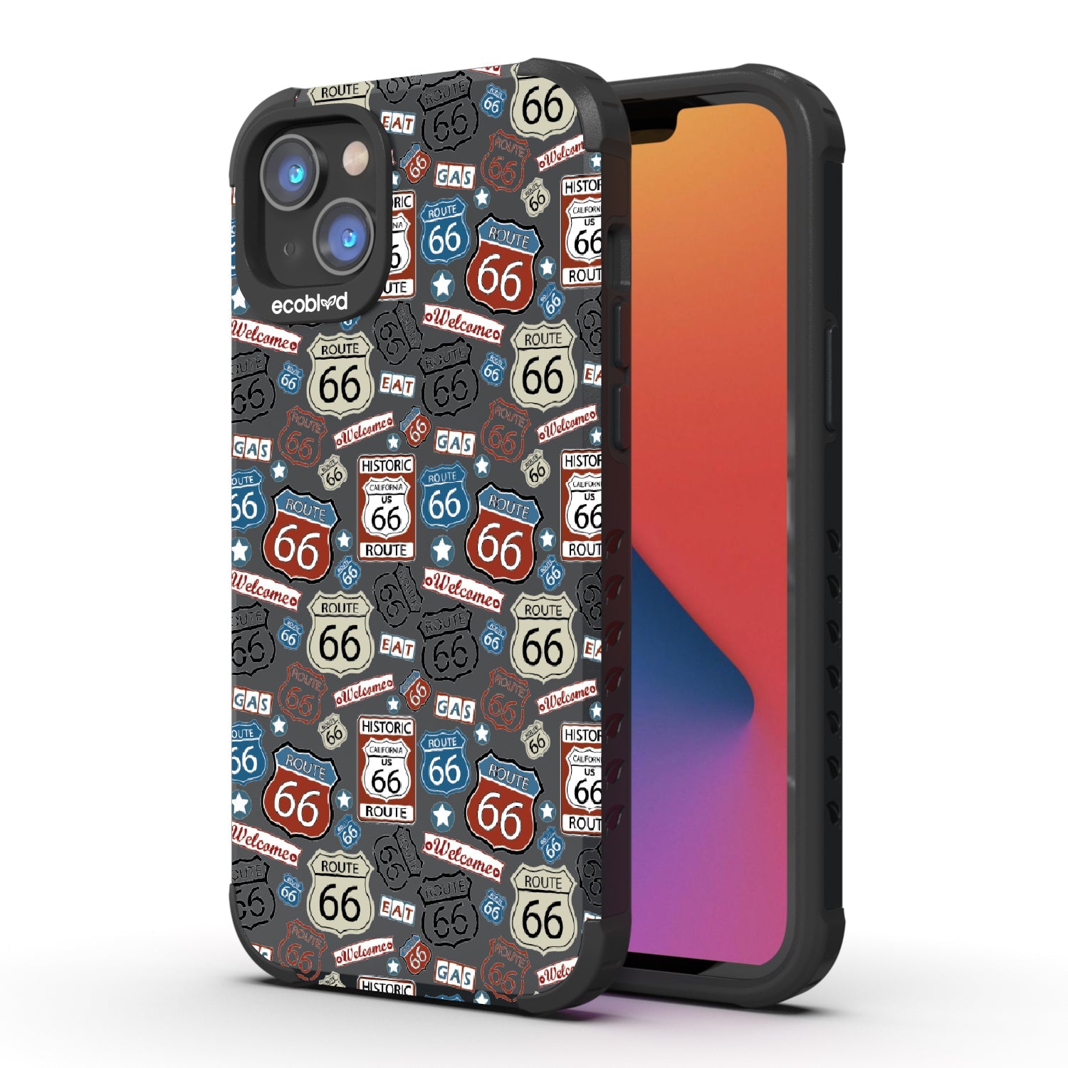 Travel the famed Route 66 with our Country Roads design on our Mojave rugged iPhone 16e, iPhone 14, and iPhone 13 phone case. Showcasing iconic Route 66 signs, rustic road markers, and scenic stops, this design celebrates the timeless appeal of America’s most famous highway.