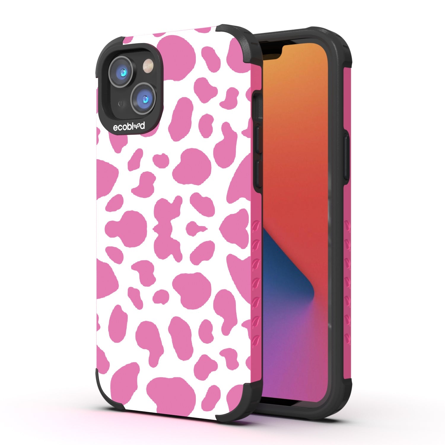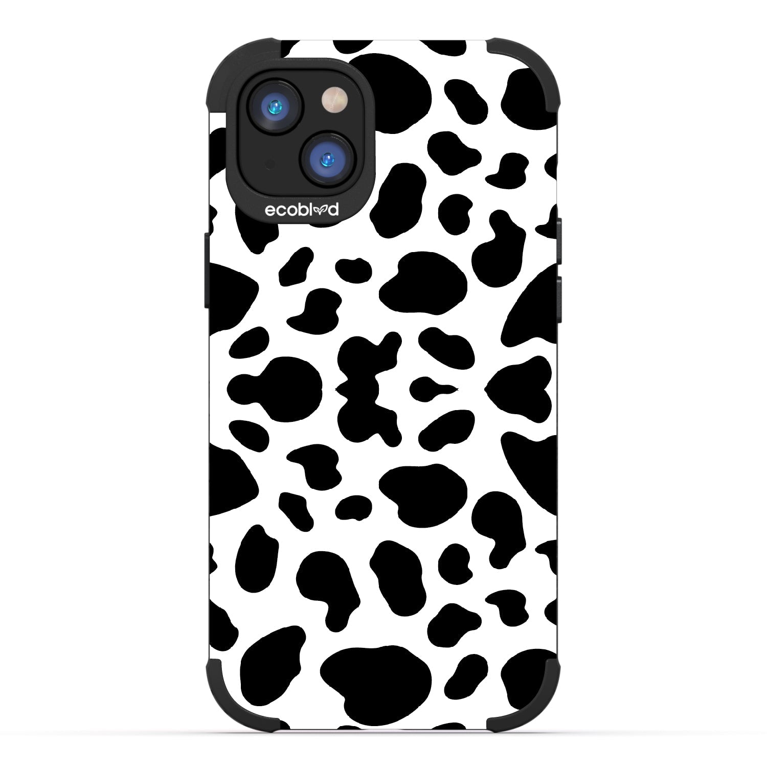 Make your phone and style easy to spot with the "moooognificient" Cow Print design on our Mojave rugged and compostableiPhone 16eiPhone 14, and iPhone 13 case, available in three vibrant colors: Midnight Black, Cascade Blue, and Wildflower Pink.