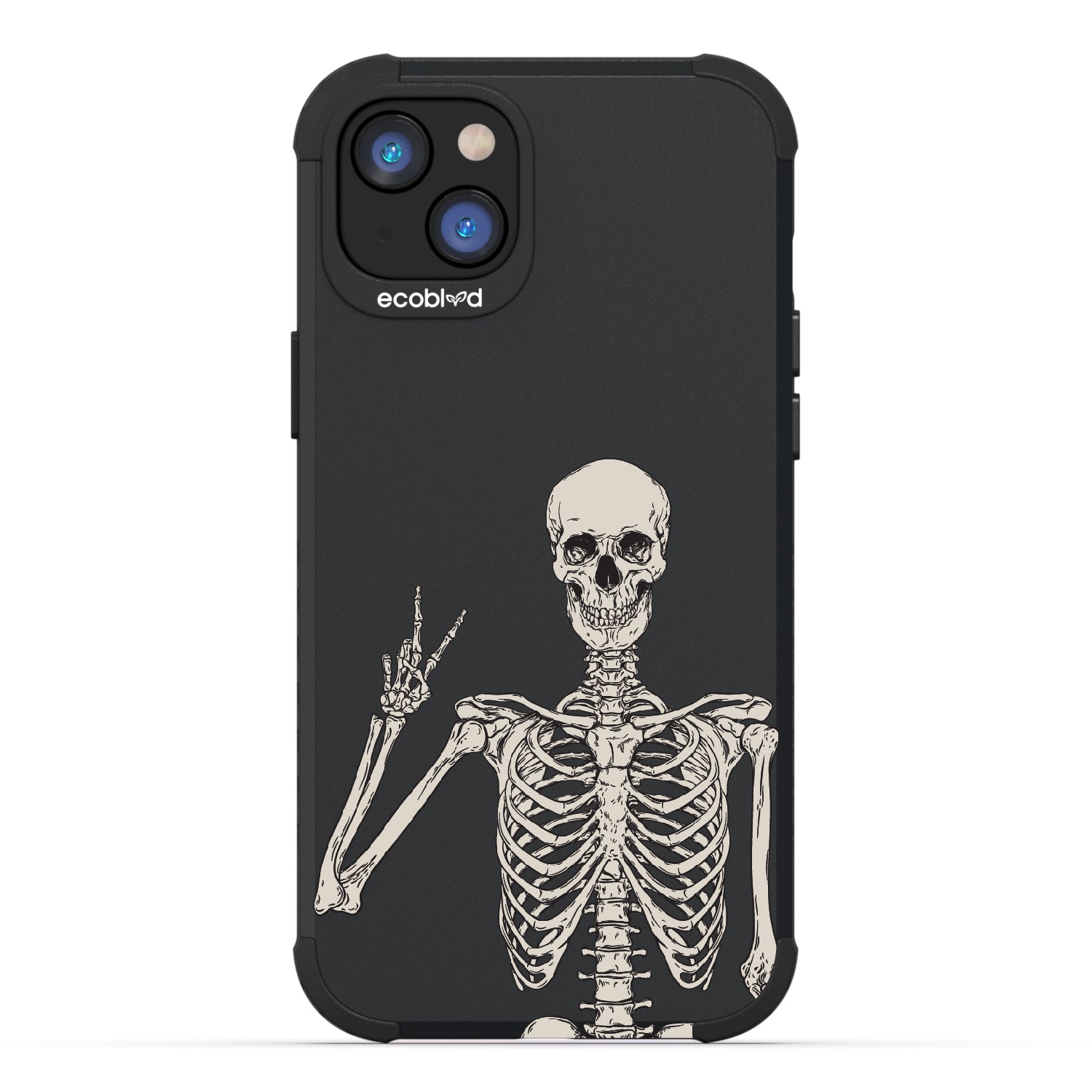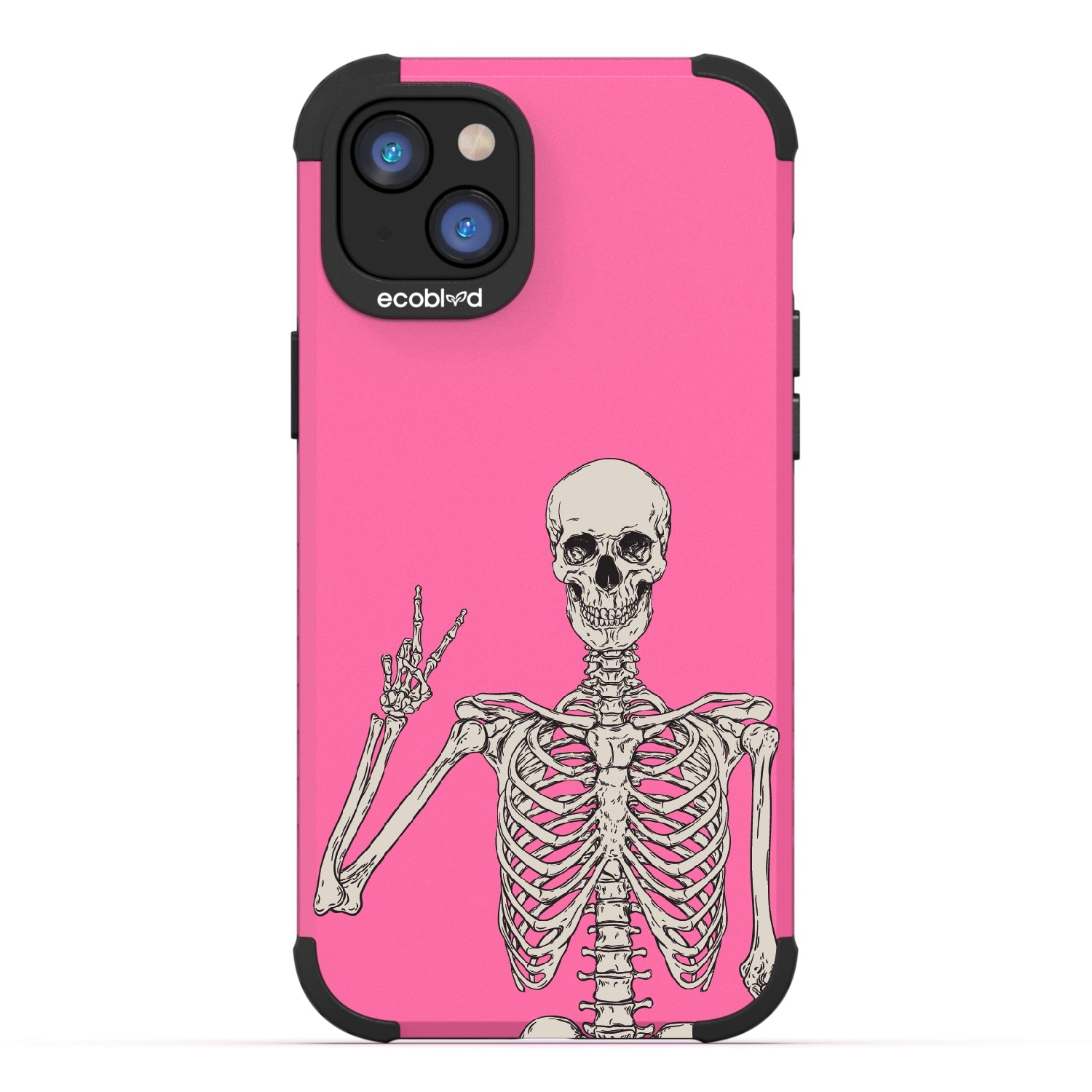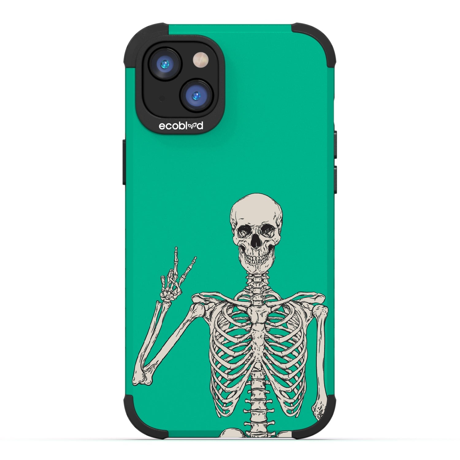 No doubt, the Creepin' It Real design on our Mojave rugged and compostable iPhone 16e, iPhone 14, and iPhone 13 case is sure to make your phone and style simply bone-chilling, as it features an eye-catching skeleton giving the peace sign. Choose from five vibrant colors: Midnight Black, Cascade Blue, Foliage Green, Illuminating Yellow, and Wildflower Pink.