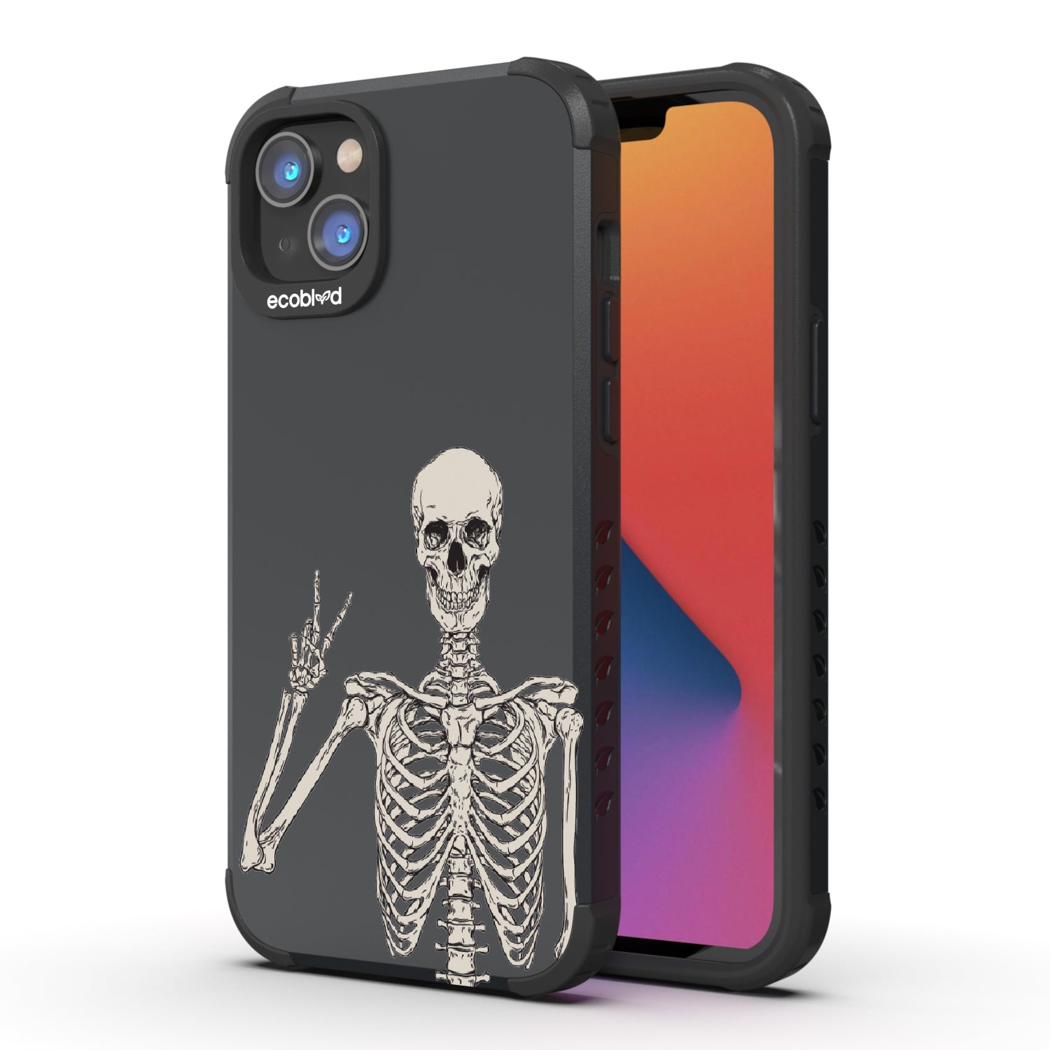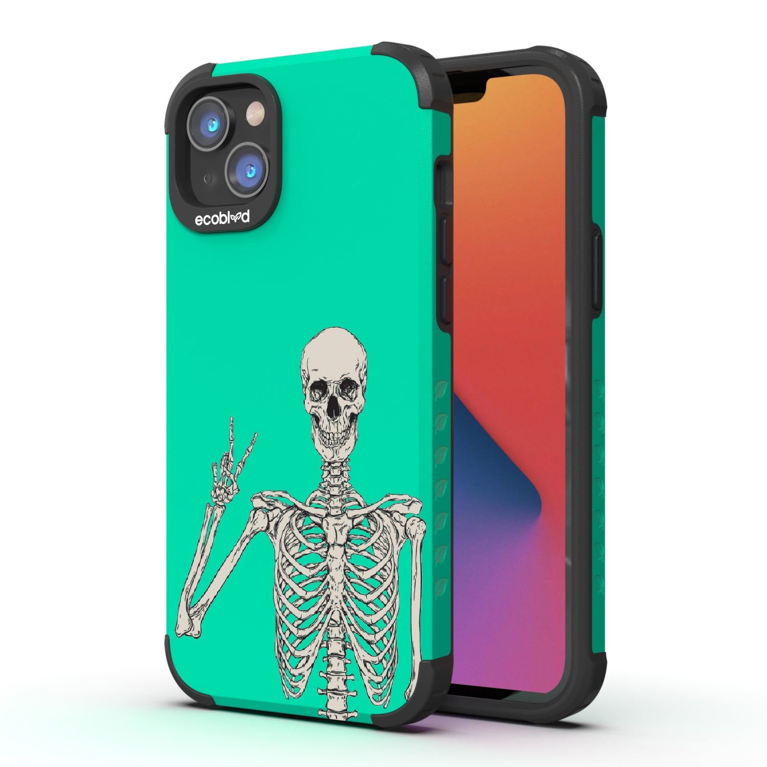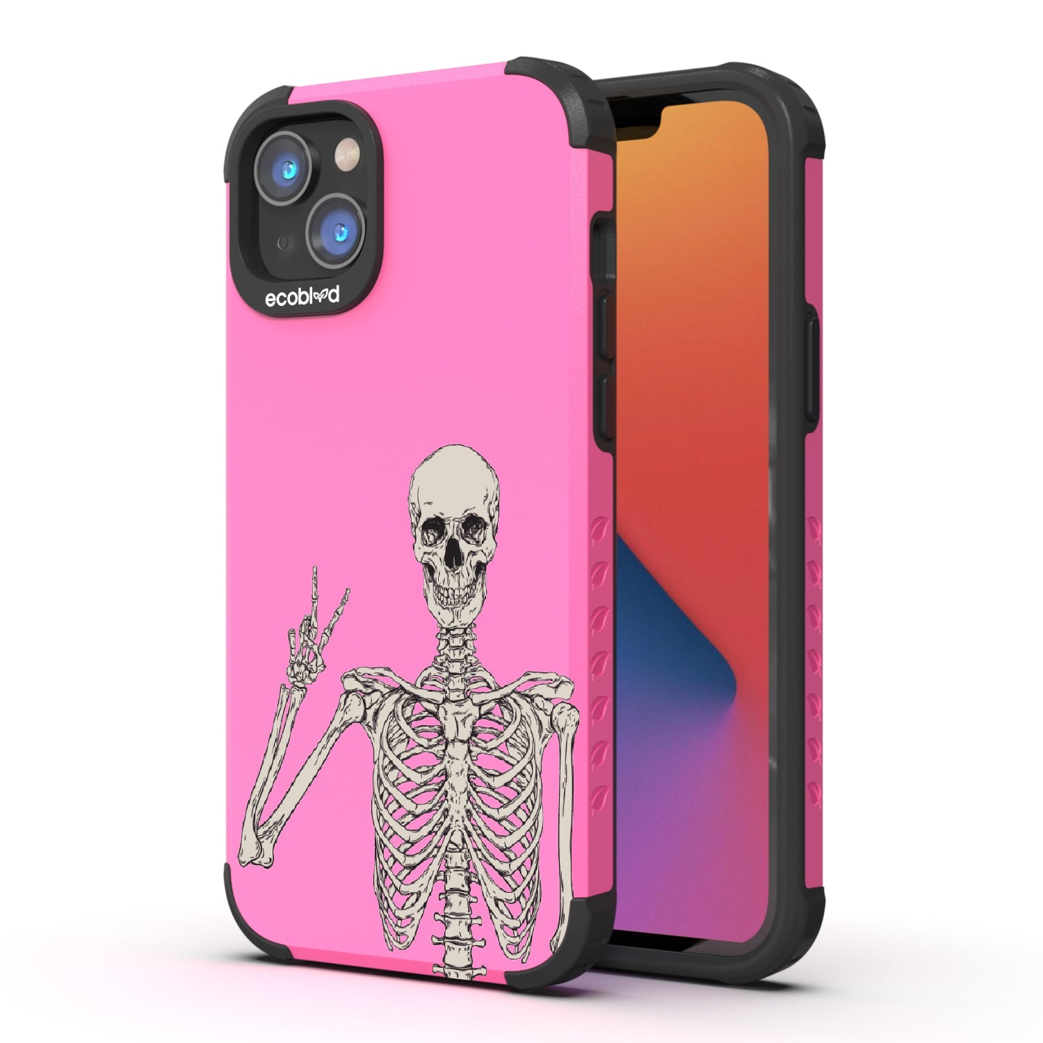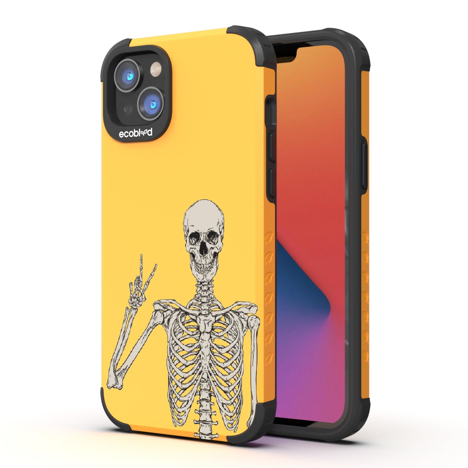 No doubt, the Creepin' It Real design on our Mojave rugged and compostable iPhone 16e, iPhone 14, and iPhone 13 case is sure to make your phone and style simply bone-chilling, as it features an eye-catching skeleton giving the peace sign. Choose from five vibrant colors: Midnight Black, Cascade Blue, Foliage Green, Illuminating Yellow, and Wildflower Pink.