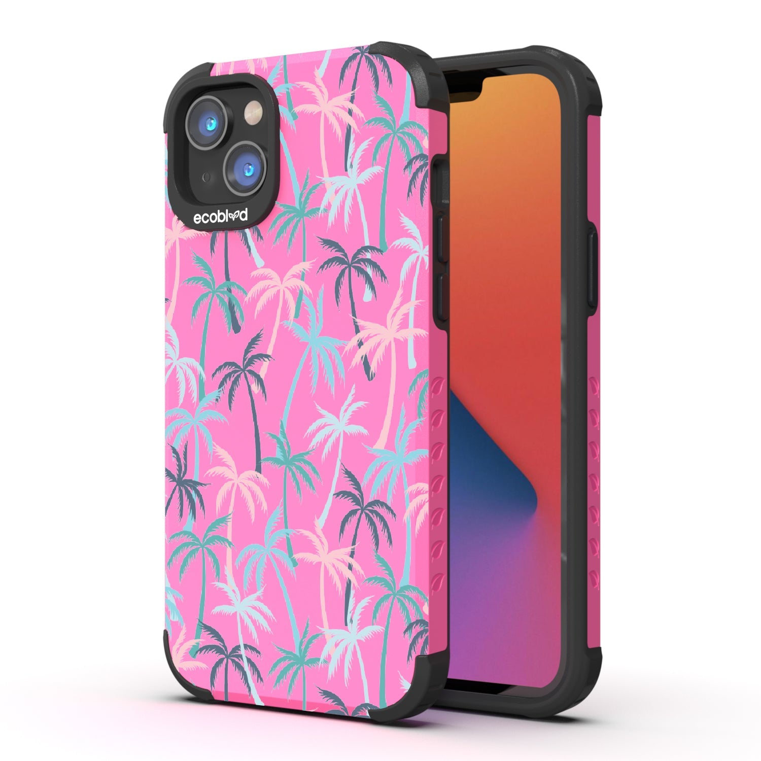 Bring on the heatwave of style with the Cruel Summer design on our Mojave rugged and compostable iPhone 14 case. Its palm trees decked out in a mesmerizing retro-Miami inspired palette invite you to step into a summer that's anything but ordinary. With this design, you'll experience a world of bold choices, vibrant energy, and unforgettable moments. Take your phone on a wild ride, make a statement wherever you go, and make it your playground for the cruel summer.