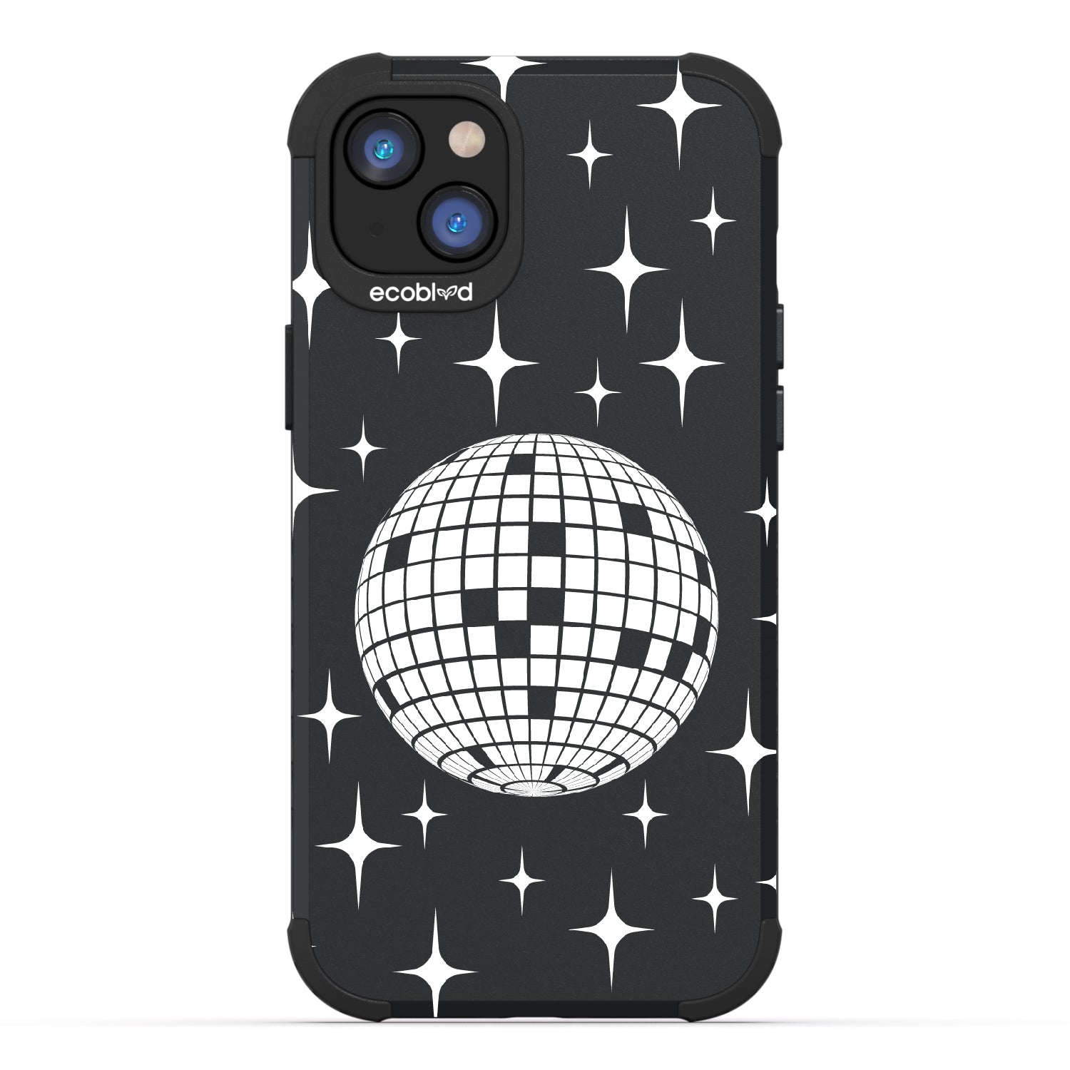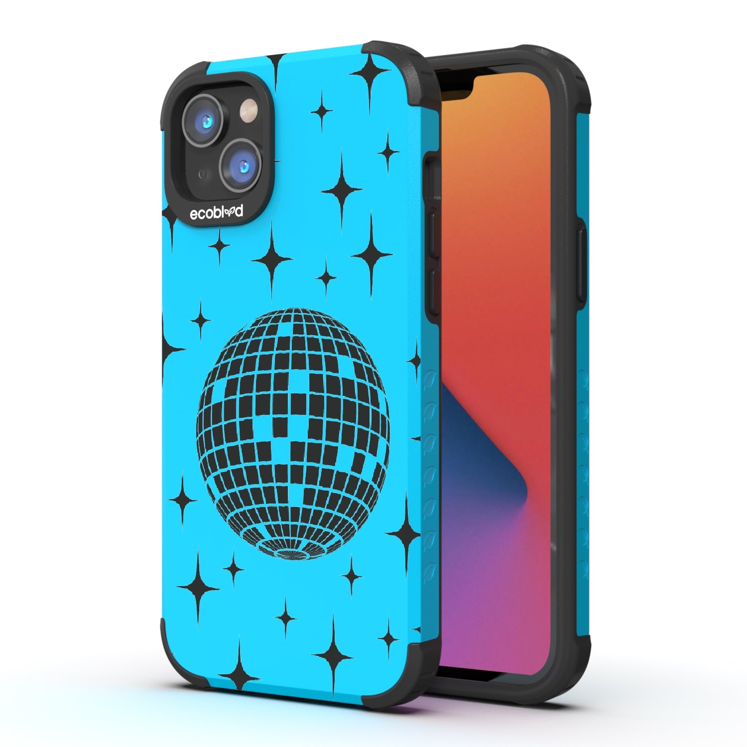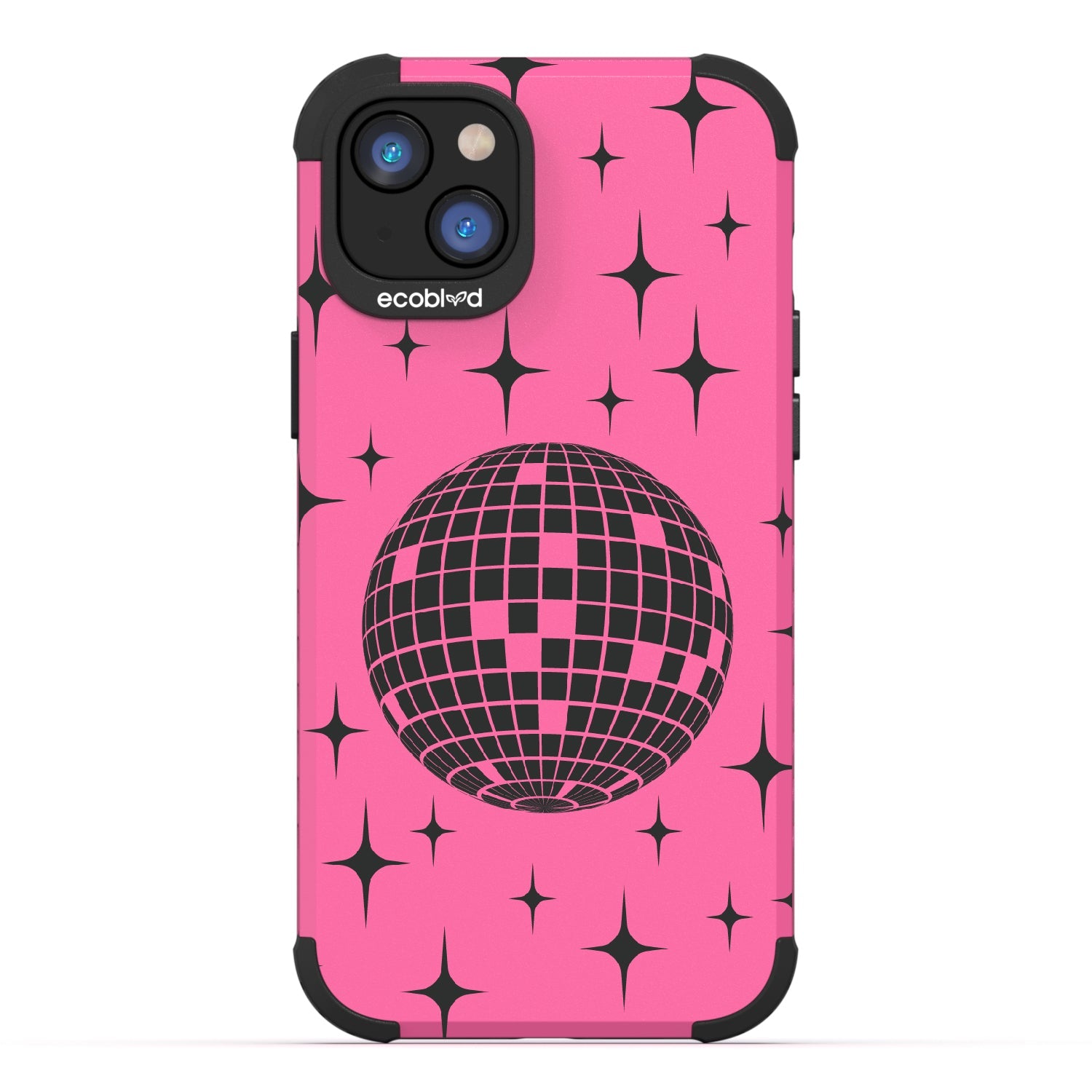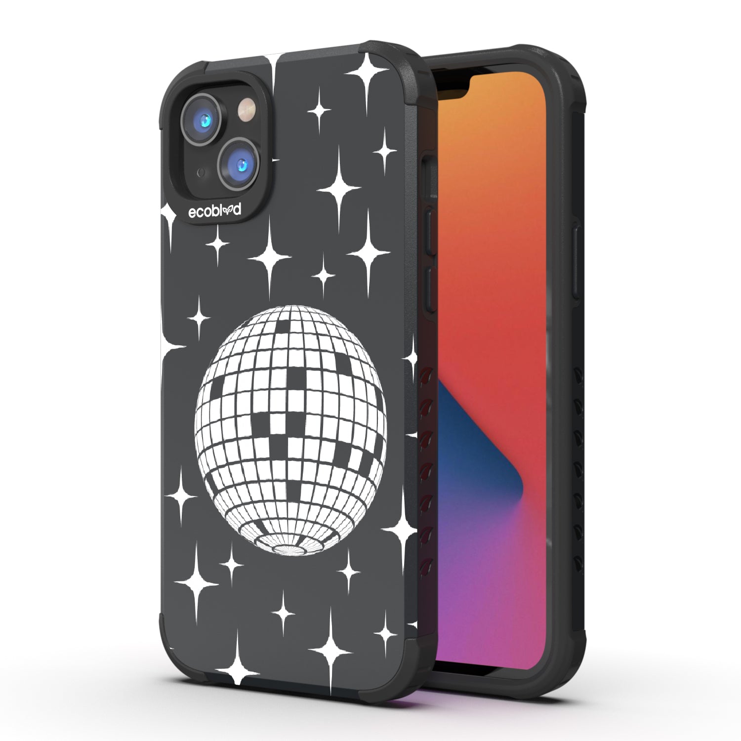 Let it all hang footloose as you hit the dancefloor with the Disco With The Flow design on our Mojave rugged and compostable iPhone 16e, iPhone 14, and iPhone 13 case and its mirrorball that reflects your smartphone in five groovy colors: Midnight Black, Cascade Blue, Foliage Green, Illuminating Yellow, and Wildflower Pink.