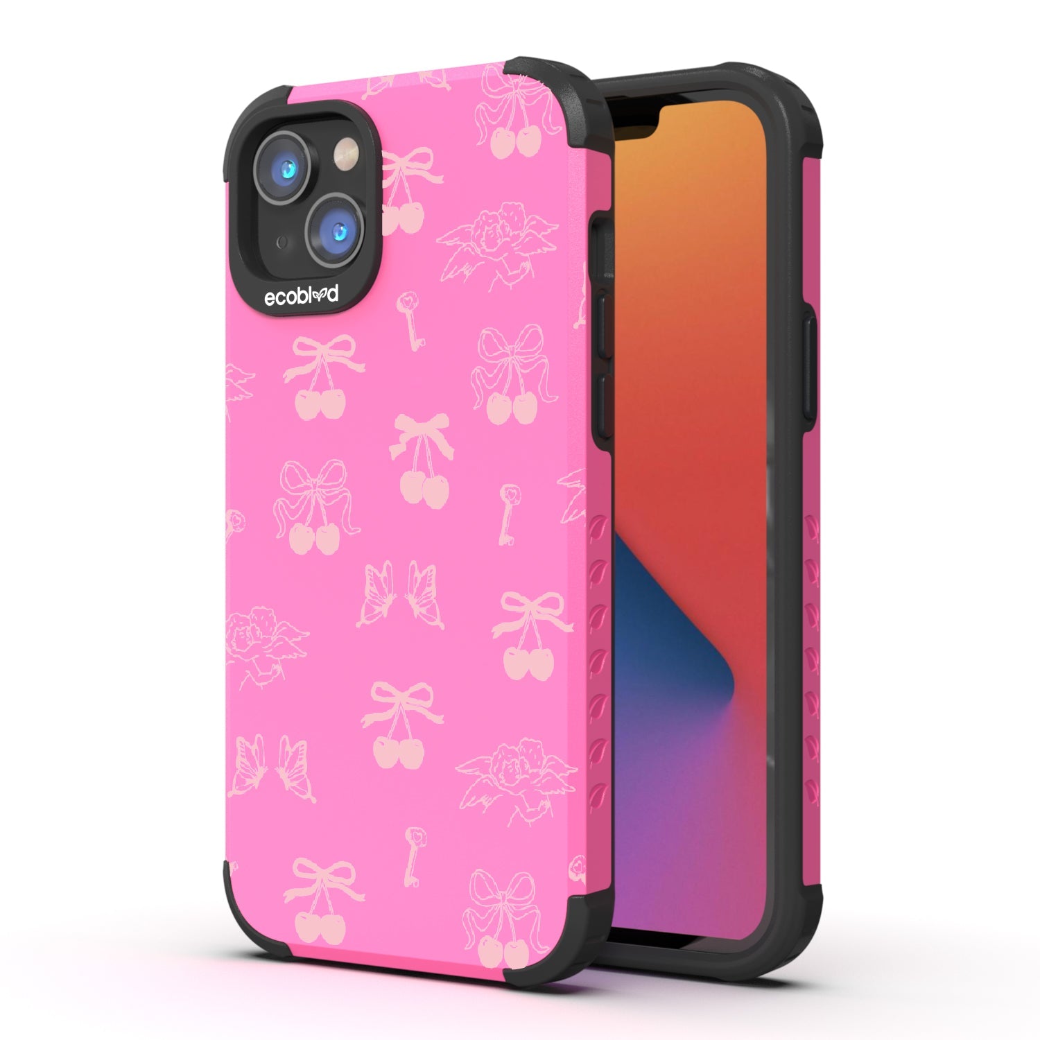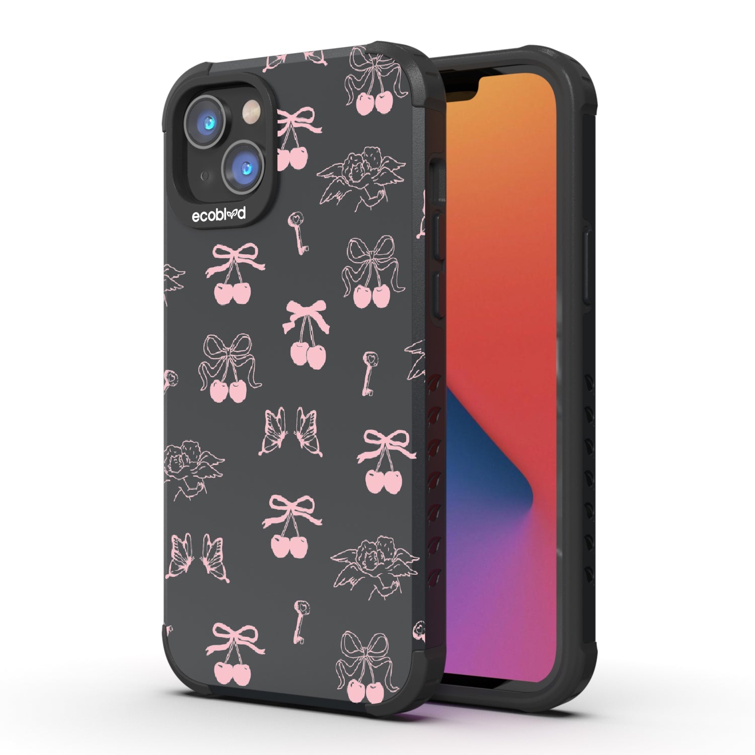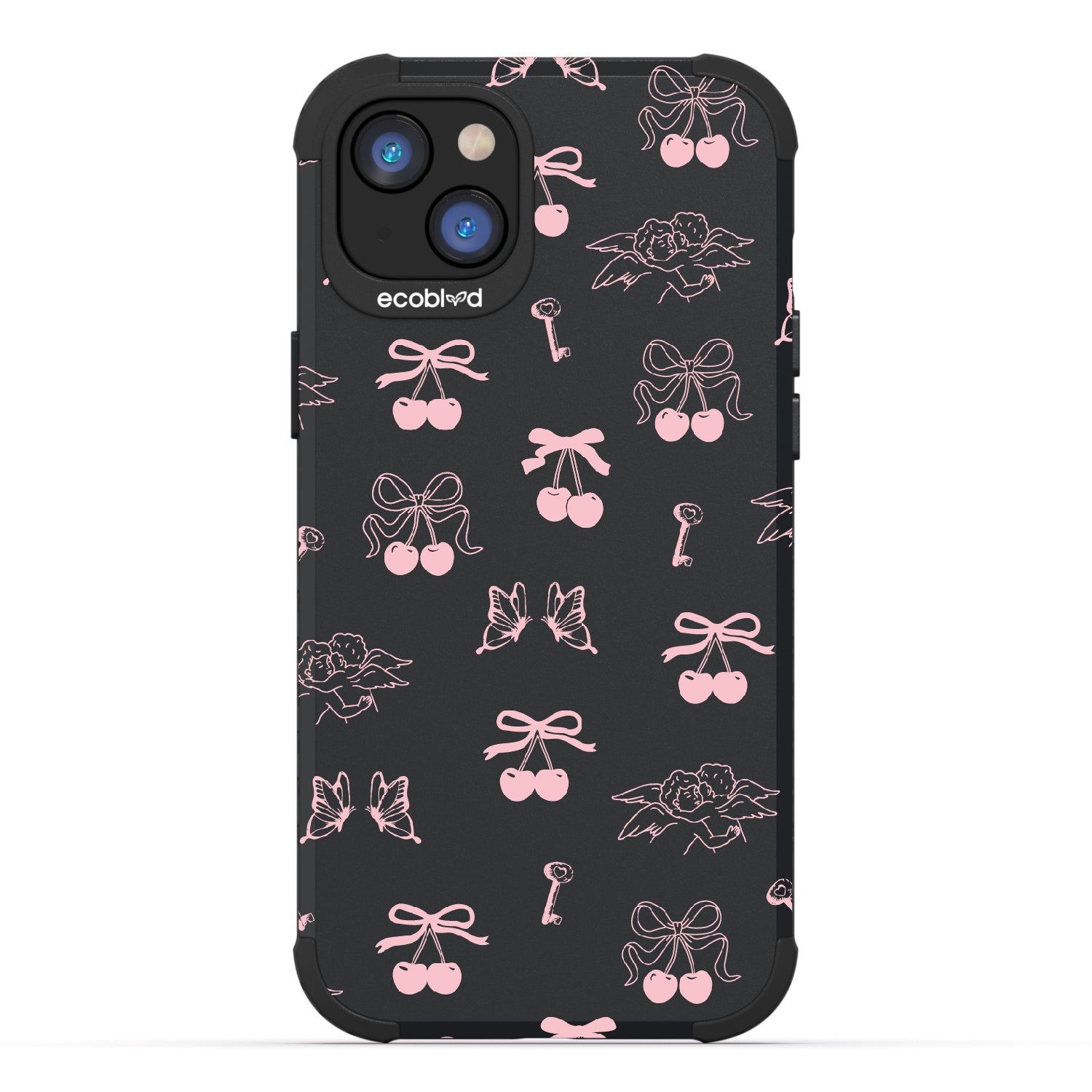 Being a Doll Face means exuding charm and playfulness, just like the Doll Face design on our Mojave rugged and compostable iPhone 16e, iPhone 14, and iPhone 13 phone case. This cute design, with its cherubs, cherries, bows, keys, and butterflies, brings a whimsical coquette touch to your phone. The playful pattern adds a dainty, feminine energy, enhancing your coquette fashion. Bring out the frilly details that make you shine. Show off your Doll Face allure with this delightful design and let your phone be your cutest accessory!
