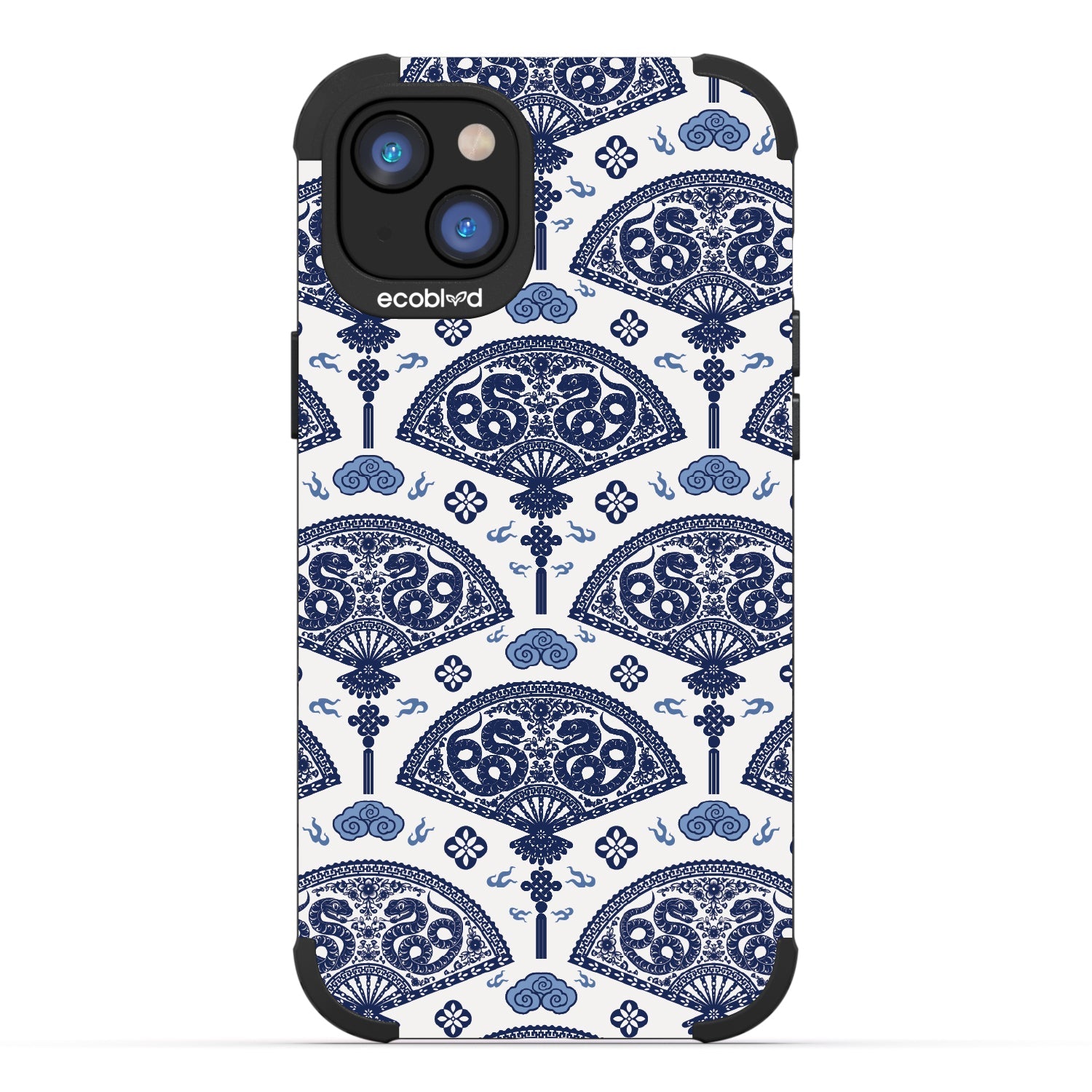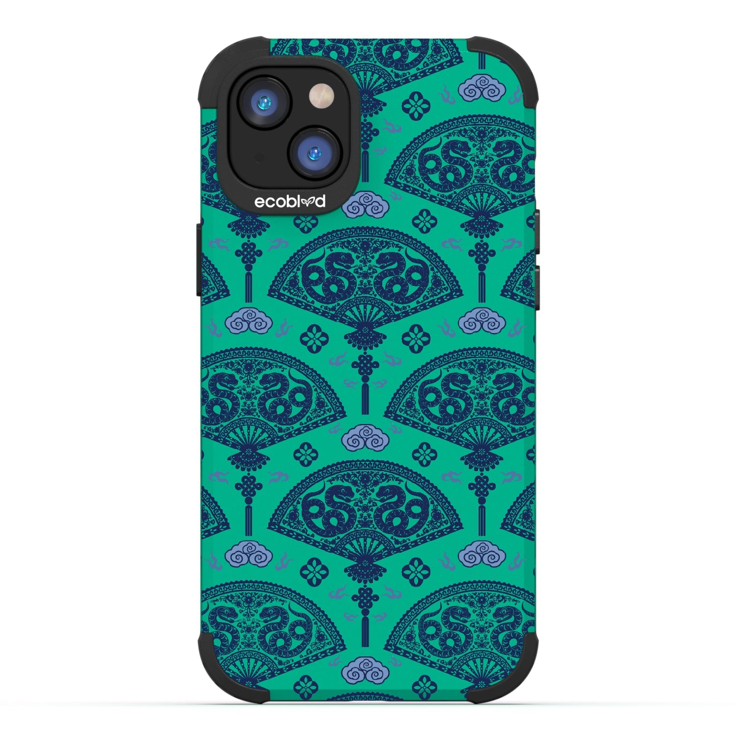 Let the winds of good fortune blow your way with the Fanning Fortune design on our Mojave rugged and compostable iPhone 16e, iPhone 14, and iPhone 13 case. Golden serpents coil through beautifully detailed fans, a symbol of protection and prosperity for the Year of the Snake. The blue and yellow hues reflect the harmony between calmness and vitality, setting the tone for a year filled with new opportunities and growth.