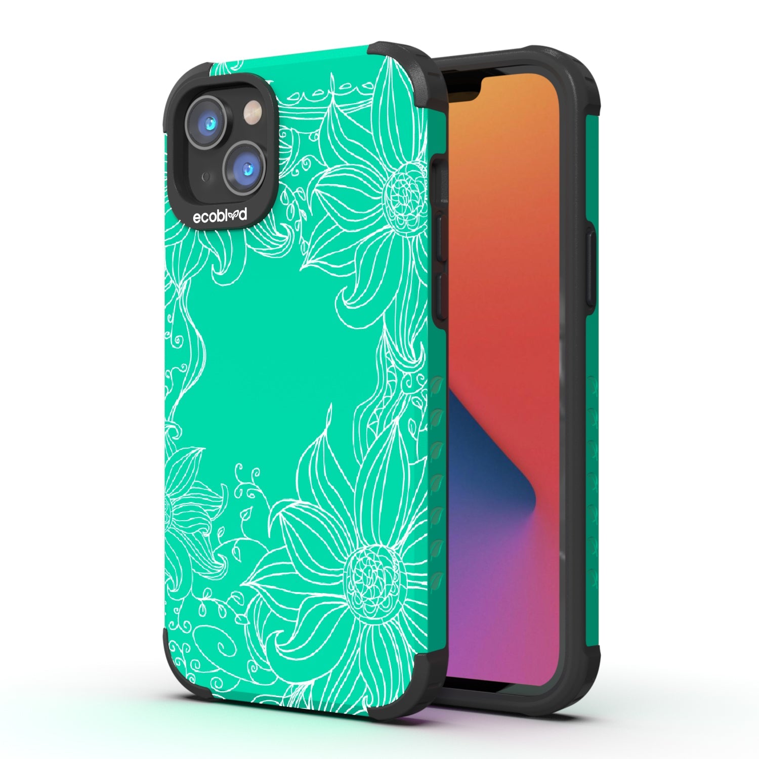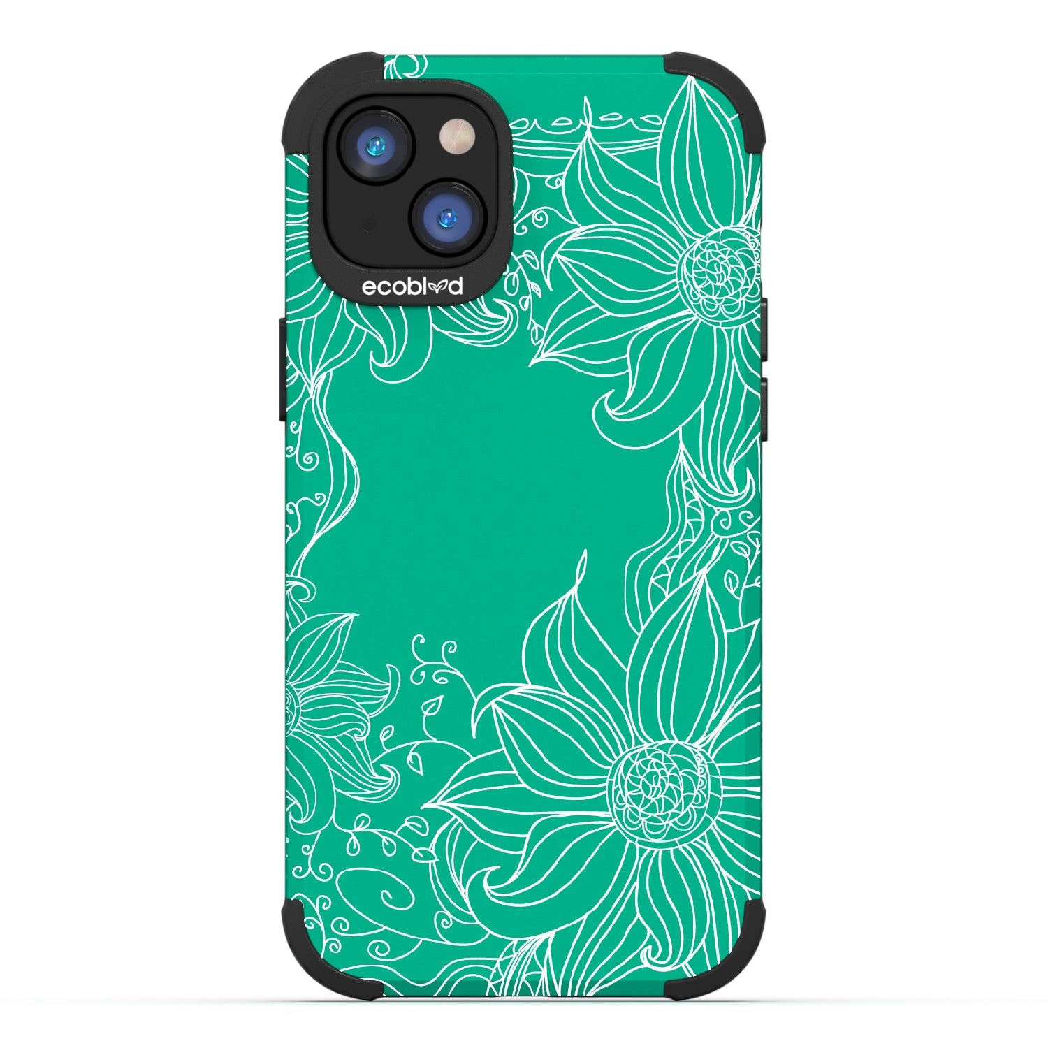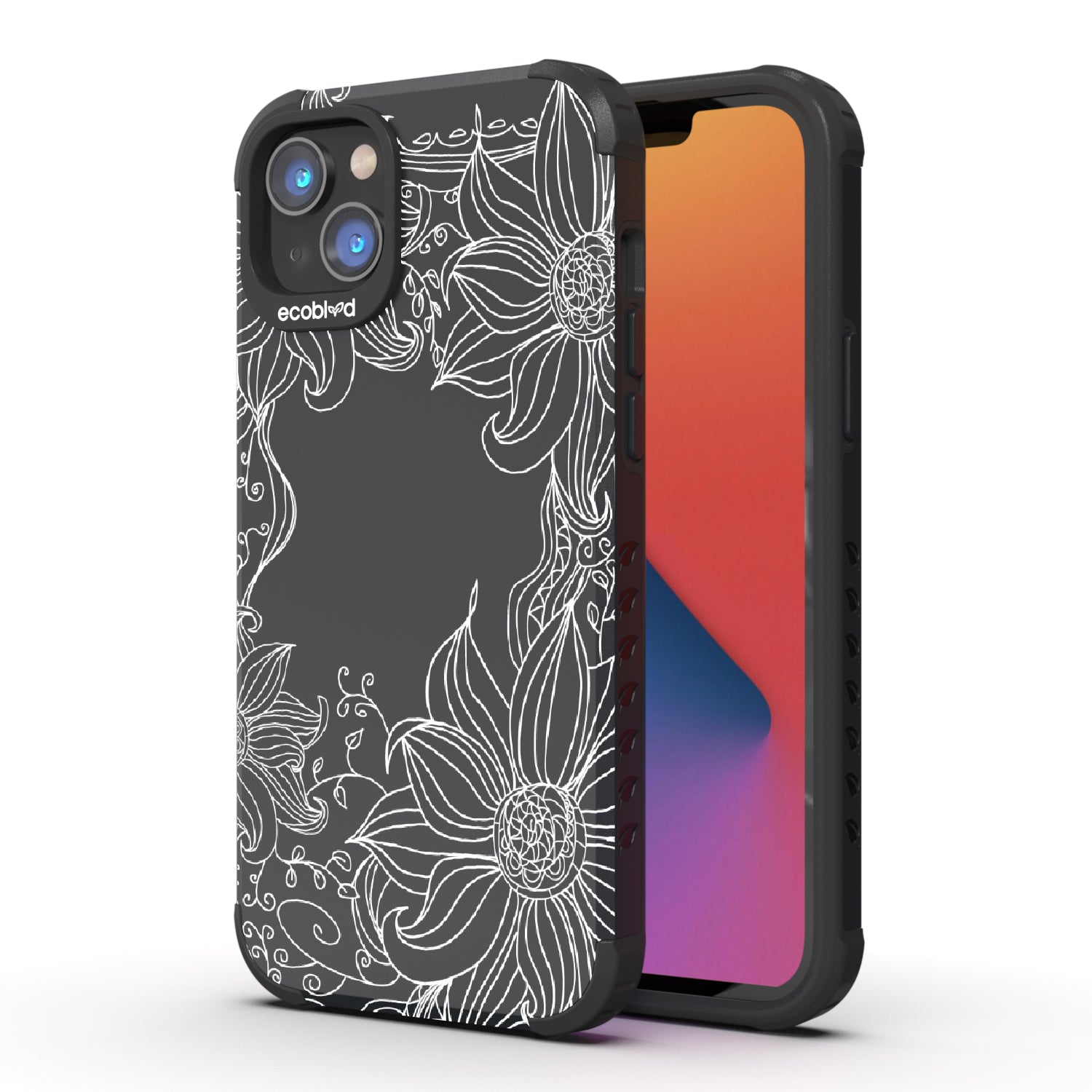 iPhone 16e, iPhone 14, and iPhone 13 case whose stunning sunflower drawing transforms your style and look into a natural masterpiece with five vibrant color options: Midnight Black, Cascade Blue, Foliage Green, Illuminating Yellow, and Wildflower Pink.