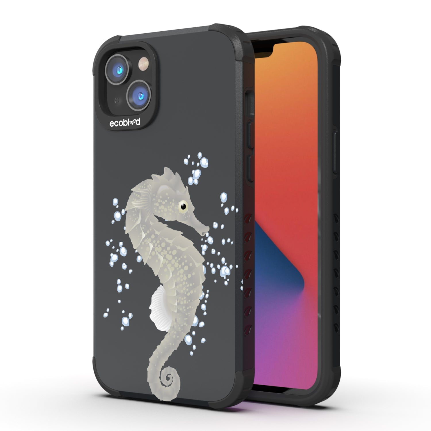 Giddy up and ride the waves with the Gallop of the Sea design on our Mojave rugged and compostable iPhone 16e, iPhone 14, and iPhone 13 phone case.! A seahorse leads the way, prancing through a stream of shimmering bubbles, turning your phone into the ultimate sea steed. With this design, you’re always in the winner’s circle.