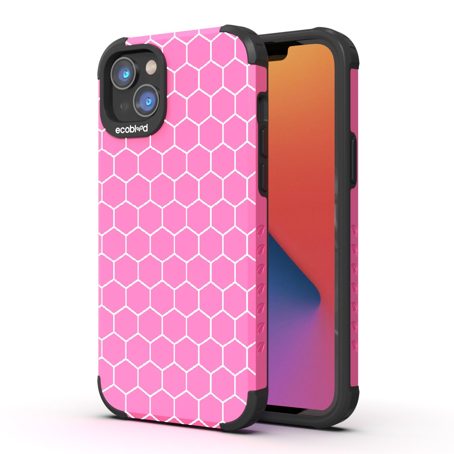 The Honeycomb design on our Mojave rugged and compostable iPhone 16e, iPhone 14, and iPhone 13 case, is the perfect amount of sweet intricacy for keeping you stylish as you bumble along with your phone. Choose from five vibrant colors: Midnight Black, Cascade Blue, Foliage Green, Illuminating Yellow, and Wildflower Pink."