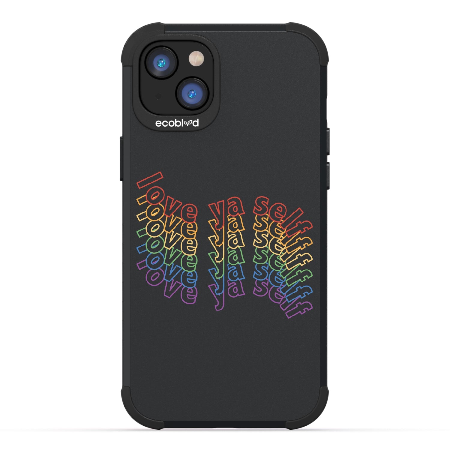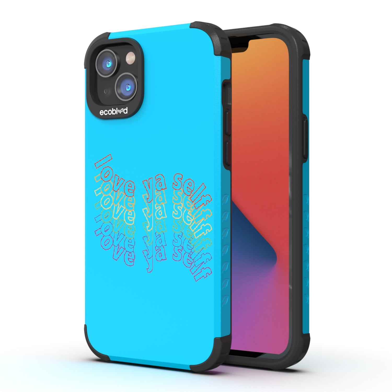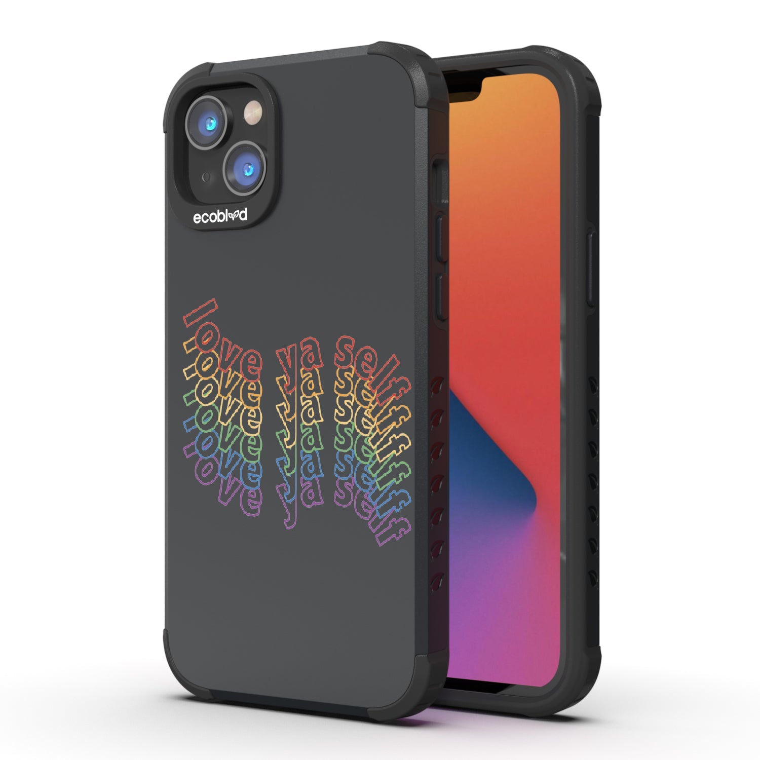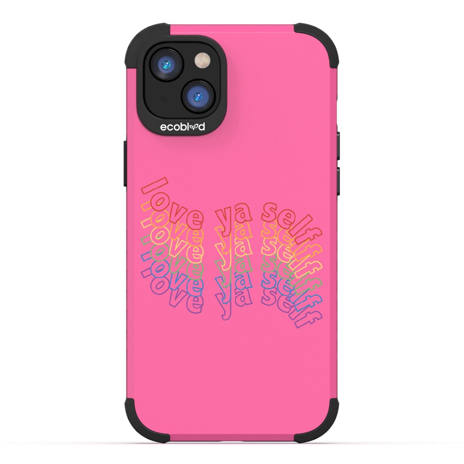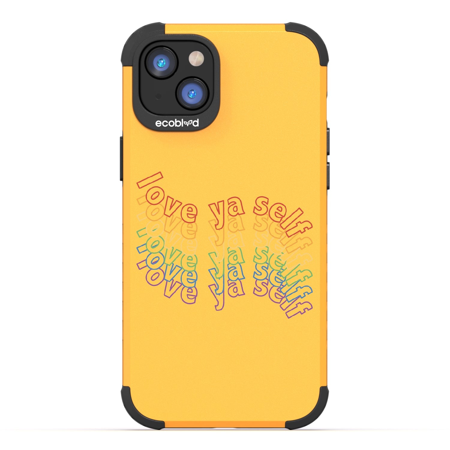 Show off your love for yourself and your colorful personality with the Love Ya Self design on our Mojave rugged and compostable iPhone 16e, iPhone 14, and iPhone 13 phone case, featuring rainbow block lettering that's sure to add a touch of self-love and positivity to your daily life as a playful reminder always to put yourself first. Available in five bold colorways: Midnight Black, Cascade Blue, Foliage Green, Illuminating Yellow, and Wildflower Pink.