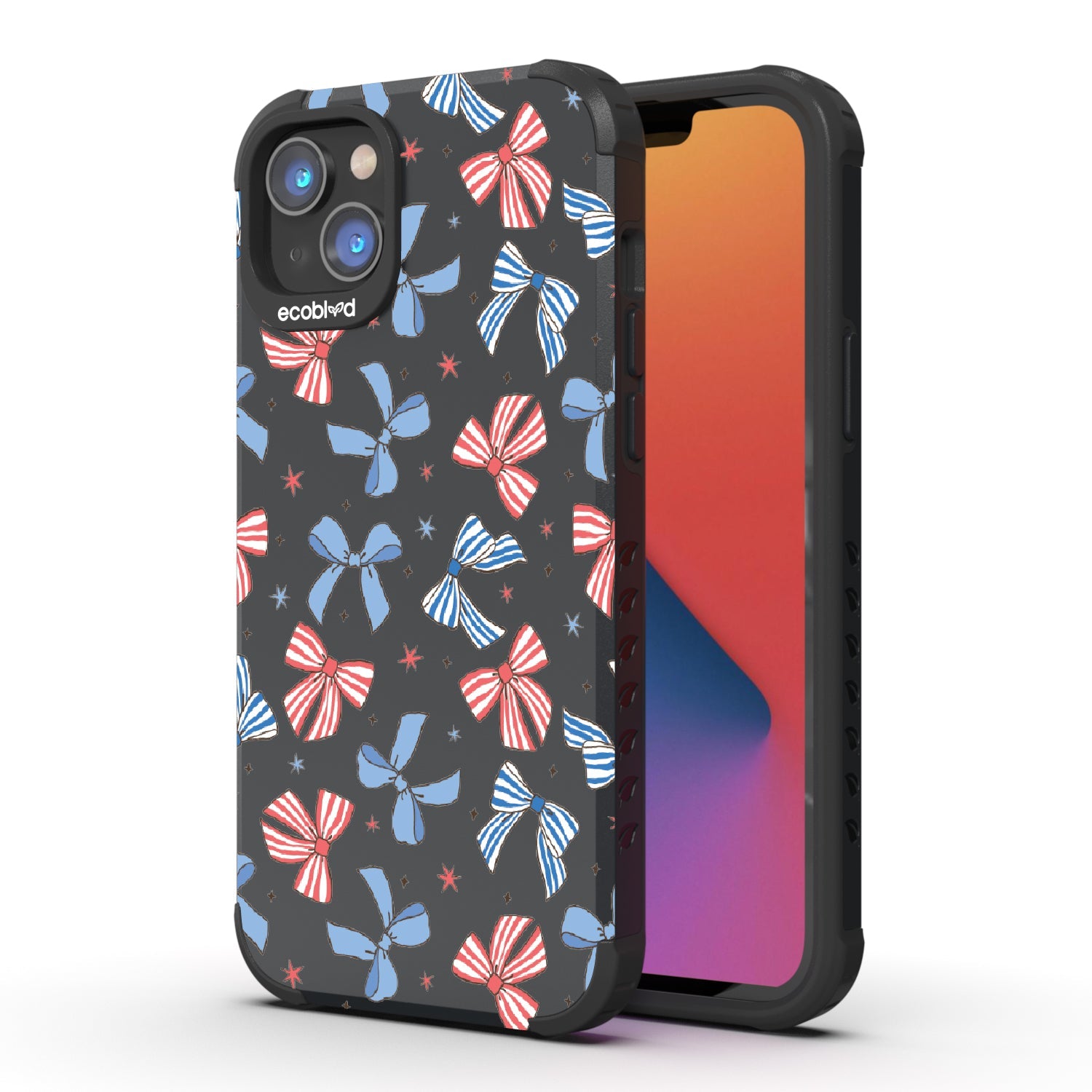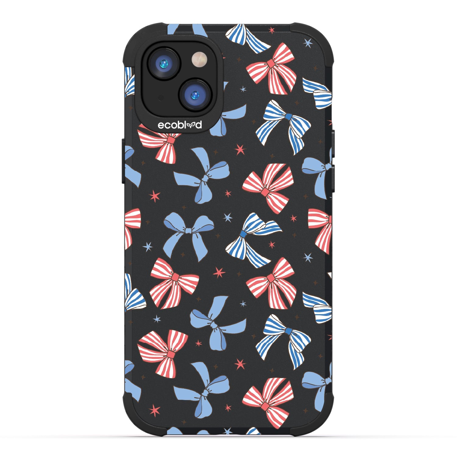 America the bow-tiful! The Miss Americana design on our Mojave rugged iPhone 16e, iPhone 14, and iPhone 13 phone case crowns your phone with patriotic flair. With red, white, and blue bows, this coquette phone case design turns your phone into the belle of the Americana ball.