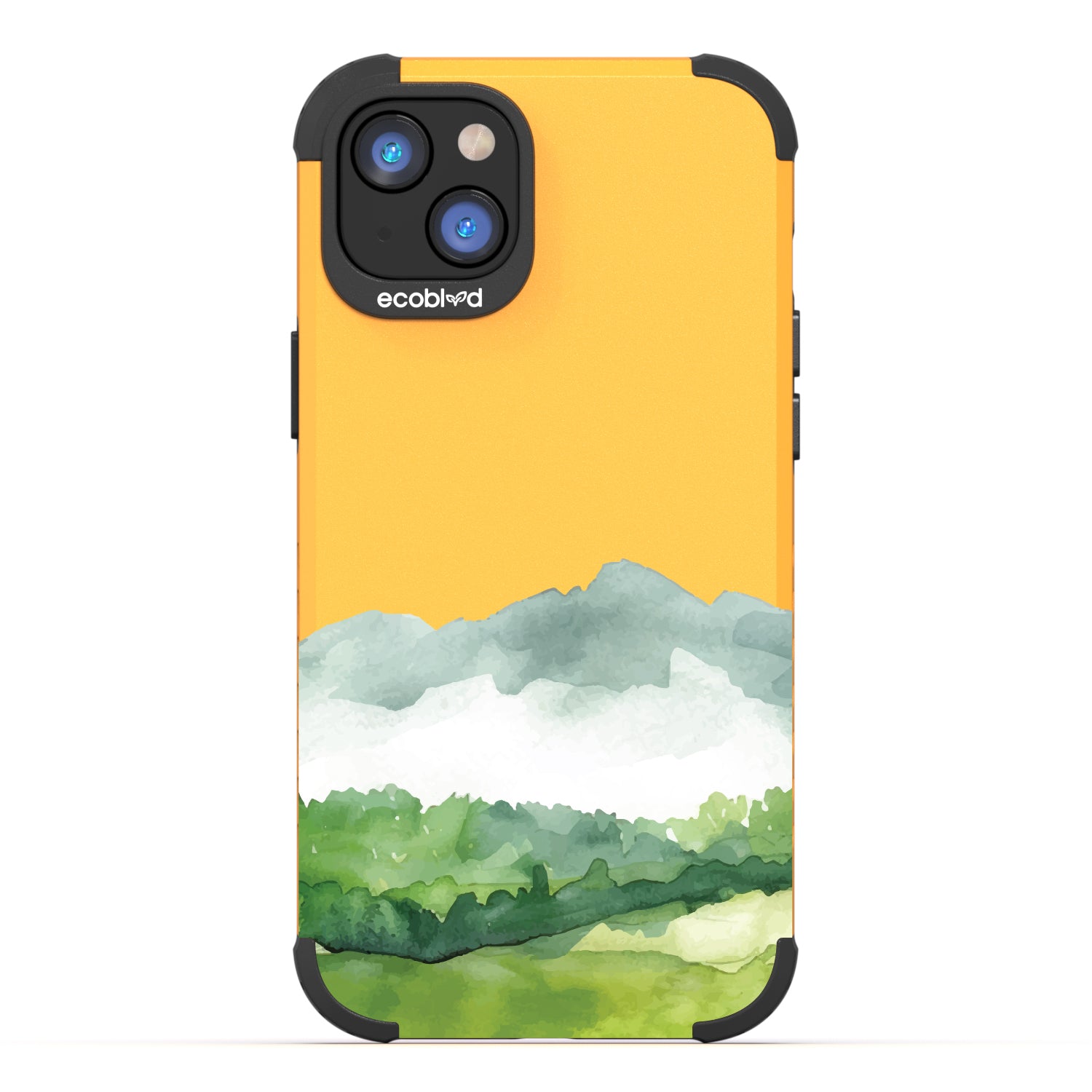 The view is endless, just like the possibilities. The Open Horizon design on our Mojave rugged and compostable iPhone 16e, iPhone 14, and iPhone 13 case layers soft washes of green and misty blue, stretching like rolling hills beneath an open sky. The watercolor effect creates a serene, boundless landscape, a quiet reminder that there’s always more to explore.