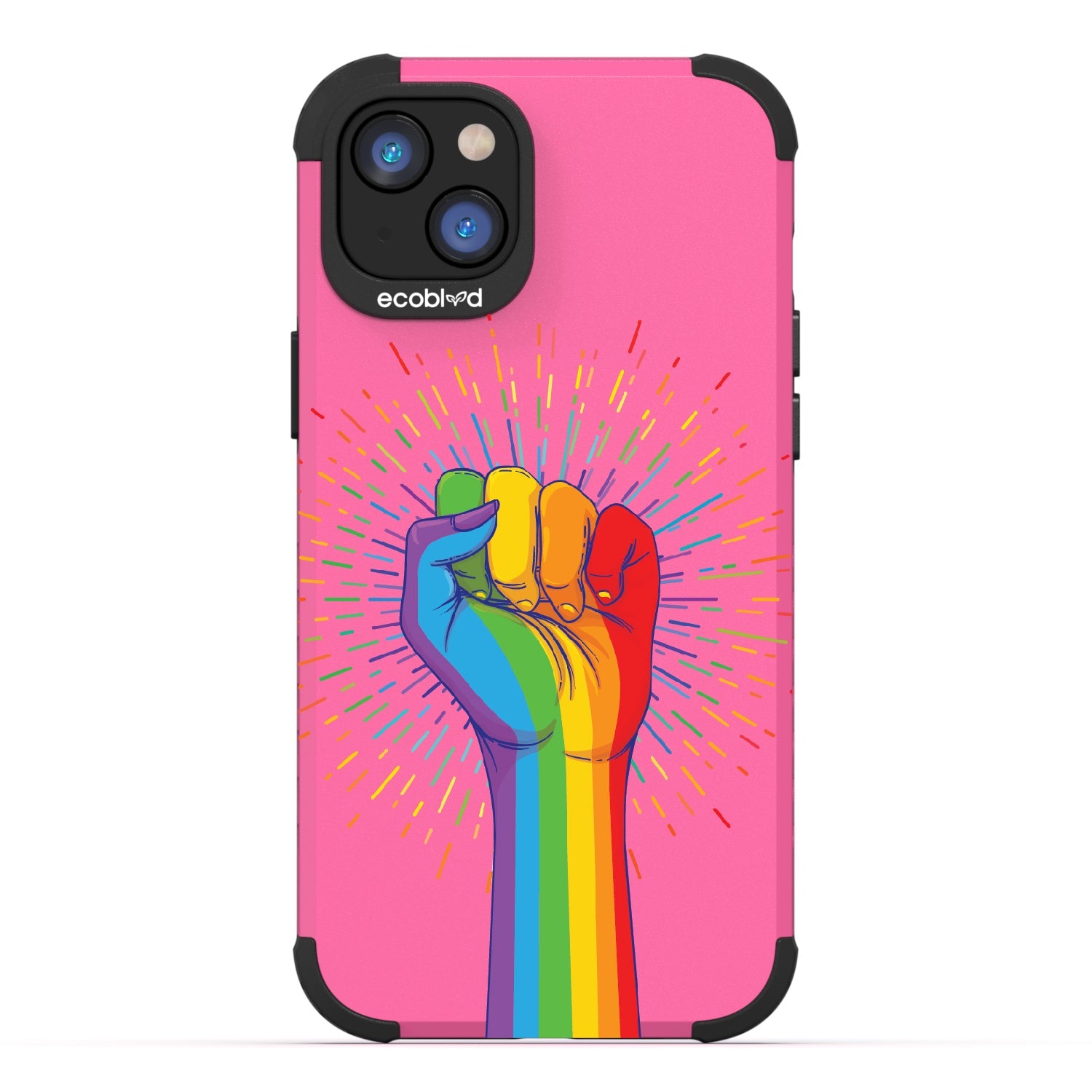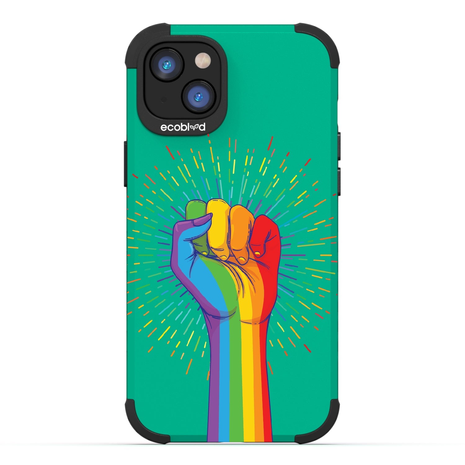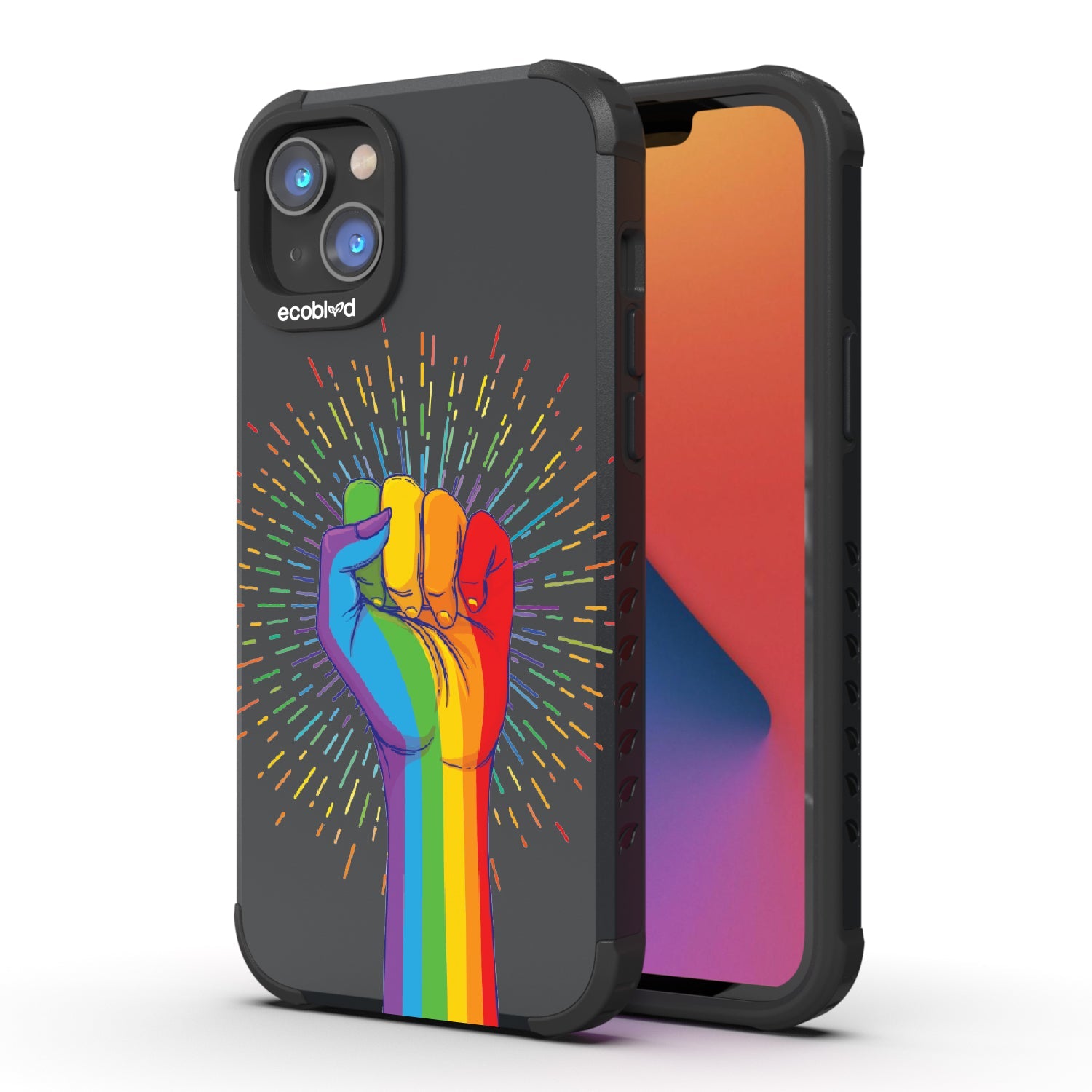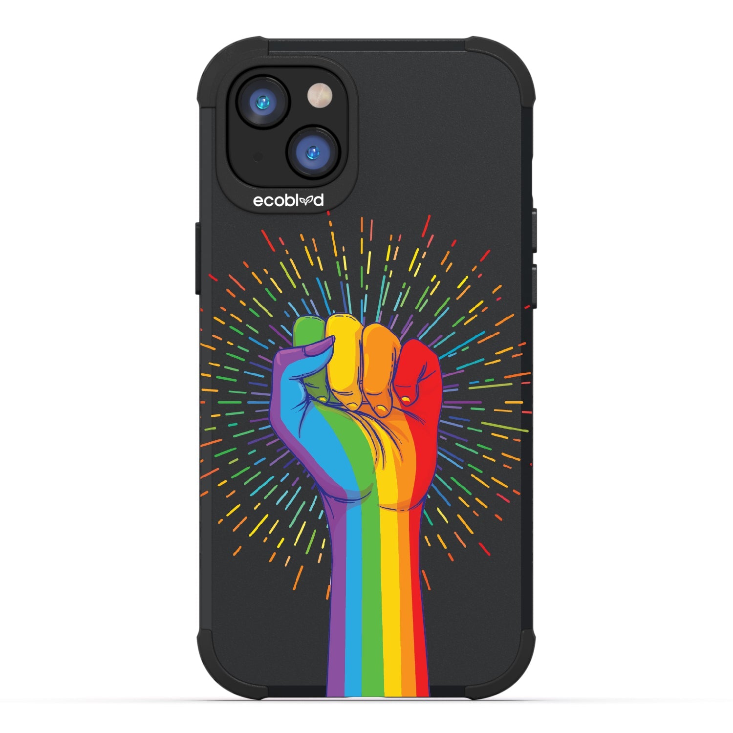 Stand tall, stand proud and unleash the power within with this remarkable design. The Rise With Pride design on our Mojave rugged and compostable iPhone 16e, iPhone 14, and iPhone 13 case showcases a raised fist enveloped in the bold hues of the rainbow. It represents the collective strength and unwavering determination of the LGBTQ+ community to rise above challenges and advocate for equality. Let it ignite your spirit and serve as a symbol of empowerment, unity, and resilience. Let this design inspire you to rise above and make your voice heard as we march together toward a future filled with equality and justice.