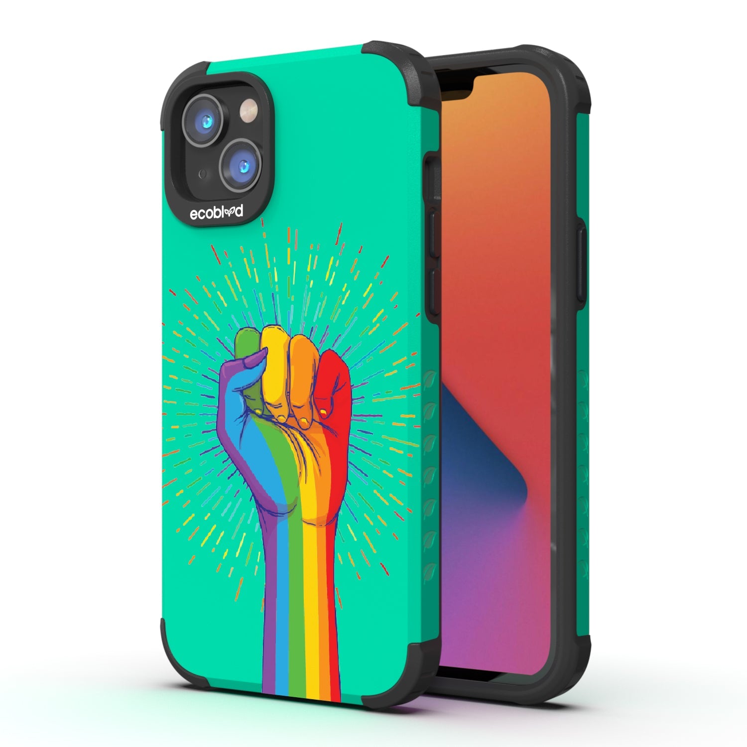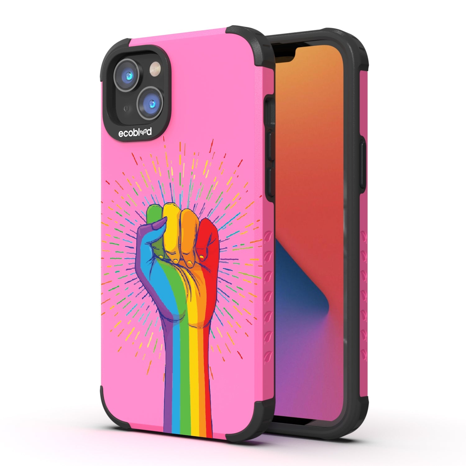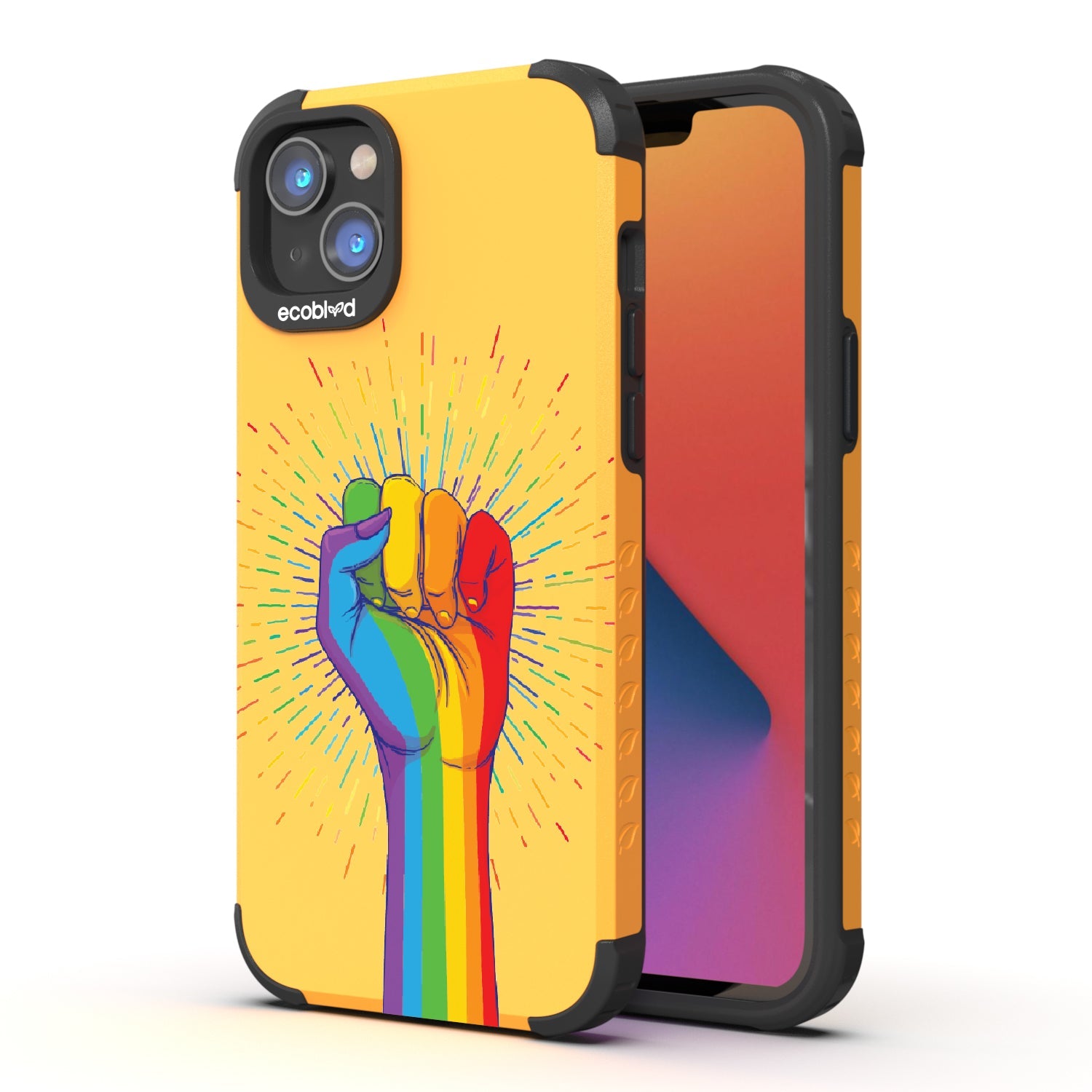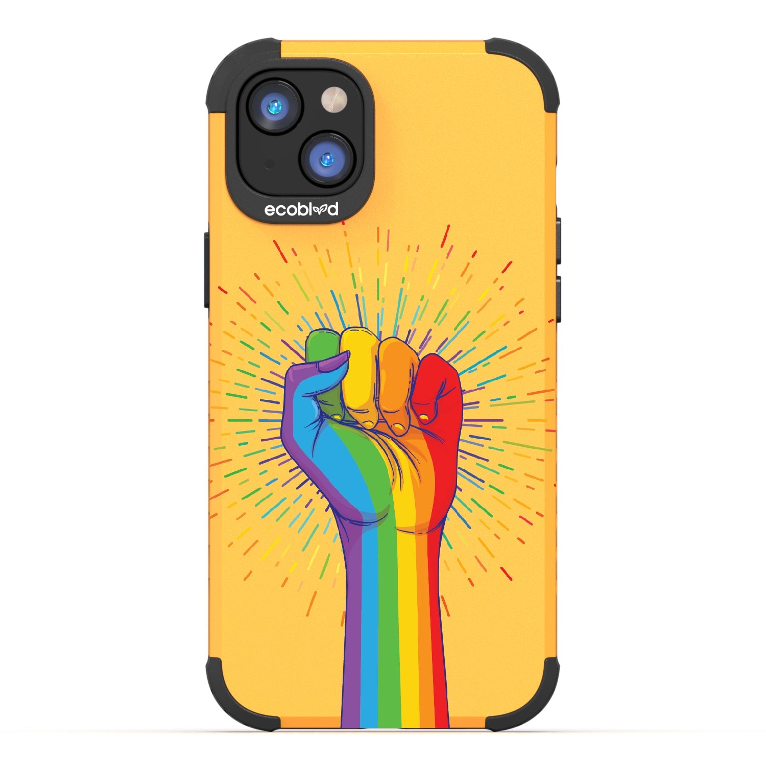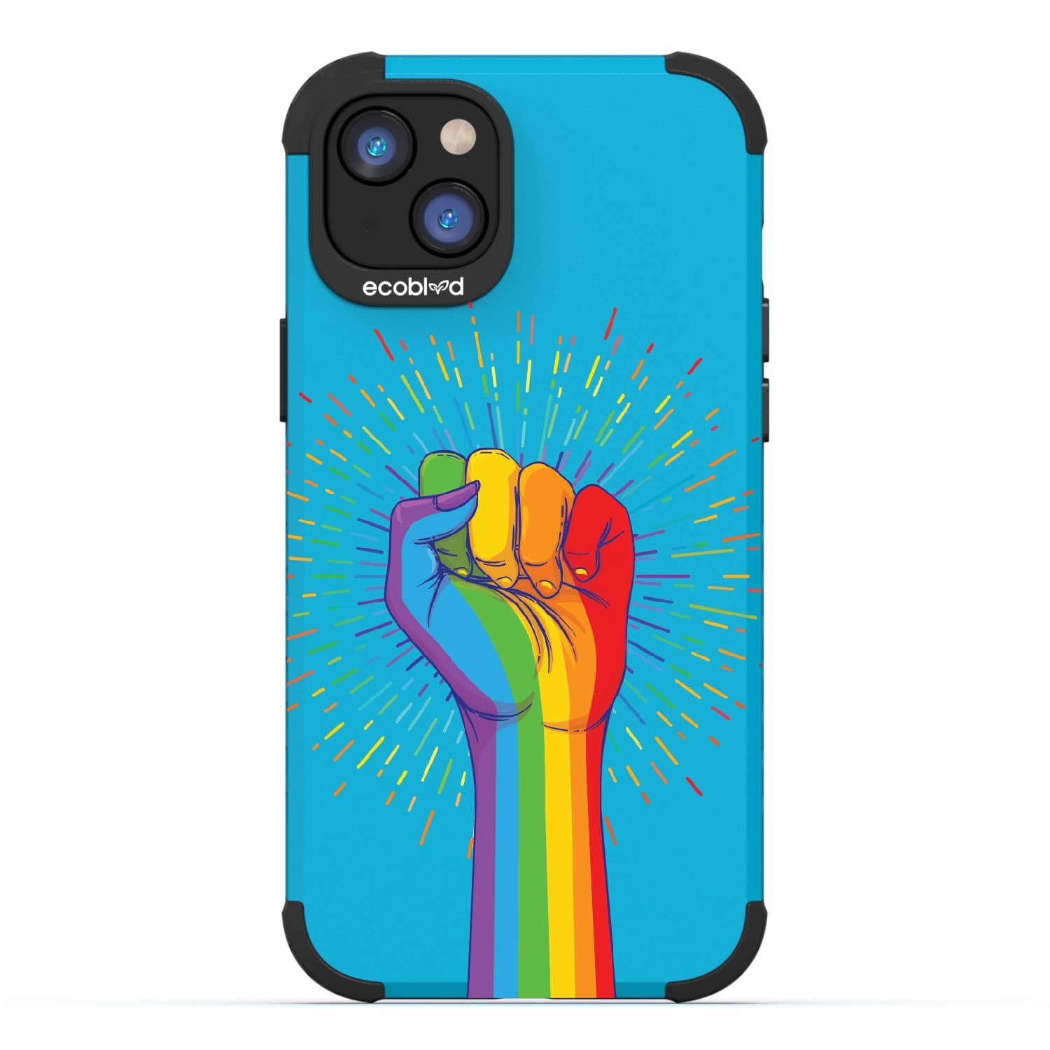 Stand tall, stand proud and unleash the power within with this remarkable design. The Rise With Pride design on our Mojave rugged and compostable iPhone 16e, iPhone 14, and iPhone 13 case showcases a raised fist enveloped in the bold hues of the rainbow. It represents the collective strength and unwavering determination of the LGBTQ+ community to rise above challenges and advocate for equality. Let it ignite your spirit and serve as a symbol of empowerment, unity, and resilience. Let this design inspire you to rise above and make your voice heard as we march together toward a future filled with equality and justice.