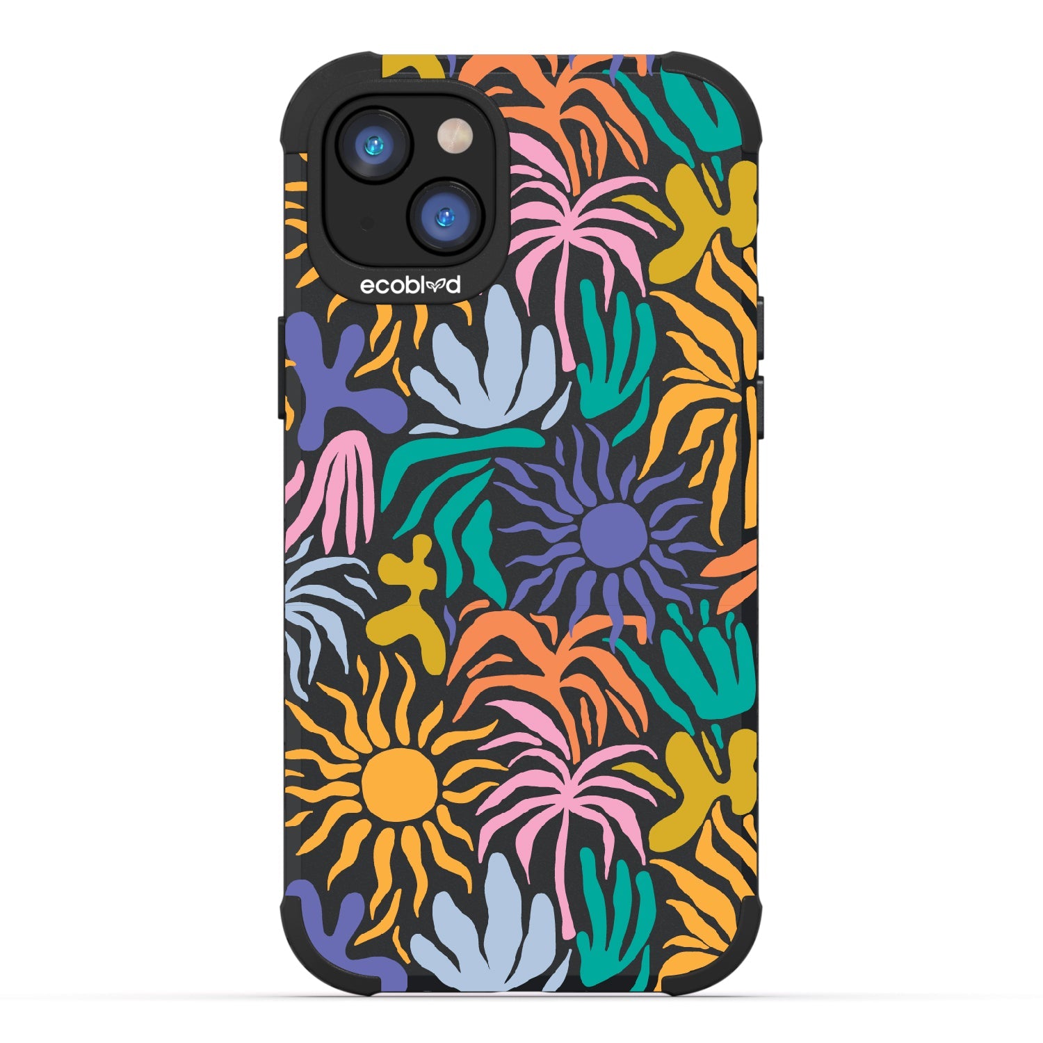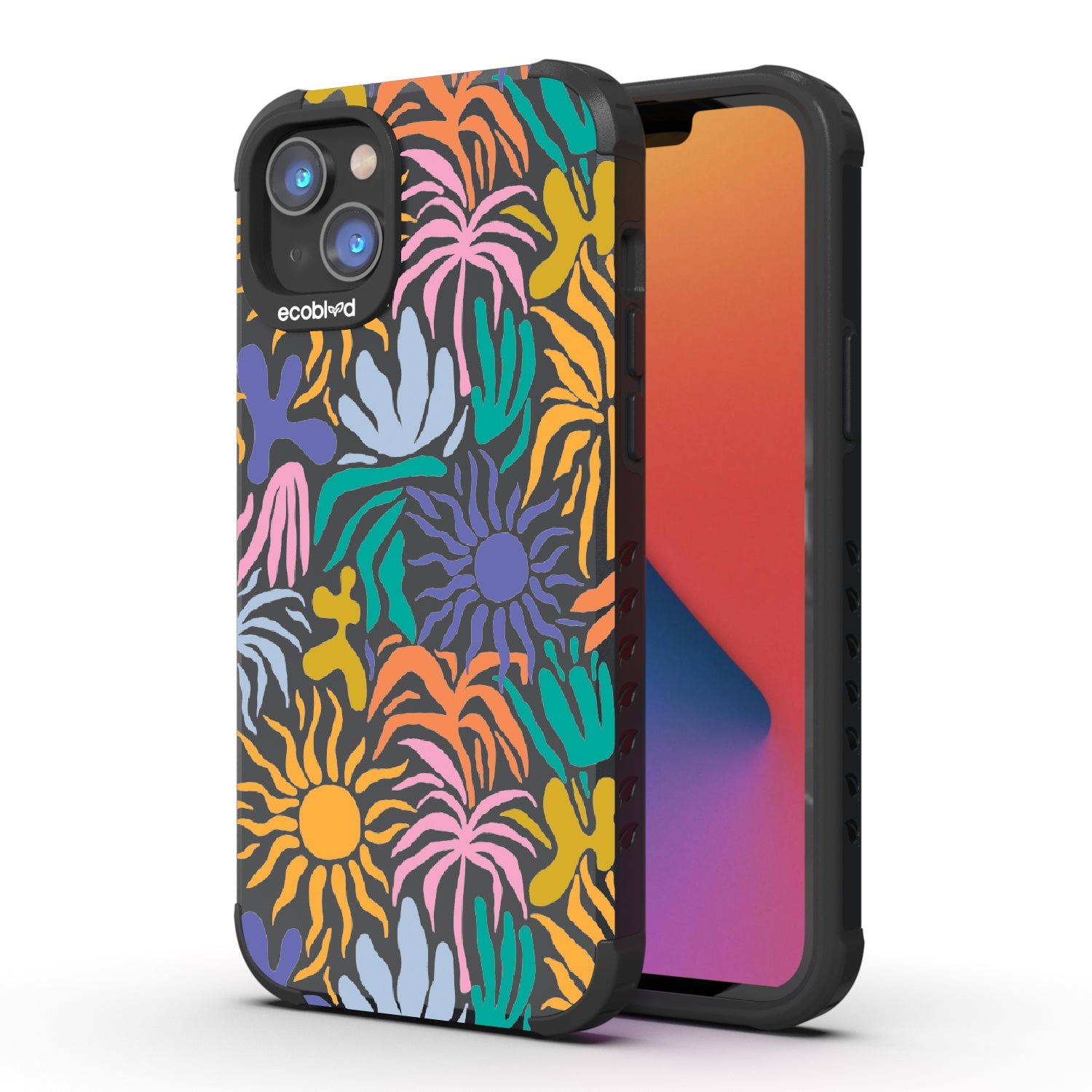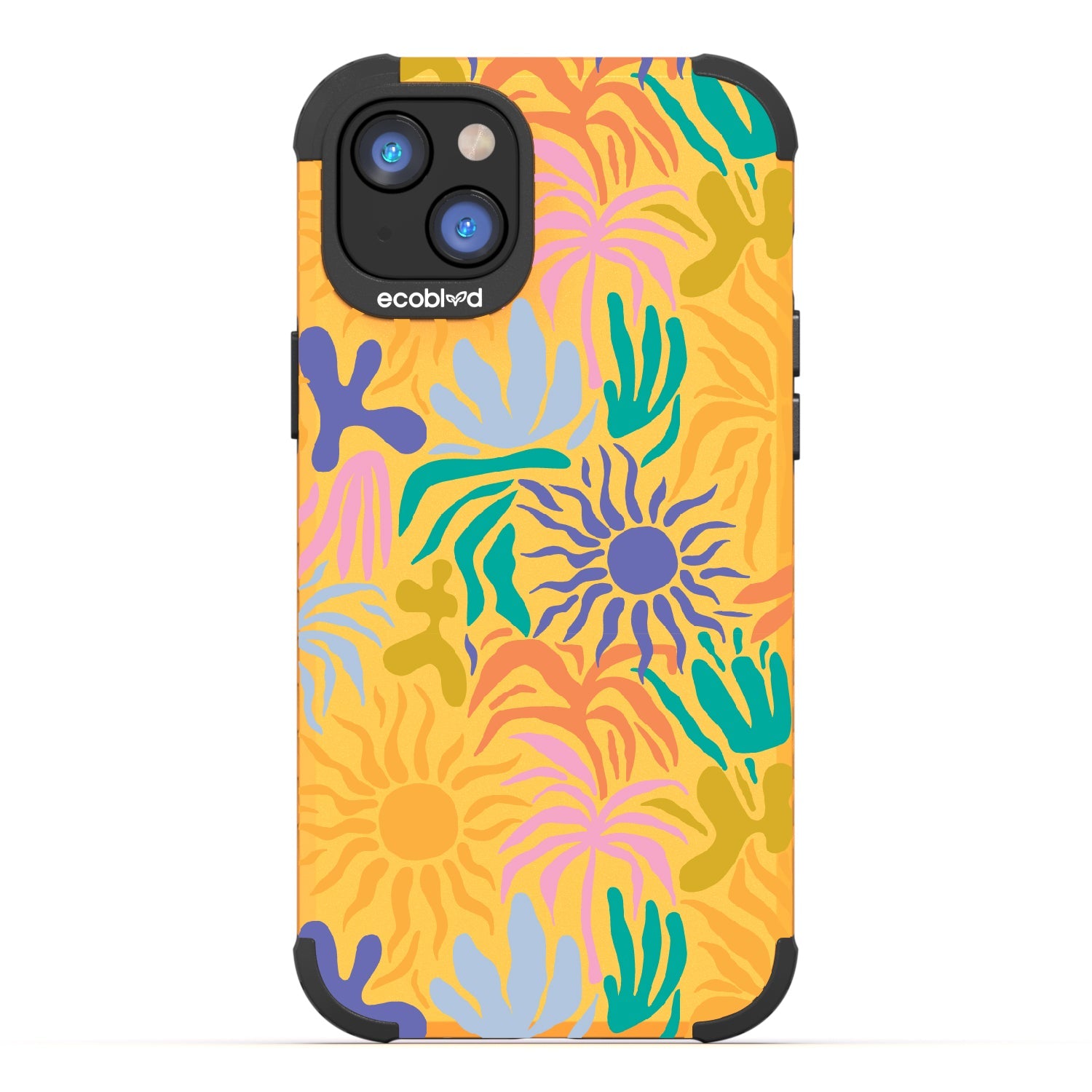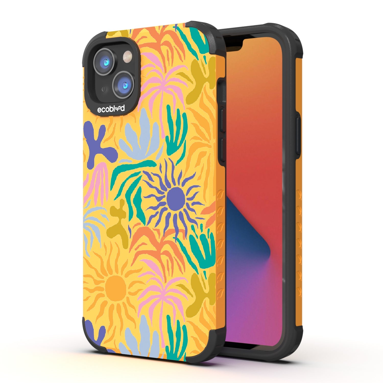 Set your phone aglow with our bright Sun-Kissed design on our Mojave rugged and compostable iPhone 16e, iPhone 14, and iPhone 13 case. With its sun-shaped bud and colorful petals, this device becomes a moving canvas, radiating joy and positivity. This design embodies the warmth and vibrancy of sunflowers, capturing the essence of sun-kissed days and infusing every moment with a cheerful and uplifting energy.