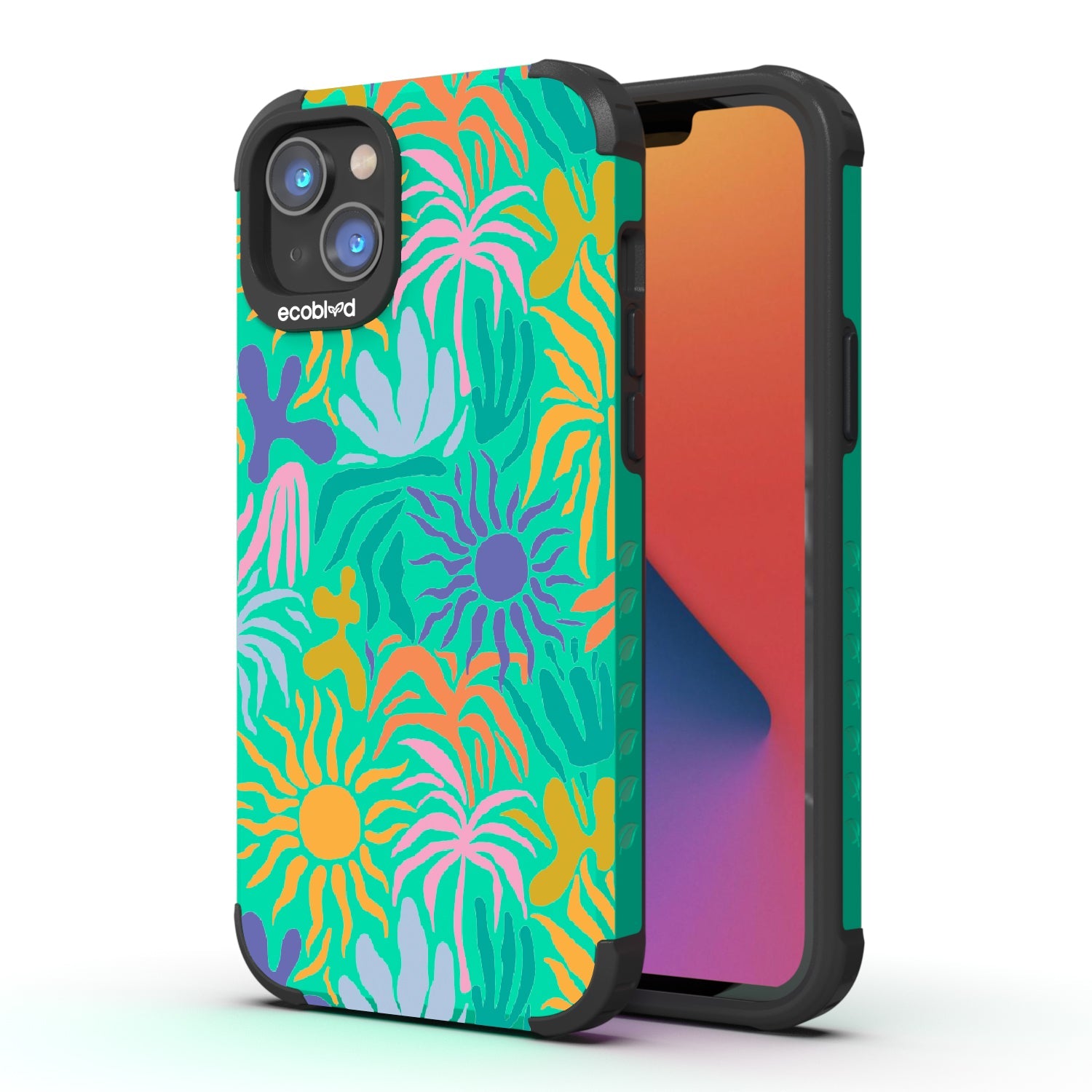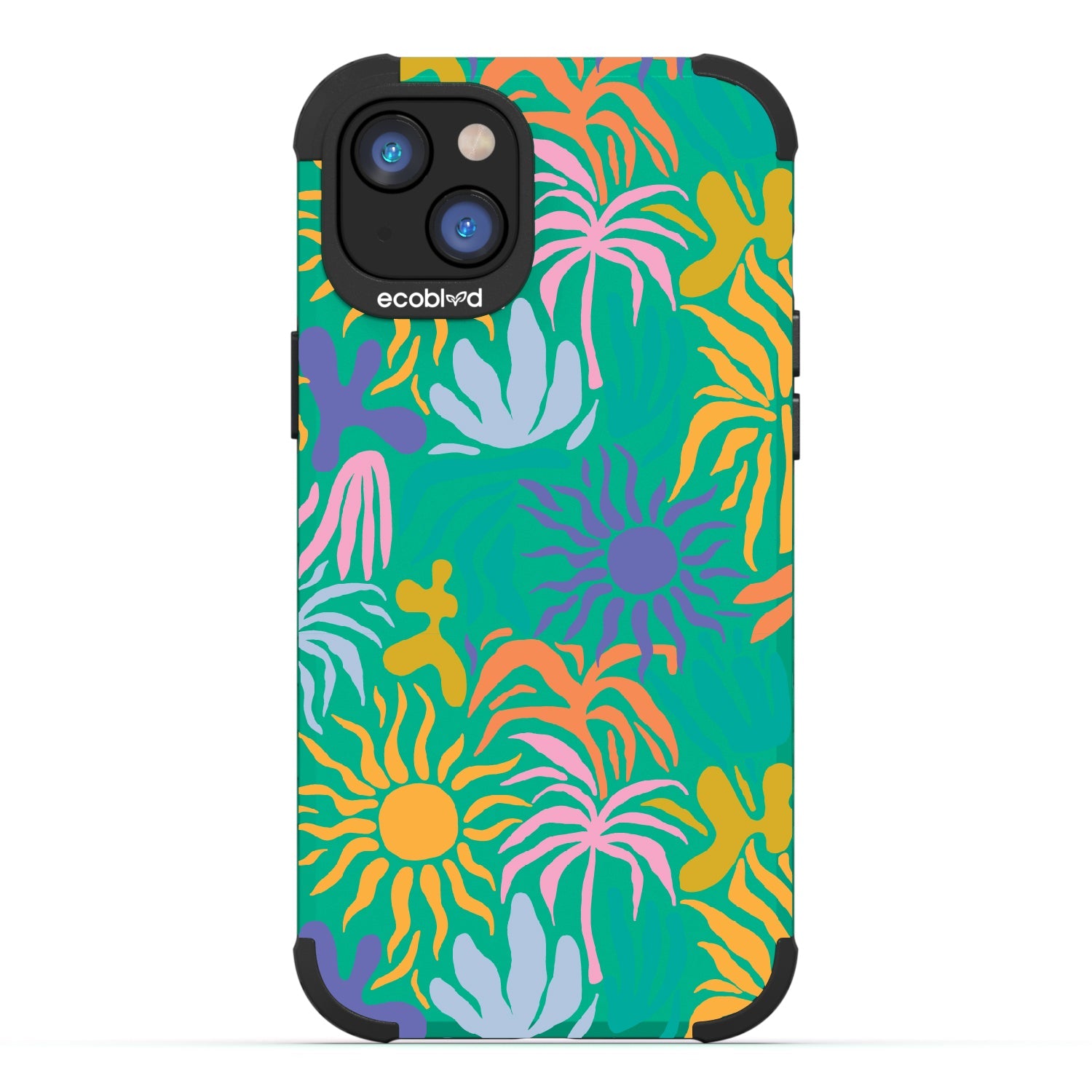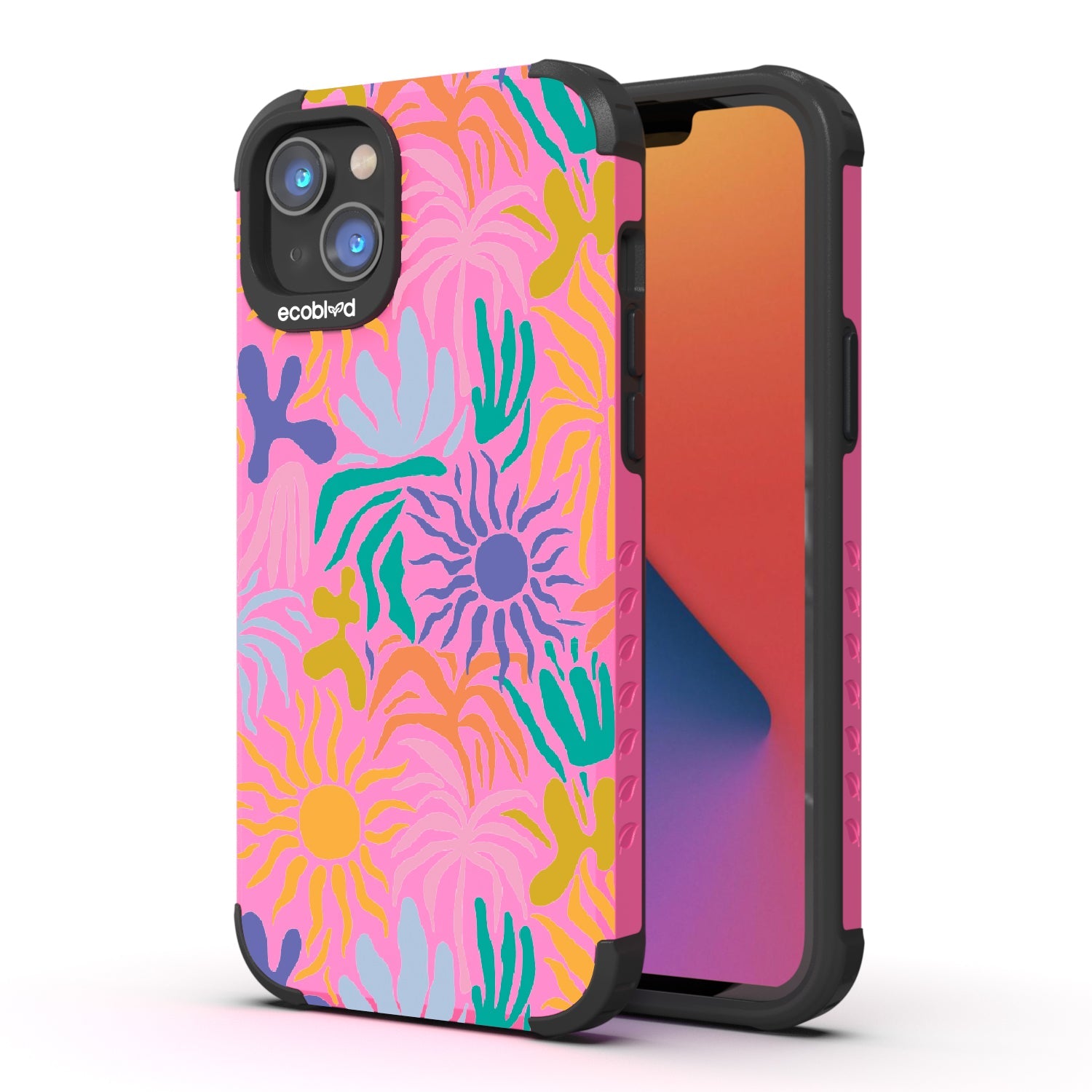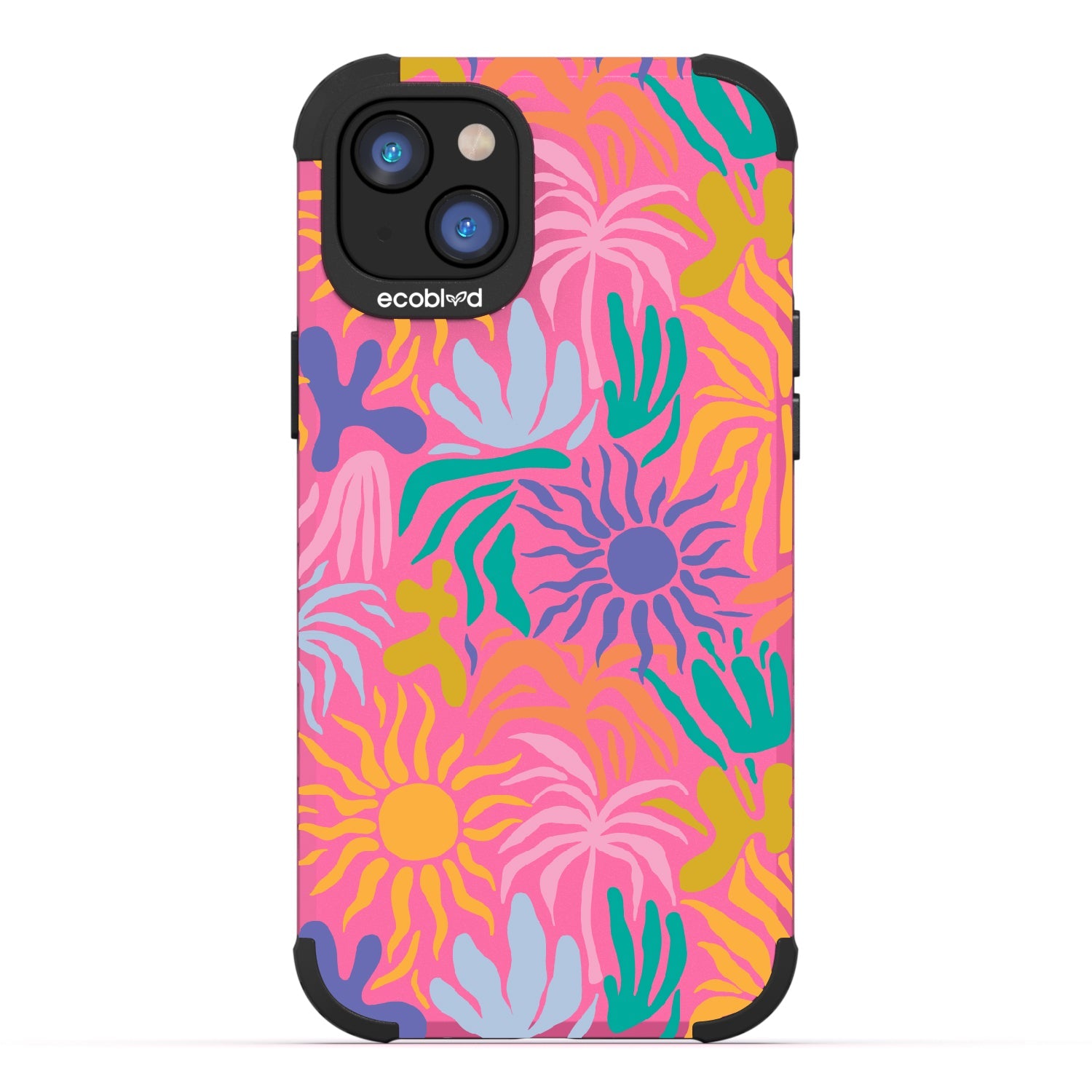 Set your phone aglow with our bright Sun-Kissed design on our Mojave rugged and compostable iPhone 16e, iPhone 14, and iPhone 13 case. With its sun-shaped bud and colorful petals, this device becomes a moving canvas, radiating joy and positivity. This design embodies the warmth and vibrancy of sunflowers, capturing the essence of sun-kissed days and infusing every moment with a cheerful and uplifting energy.