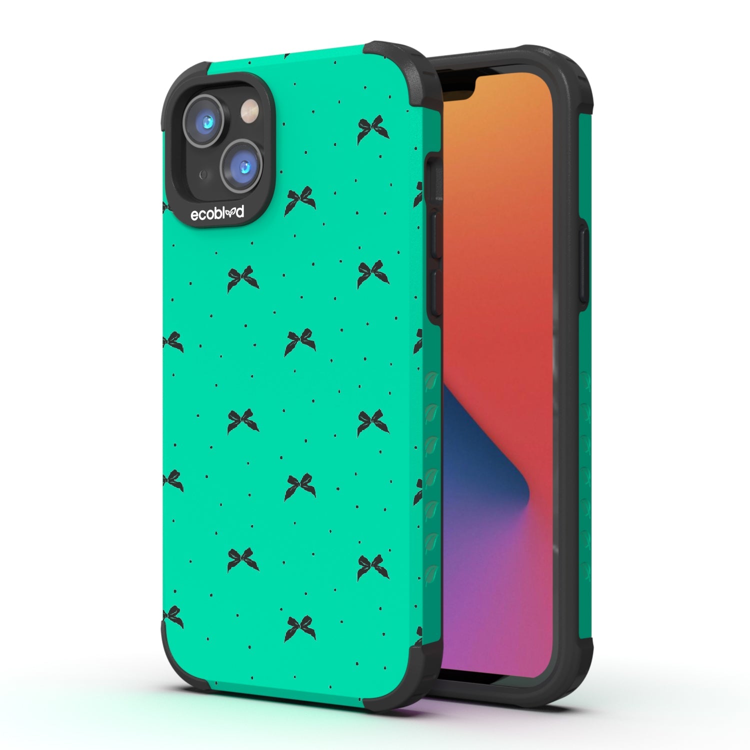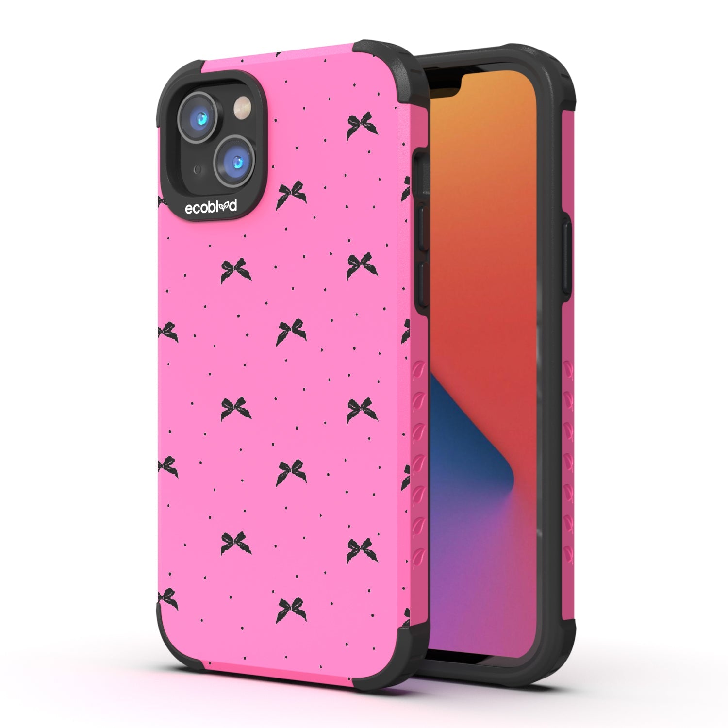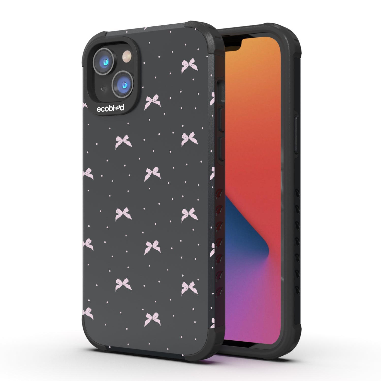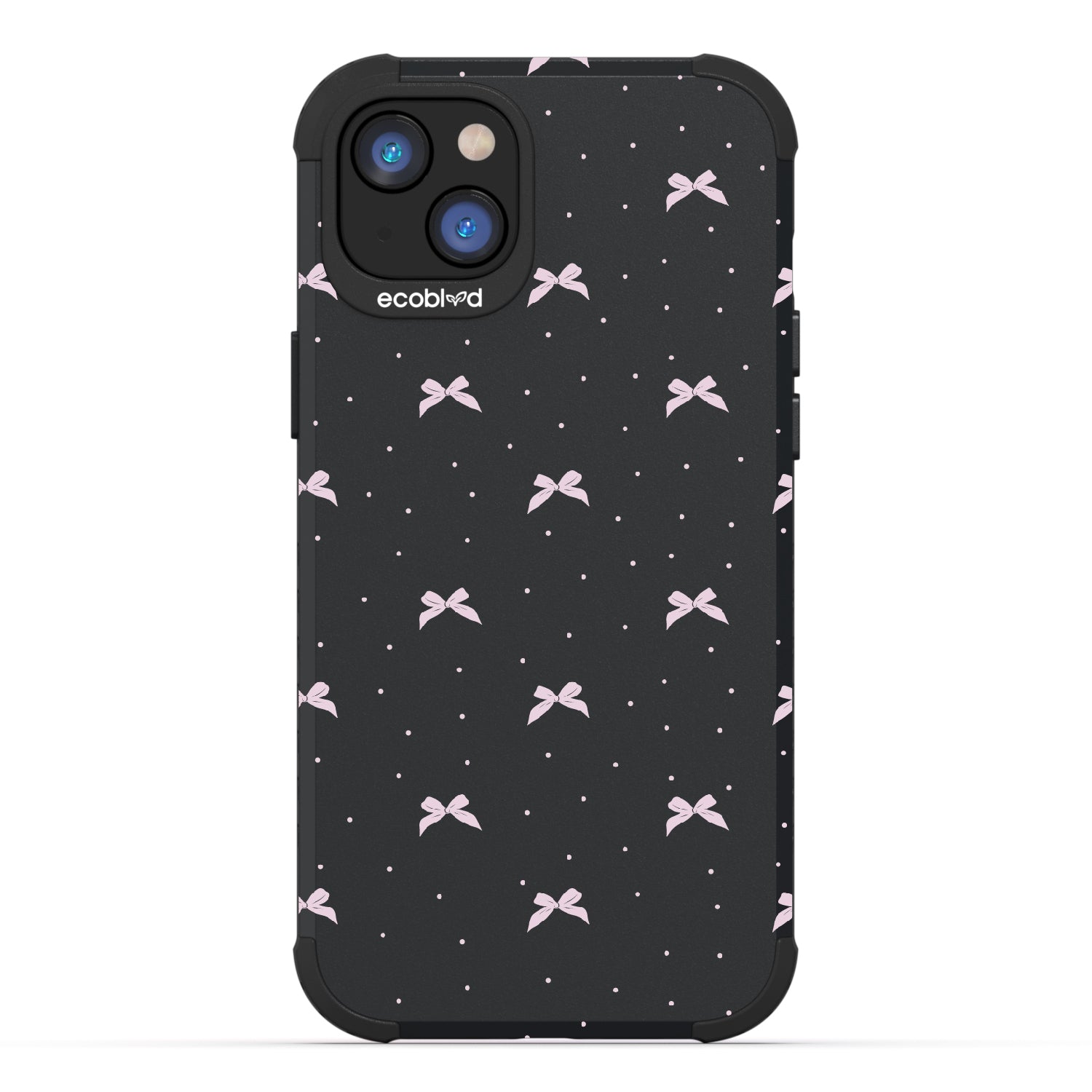 Take a Bow and hold the applause with this delightful coquette design on our Mojave rugged and compostable iPhone 16e, iPhone 14, and iPhone 13 phone case. Tiny bow ties dance across the surface, ready for their spotlight. Whether dressing up or down, let each bow add a dash of flair and frills to your outfits.