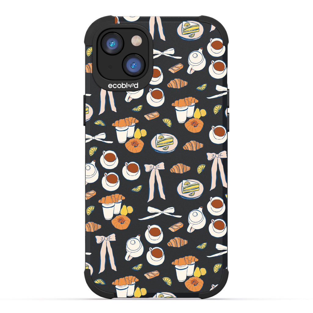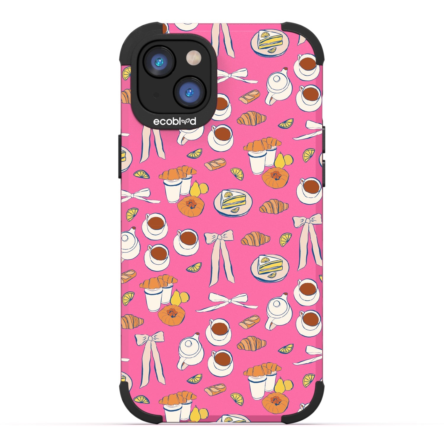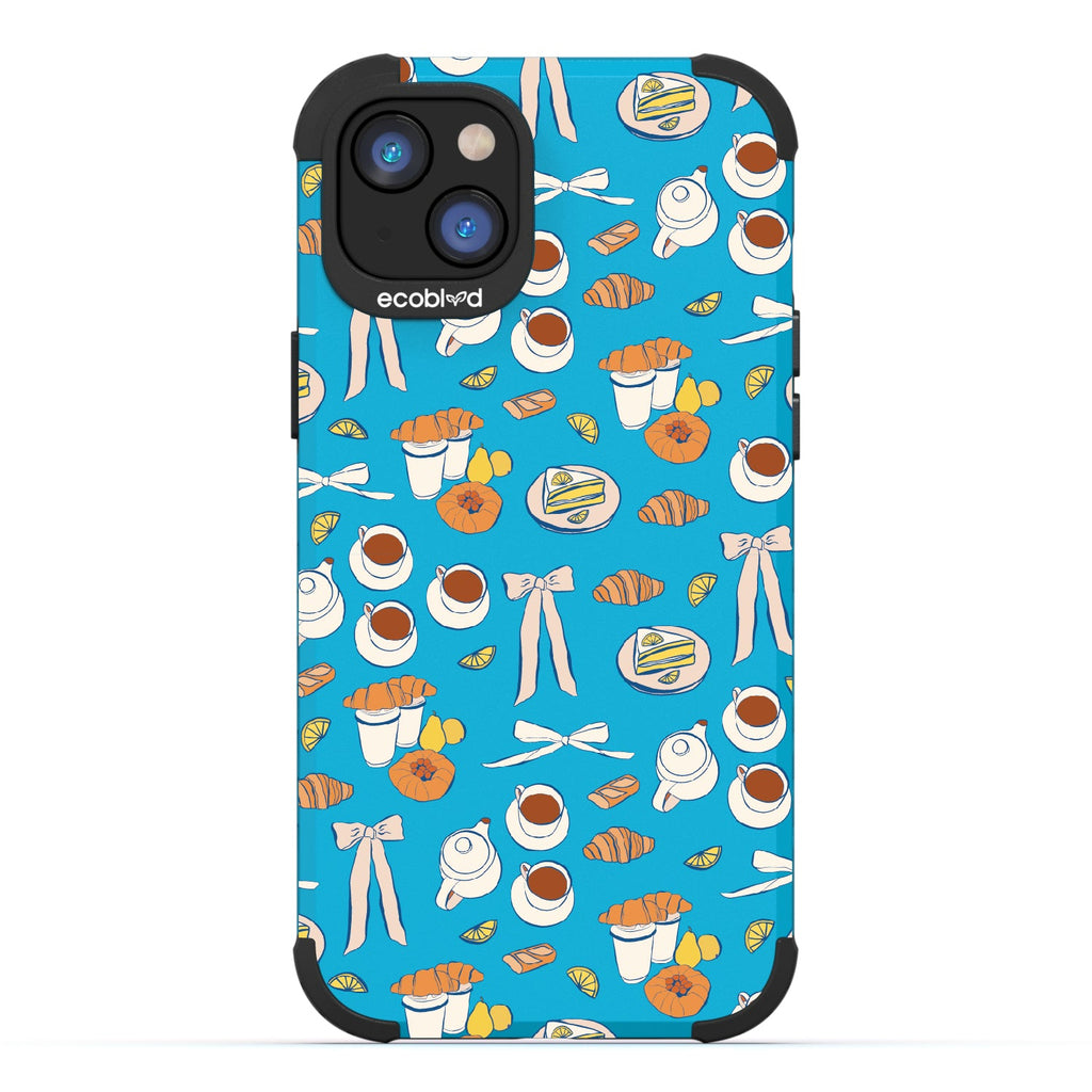 Tea time is the new happy hour. This design on our Mojave rugged and compostable iPhone 16e, iPhone 14, and iPhone 13 case combines whimsical teacups, dainty bows, and sweet pastel pastries in style as delightful as a perfect afternoon break. A tribute to making time for yourself with a touch of elegance.