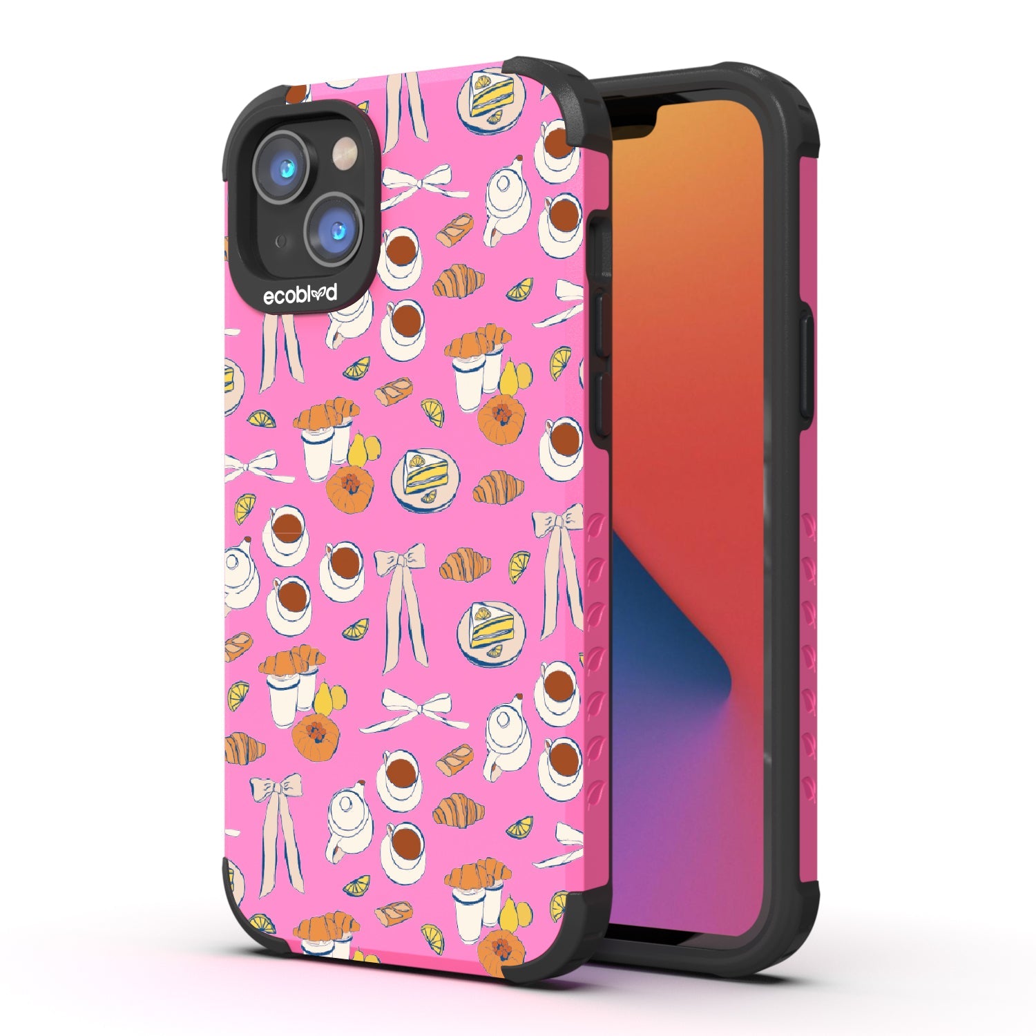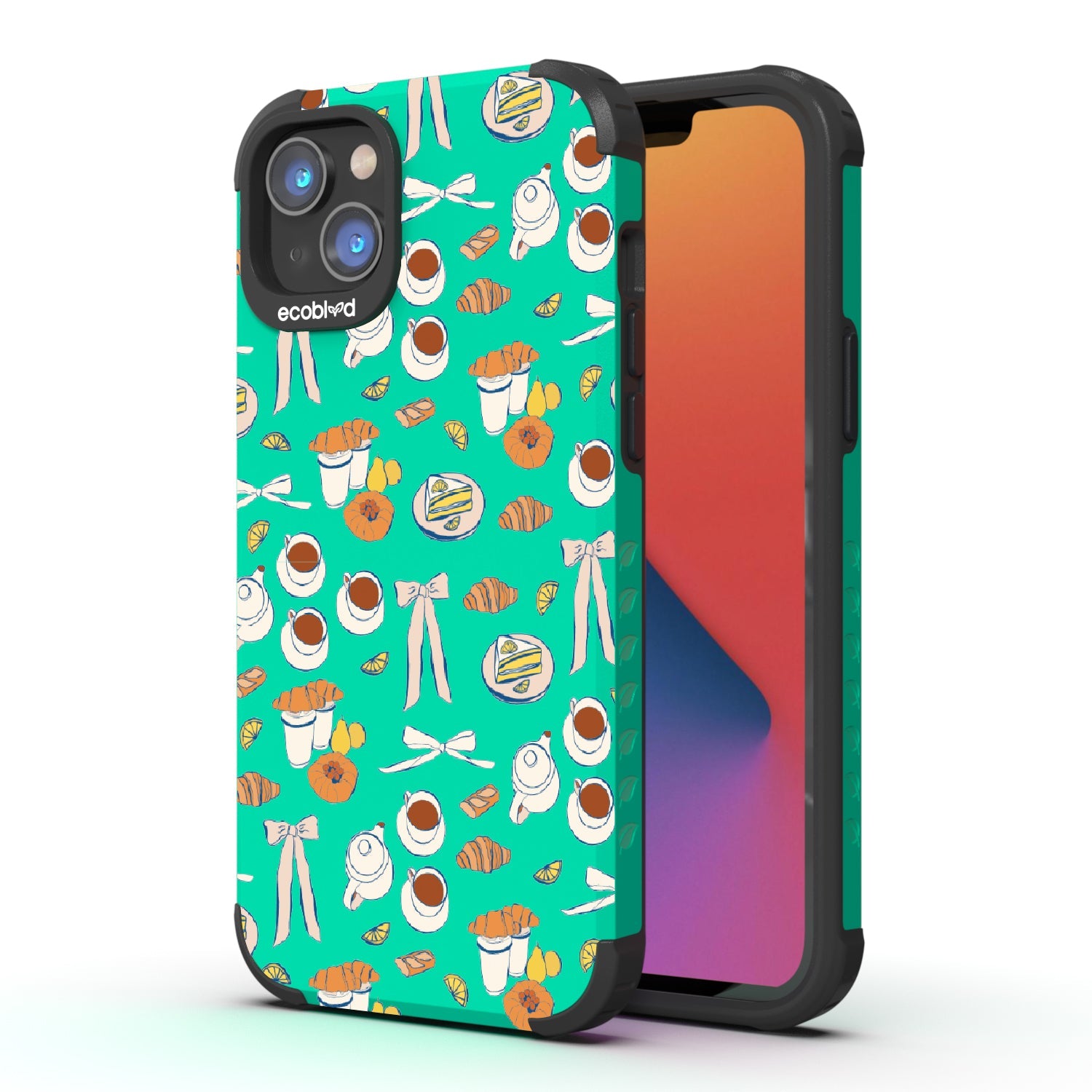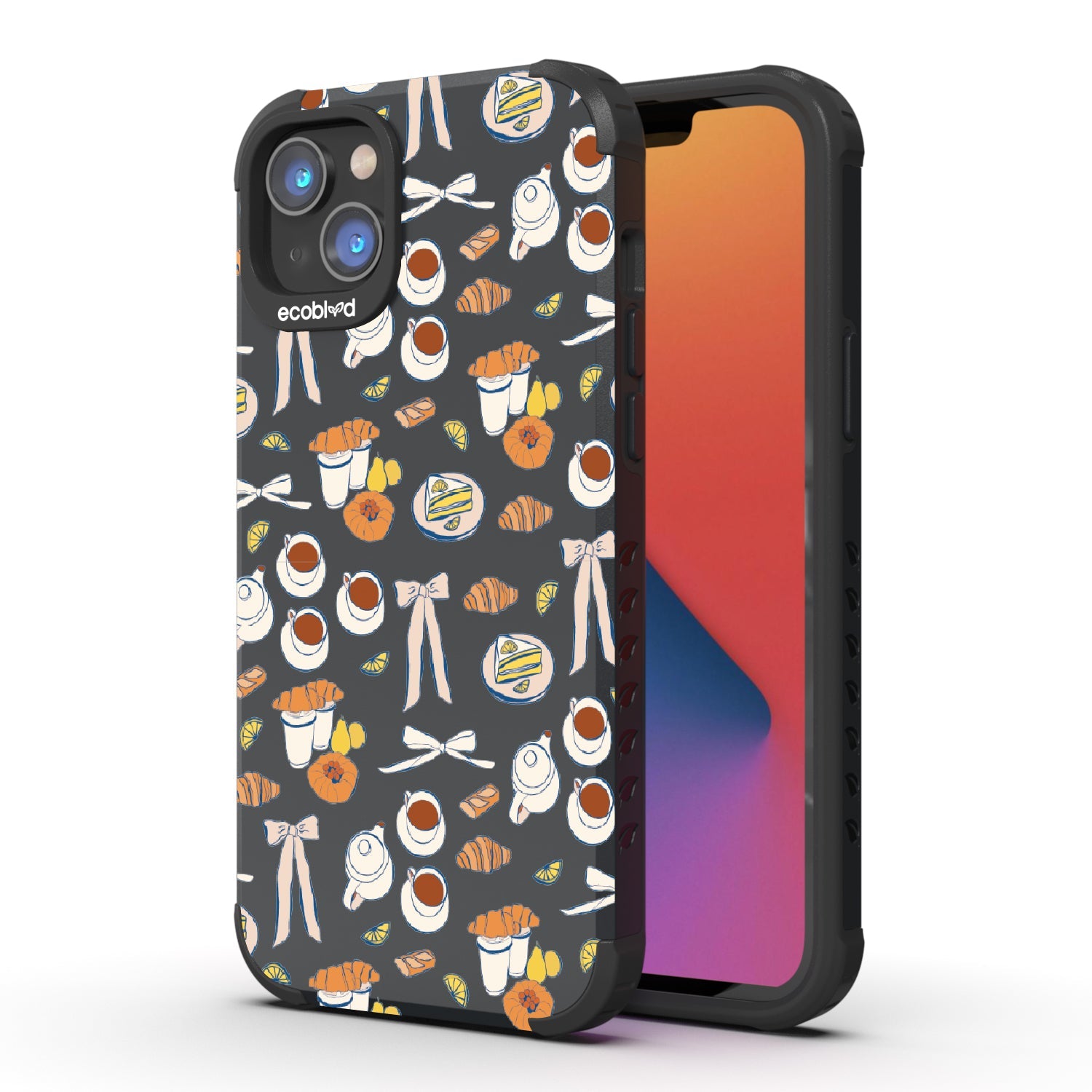 Tea time is the new happy hour. This design on our Mojave rugged and compostable iPhone 16e, iPhone 14, and iPhone 13 case combines whimsical teacups, dainty bows, and sweet pastel pastries in style as delightful as a perfect afternoon break. A tribute to making time for yourself with a touch of elegance.