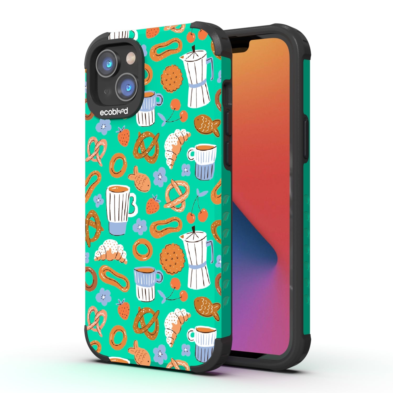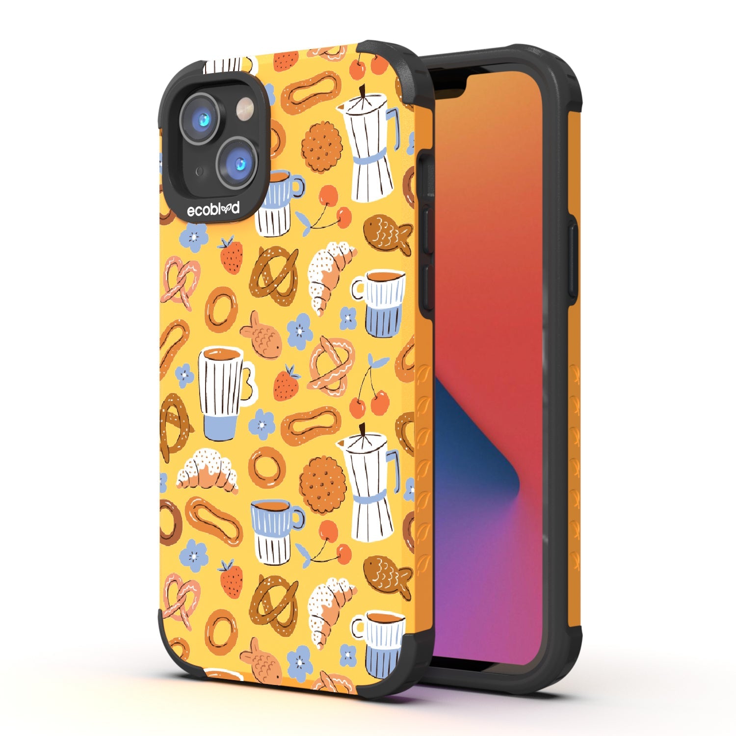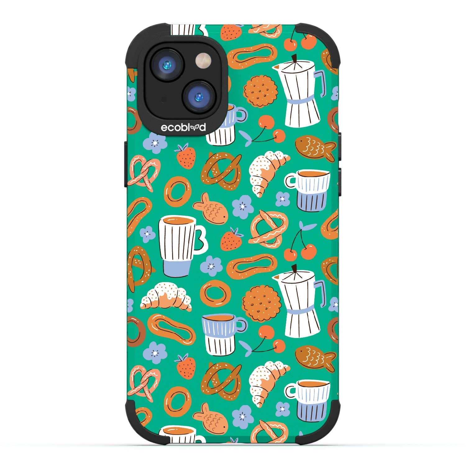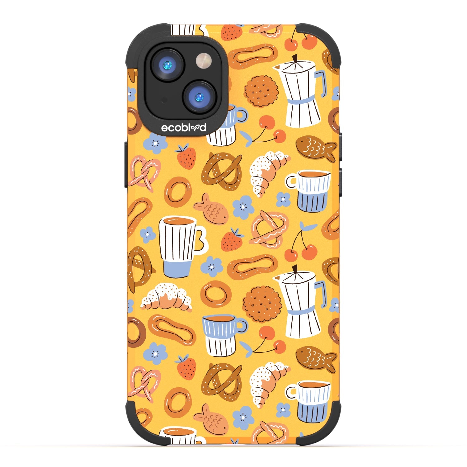 Welcome to The Breakfast Club, where looks are served. This design on our Mojave rugged and compostable iPhone 16e, iPhone 14, and iPhone 13 case brings together all your favorite brunch essentials—croissants, coffee, and pretzels. It’s the perfect club to kickstart your day, full of flavor, fun, and flair.