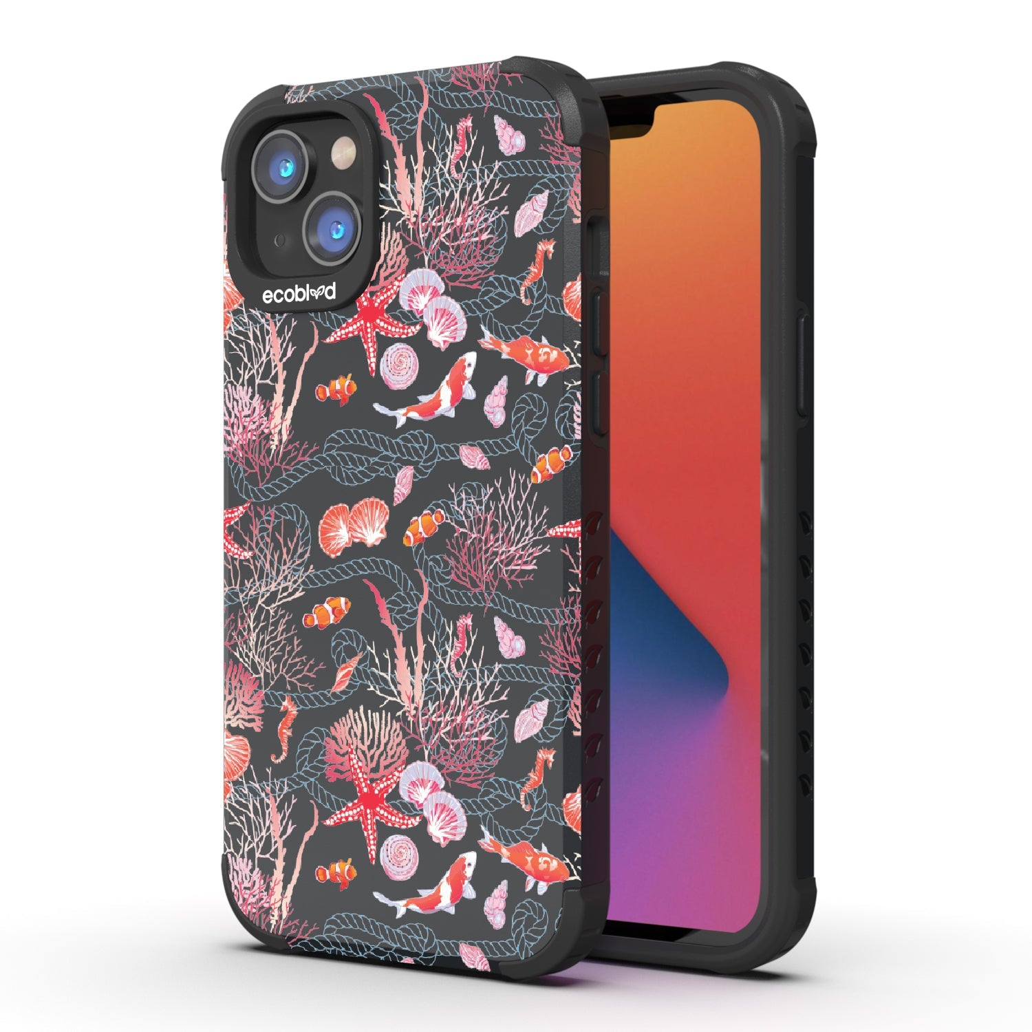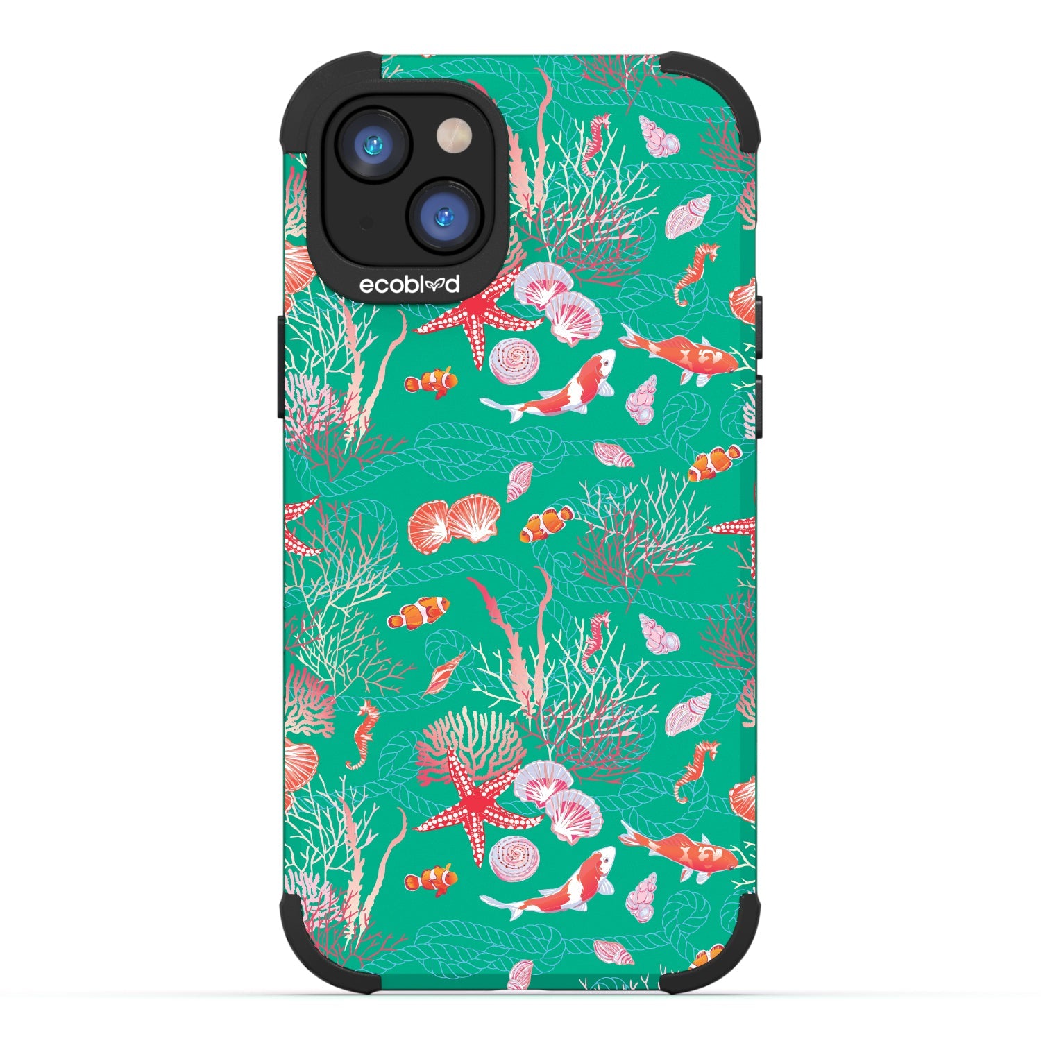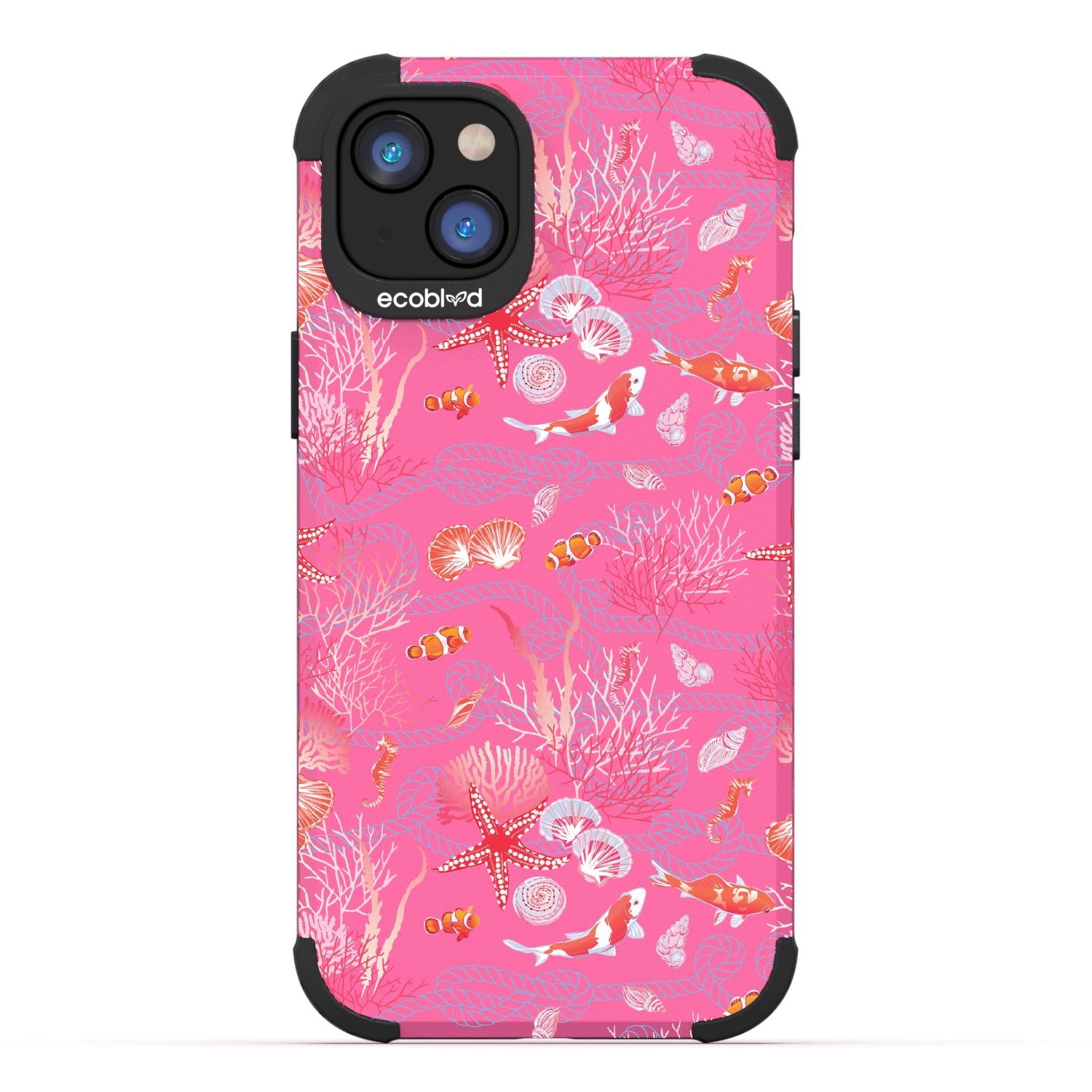 The coral is always brighter, Under the Sea! With this design our Mojave rugged and compostable iPhone 16e, iPhone 14, and iPhone 13 phone case, you'll see, your phone’s full of glee, under the sea! Coral and critters, they all come together, swirling in hues, pinks, and blues, where life’s better wetter, take it from me! Your phone will be dancing, twirling, and prancing, carrying the magic of the ocean so fancy! So let your phone be, full of joy and glee, under the sea.