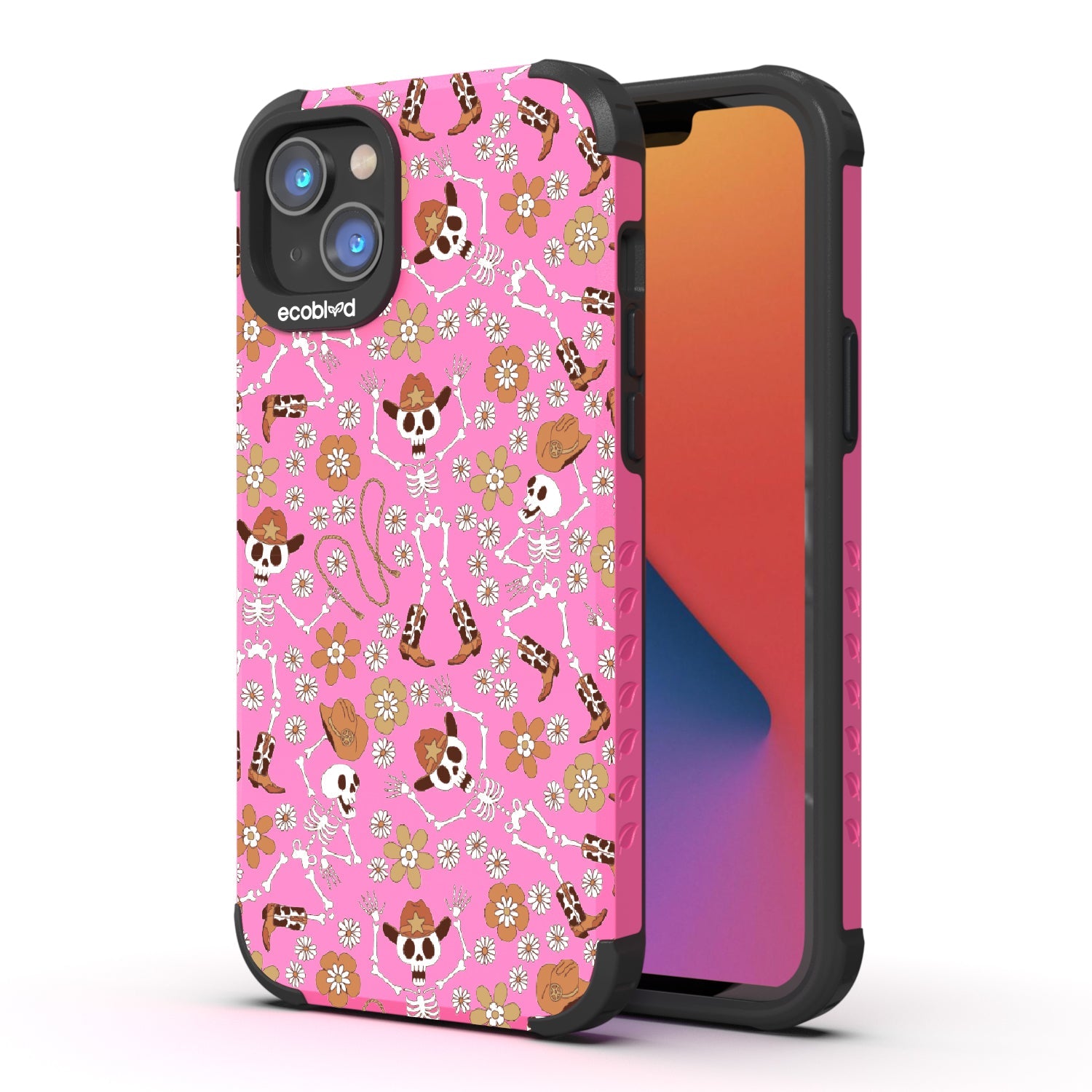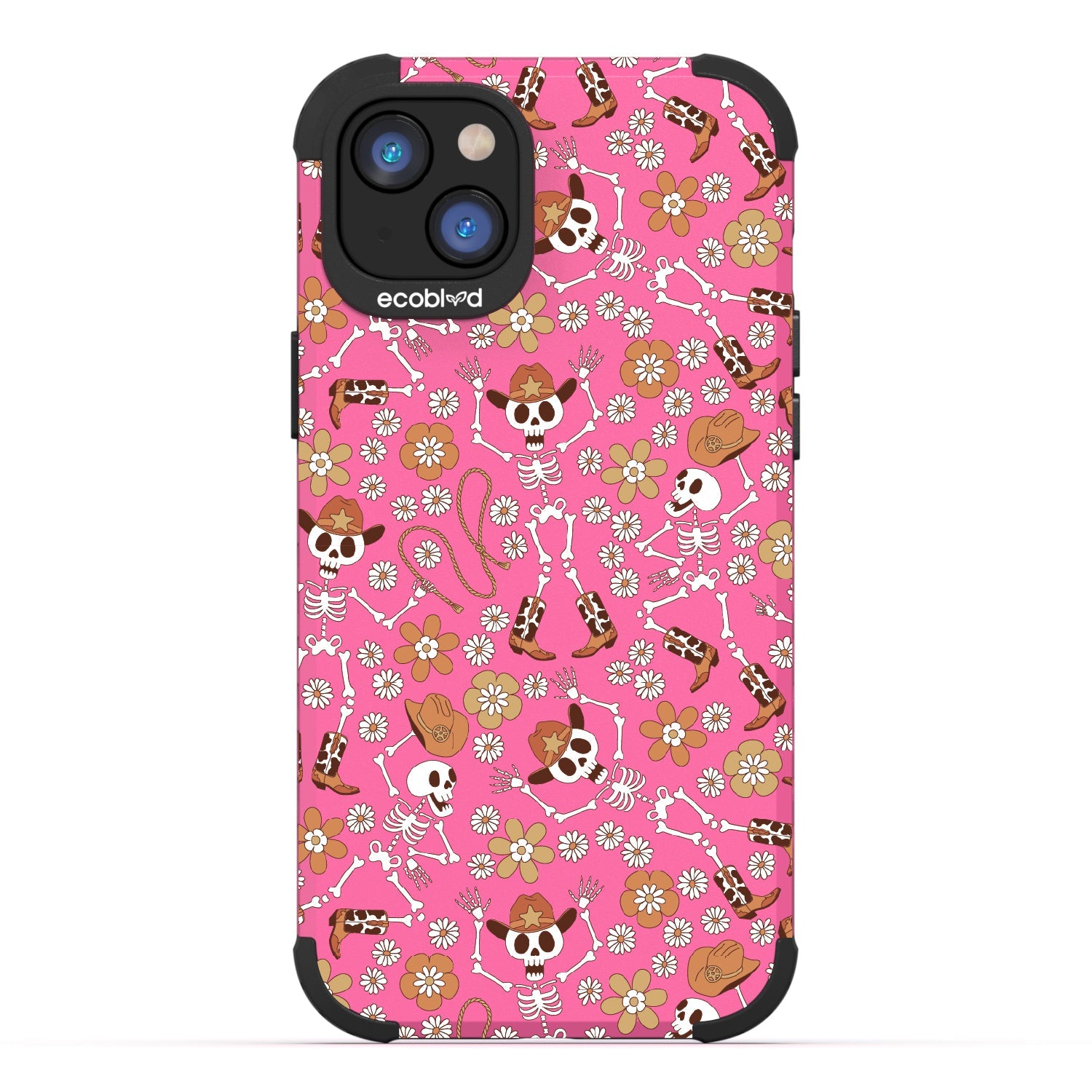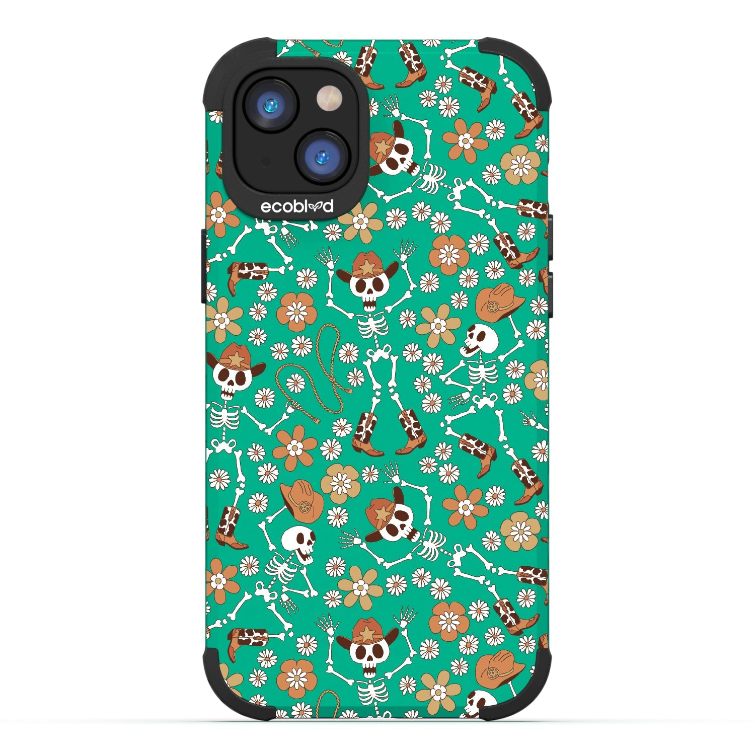 Ride into the spirit of the season with the Yee-Haunt design on our Mojave rugged and compostable iPhone 16e, iPhone 14, and iPhone 13 cases. Cowboy skeletons take center stage, adding a playful western twist to fall’s festivities. It’s a design that brings a dash of spooky fun to your everyday style.
