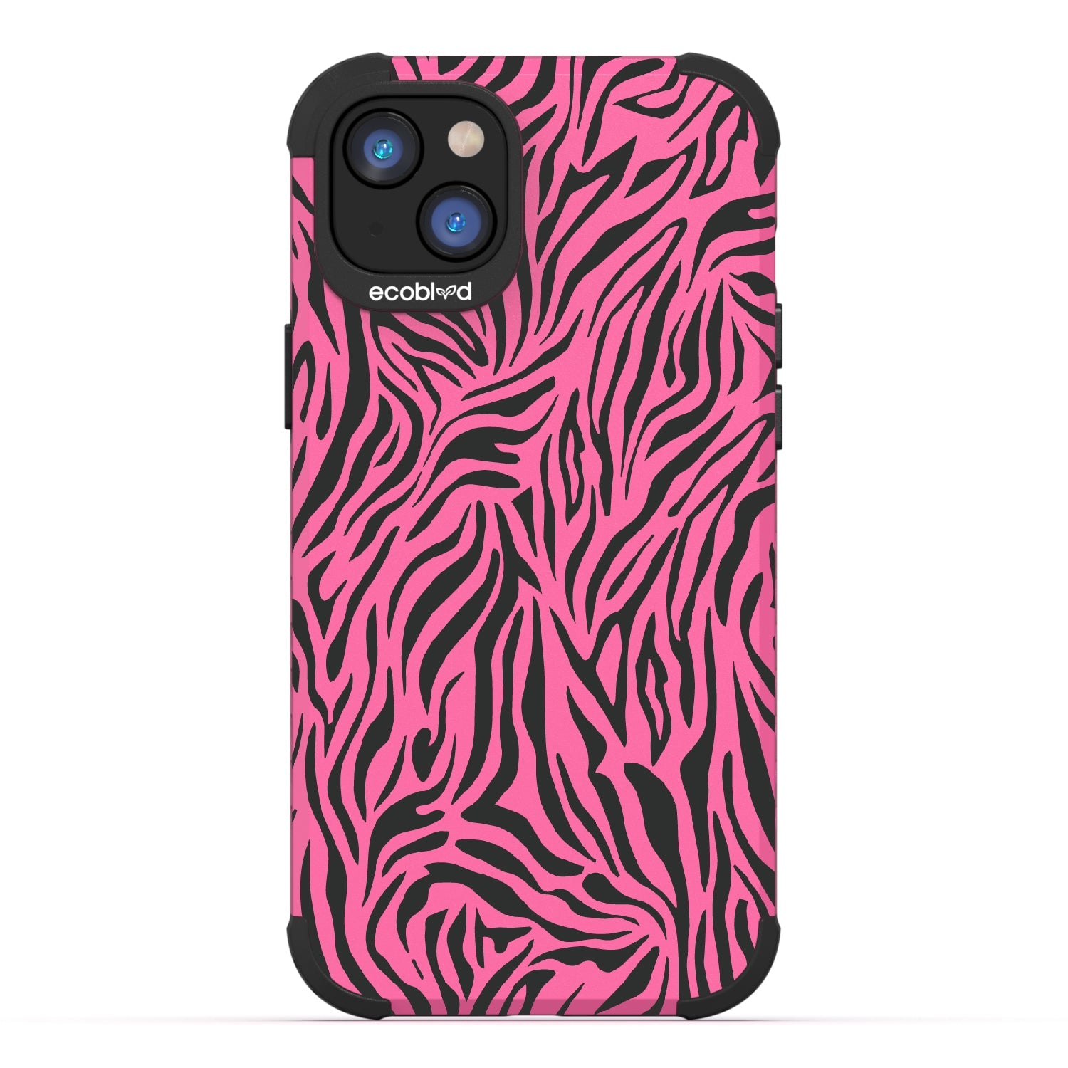 Just as a zebra's stripes define its distinct beauty, the Zebra Print design on our Mojave rugged and compostable iPhone 16e, iPhone 14, and iPhone 13 case embraces the captivating allure of these iconic markings. Experience the perfect blend of impeccable style and protection while championing ocean conservation efforts. Zebra Print isn't just black and white - it's bold and fierce, like a zebra's stripes.