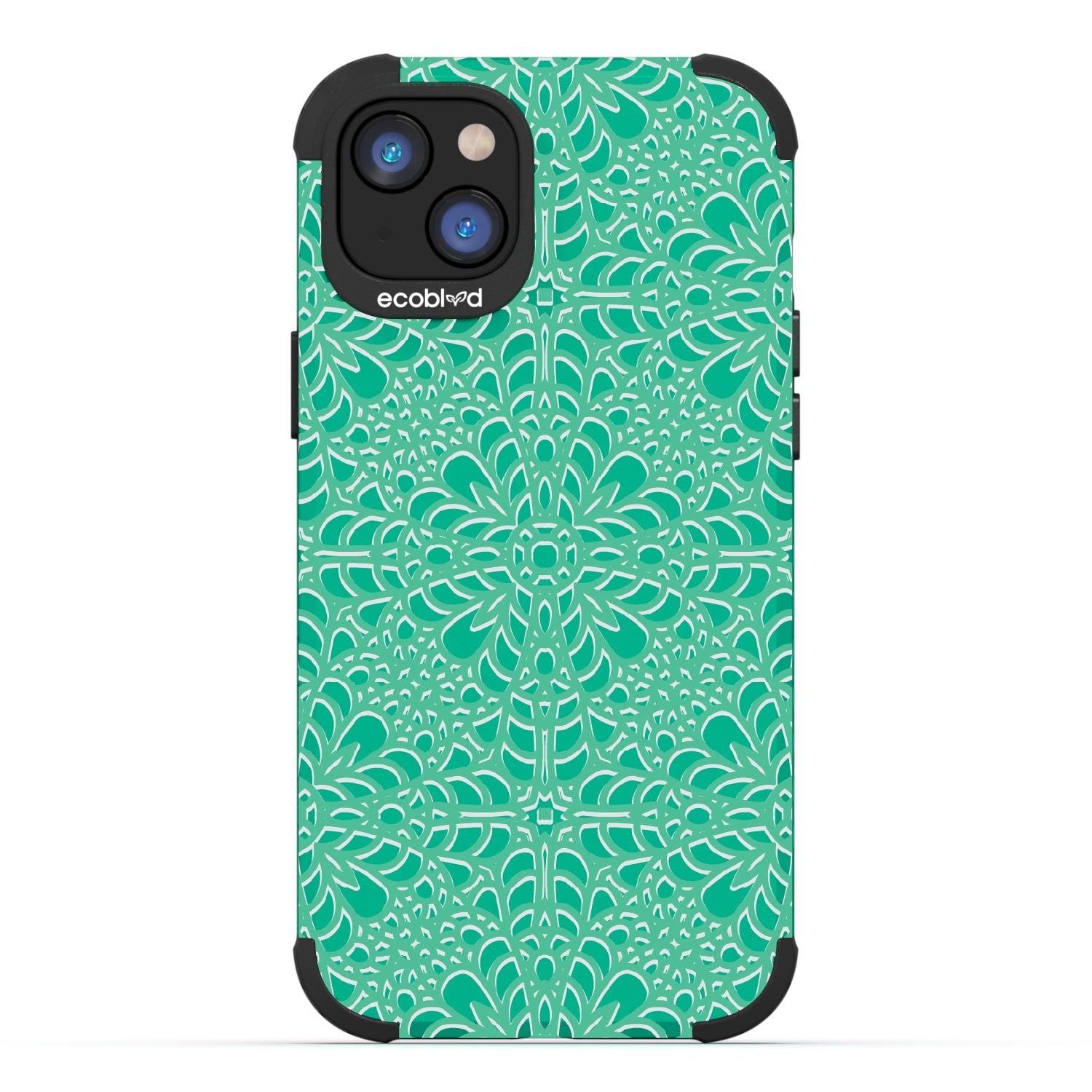 Immerse yourself in the elegance of the A Lil' Dainty design on our Mojave rugged and compostable iPhone 16e, iPhone 14, iPhone 13 case as it exudes sophistication and elegance with its delicate lace and tapestry-like patterns. Available in five enchanting colors: Midnight Black, Cascade Blue, Foliage Green, Illuminating Yellow, and Wildflower Pink.