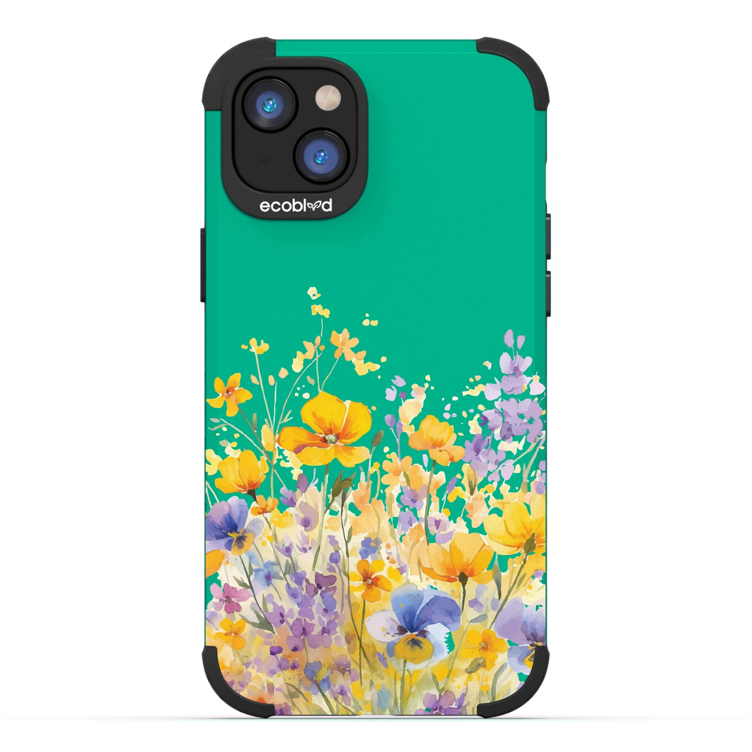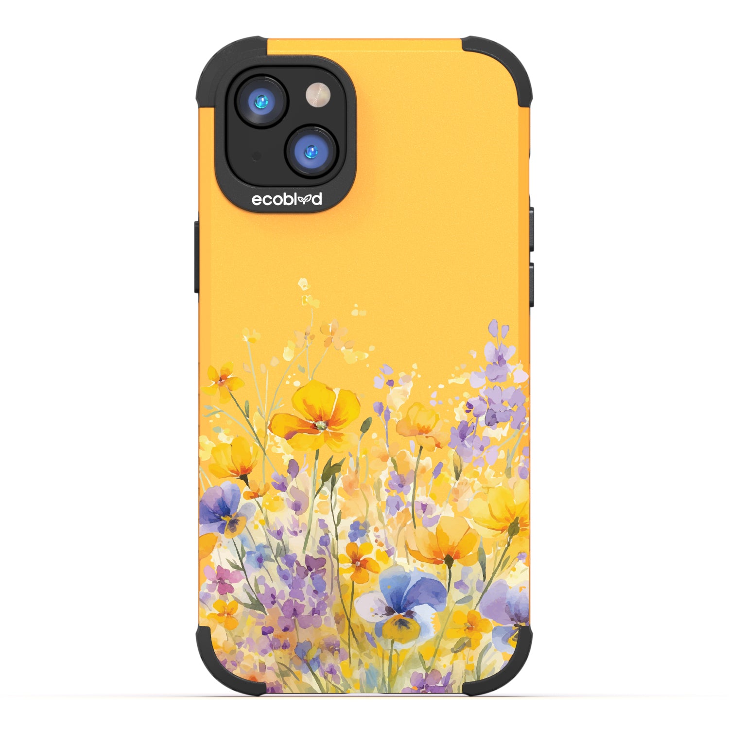 A moment in the light never looked so wild. The Meadowlight design on our Mojave rugged and compostable iPhone 16e, iPhone 14, and iPhone 13 case lets soft florals run free in a watercolor wash of gold and lavender. A design that glows like a field at its most unfiltered.