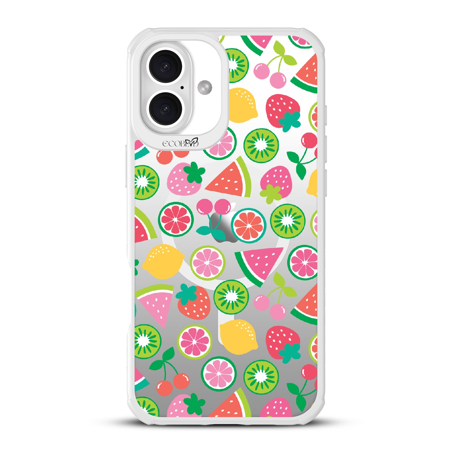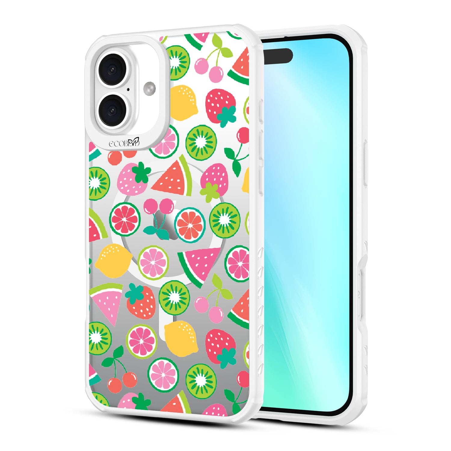 Savor the juicy goodness of summer with the Juicy Fruit design on our Revive clear iPhone 16 Plus phone case, a delightful blend of vibrant fruits that will quench your style thirst. From the juicy watermelon to the tangy lemon, zesty lime, tropical guava, refreshing kiwi, luscious strawberries, and succulent cherries, this case is a juicy treat for your eyes. This phone case is a reminder to see the juicy side of life, to add a pop of fruity freshness to your style, and to use your phone to start juicy conversations.